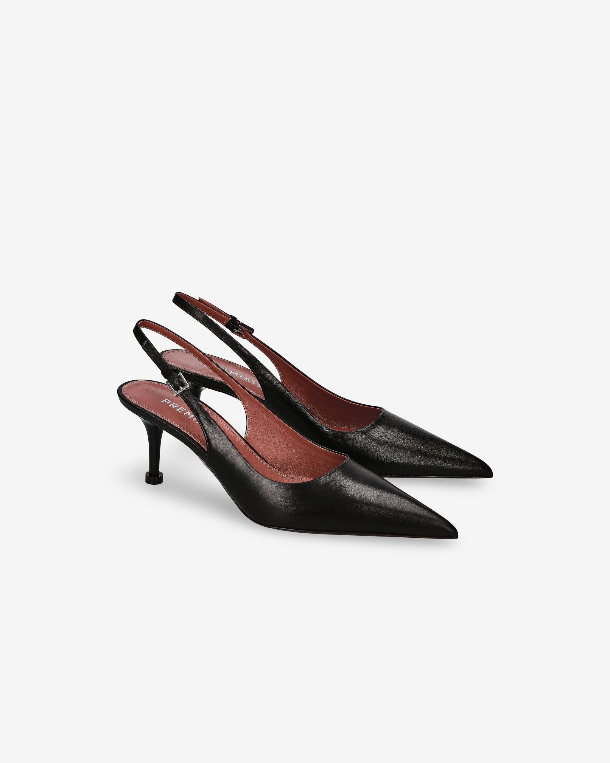 Chanel basic shoe made of fine black napa leather, with a flared shape that gives an elegant and sophisticated design. The glossy 60mm ABS heel completes the look, offering the perfect combination of comfort and style.