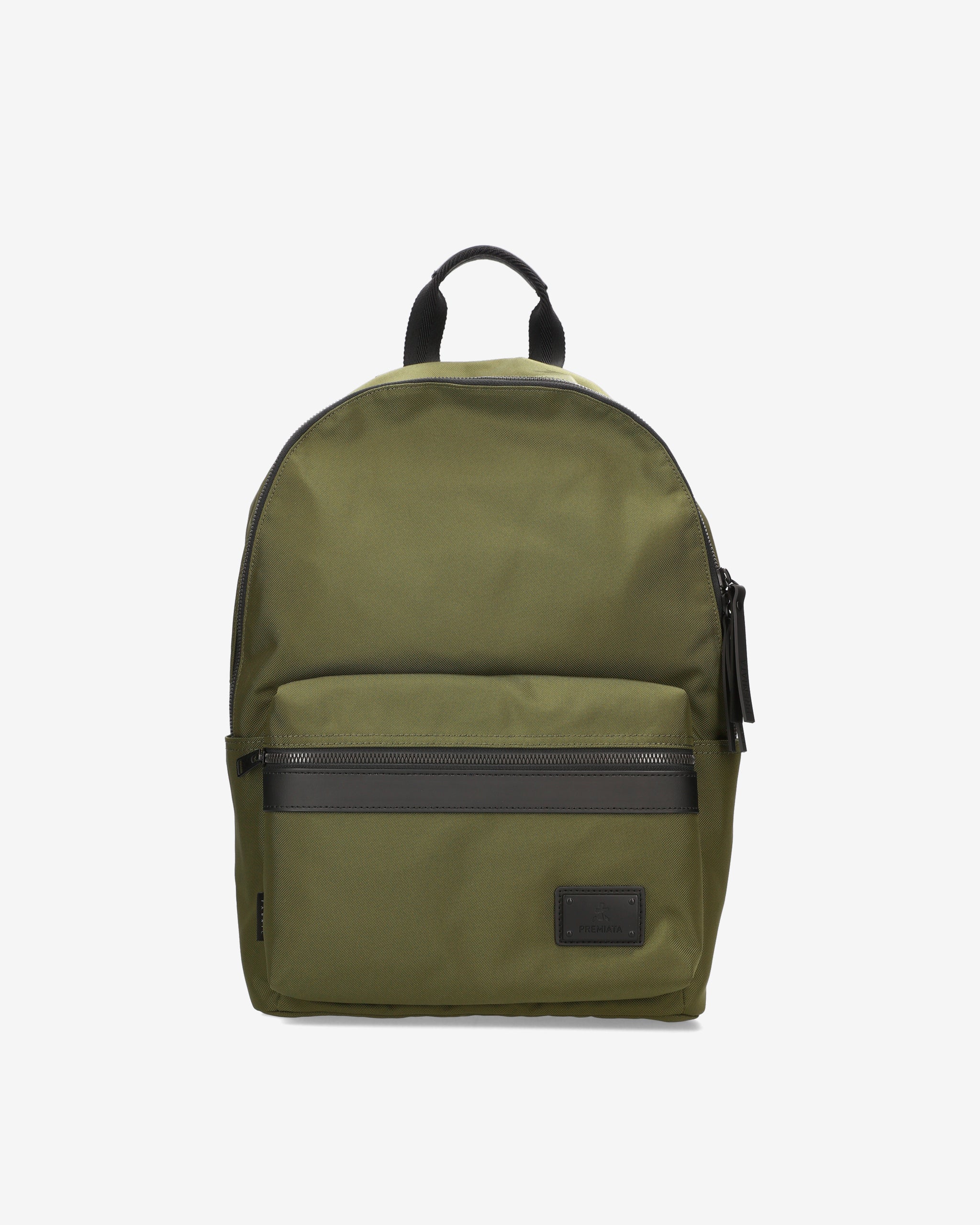 A capacious and versatile model made of premium nylon gabardine with anti-fray and water-repellent treatment. Padded EVA shoulder straps for added comfort. Waterproof front pockets with calfskin leather trim and matte metal closures.