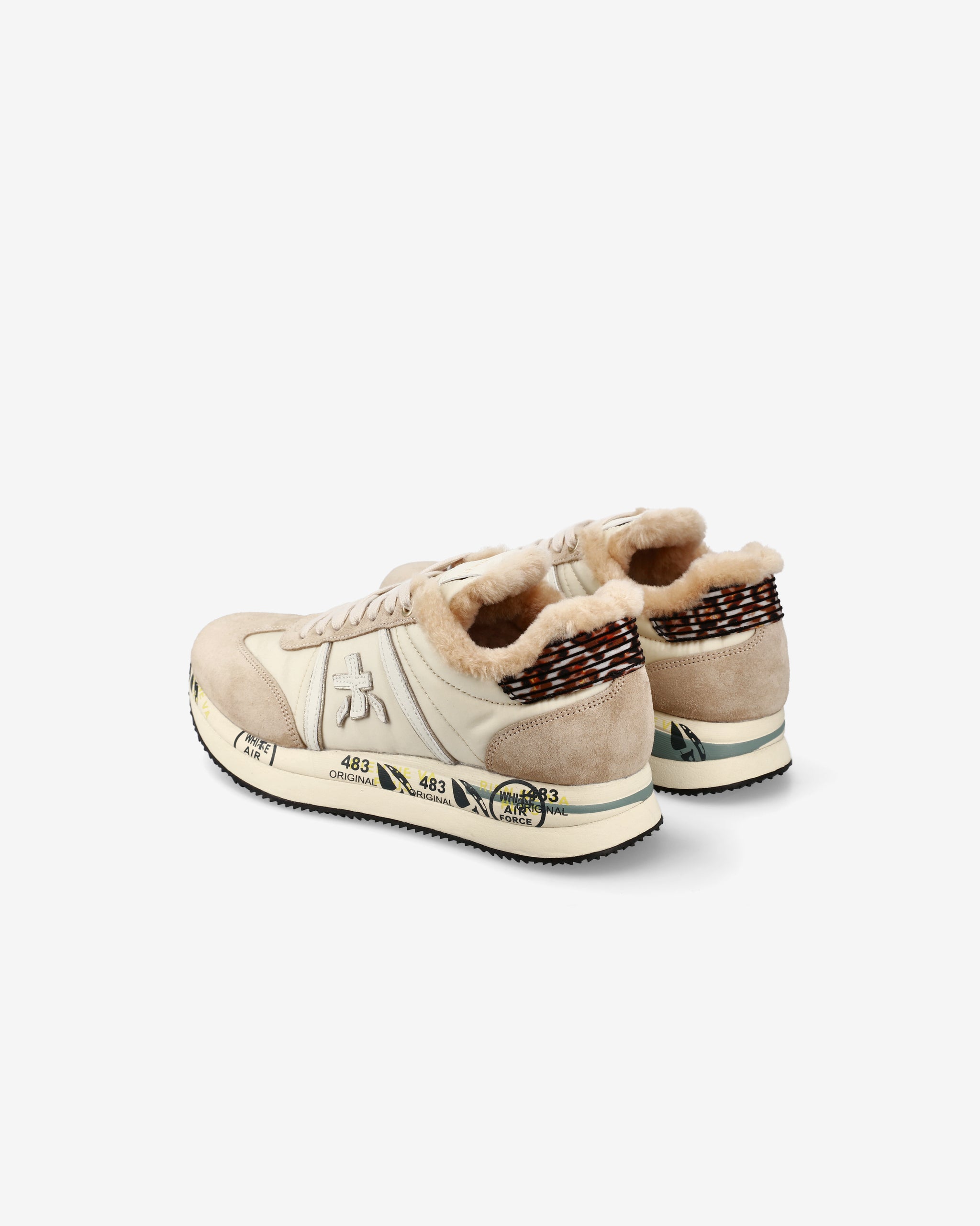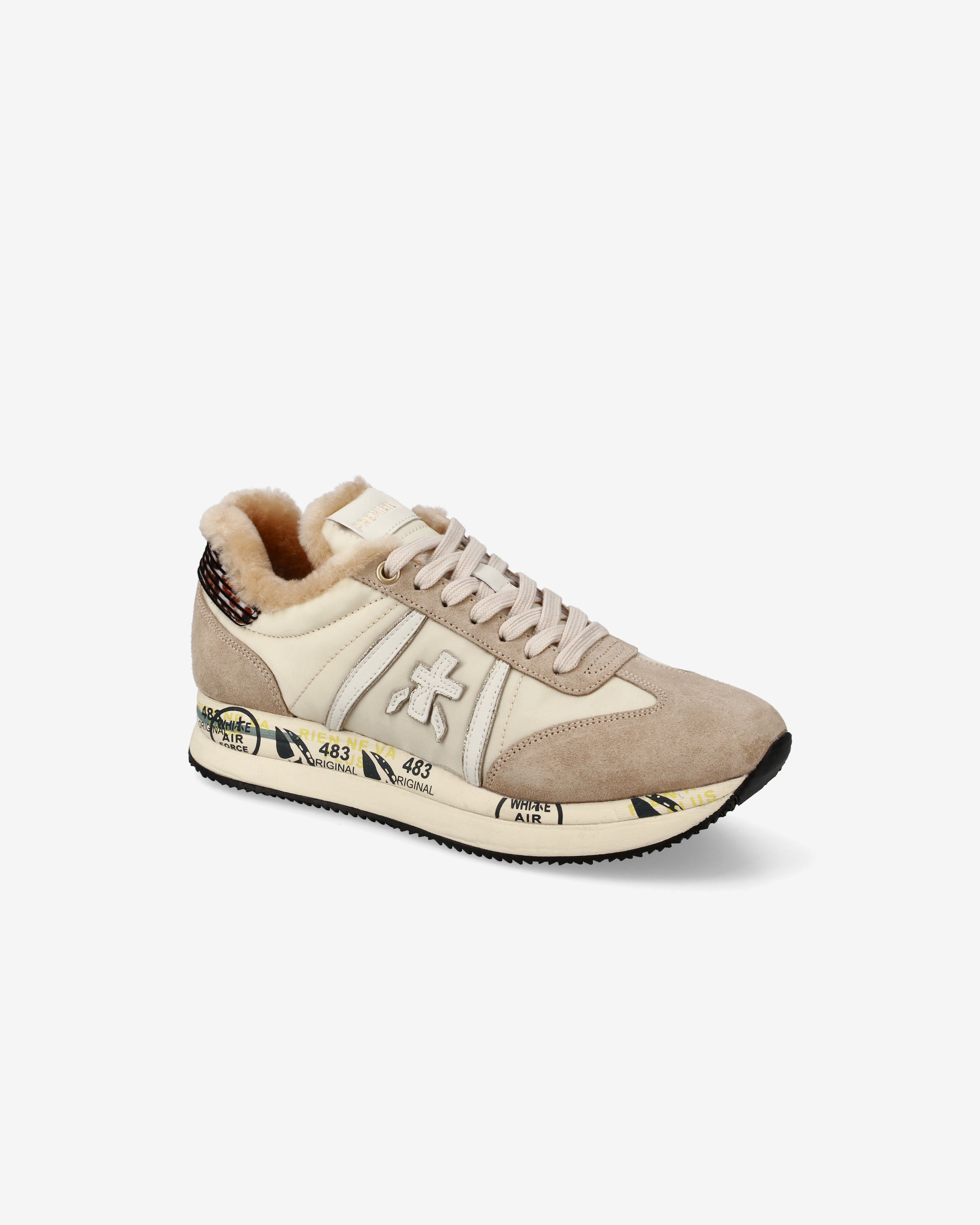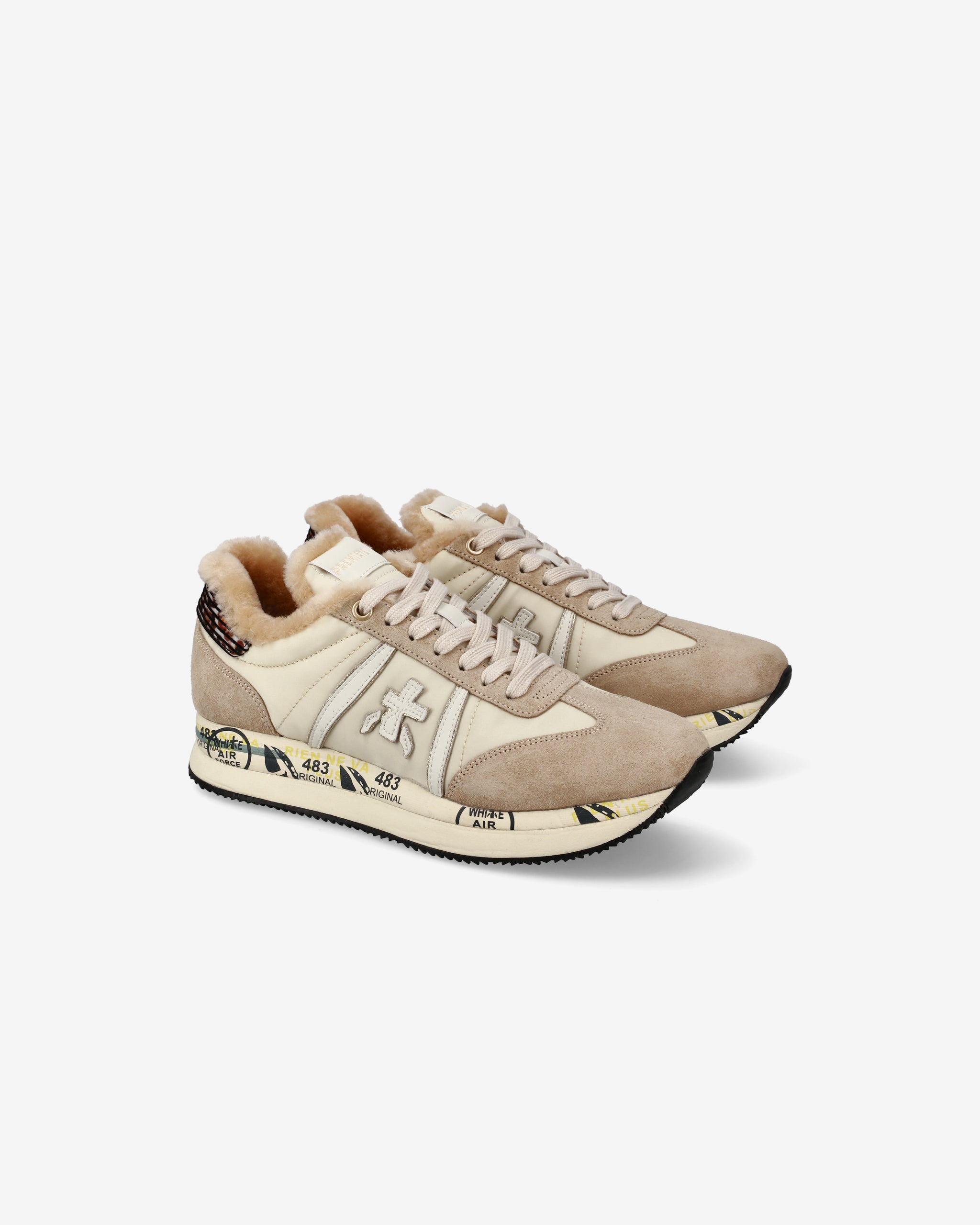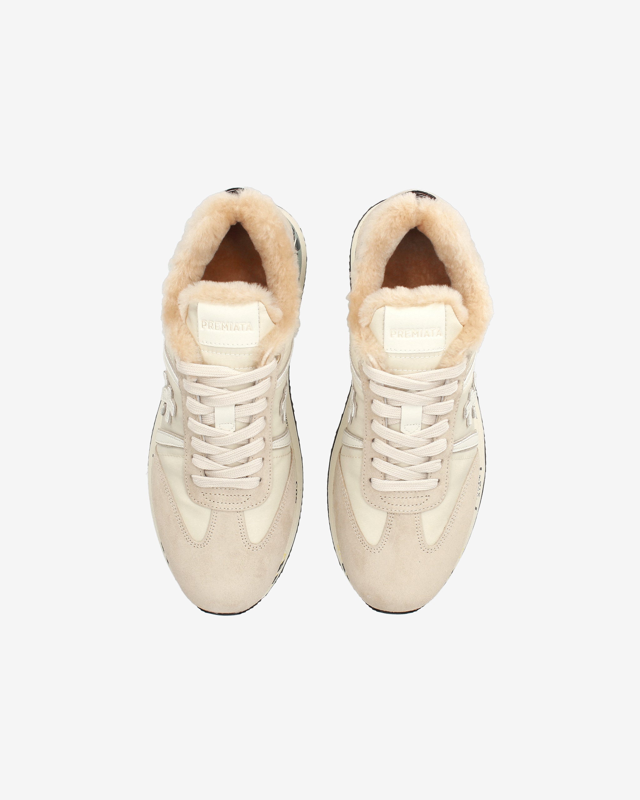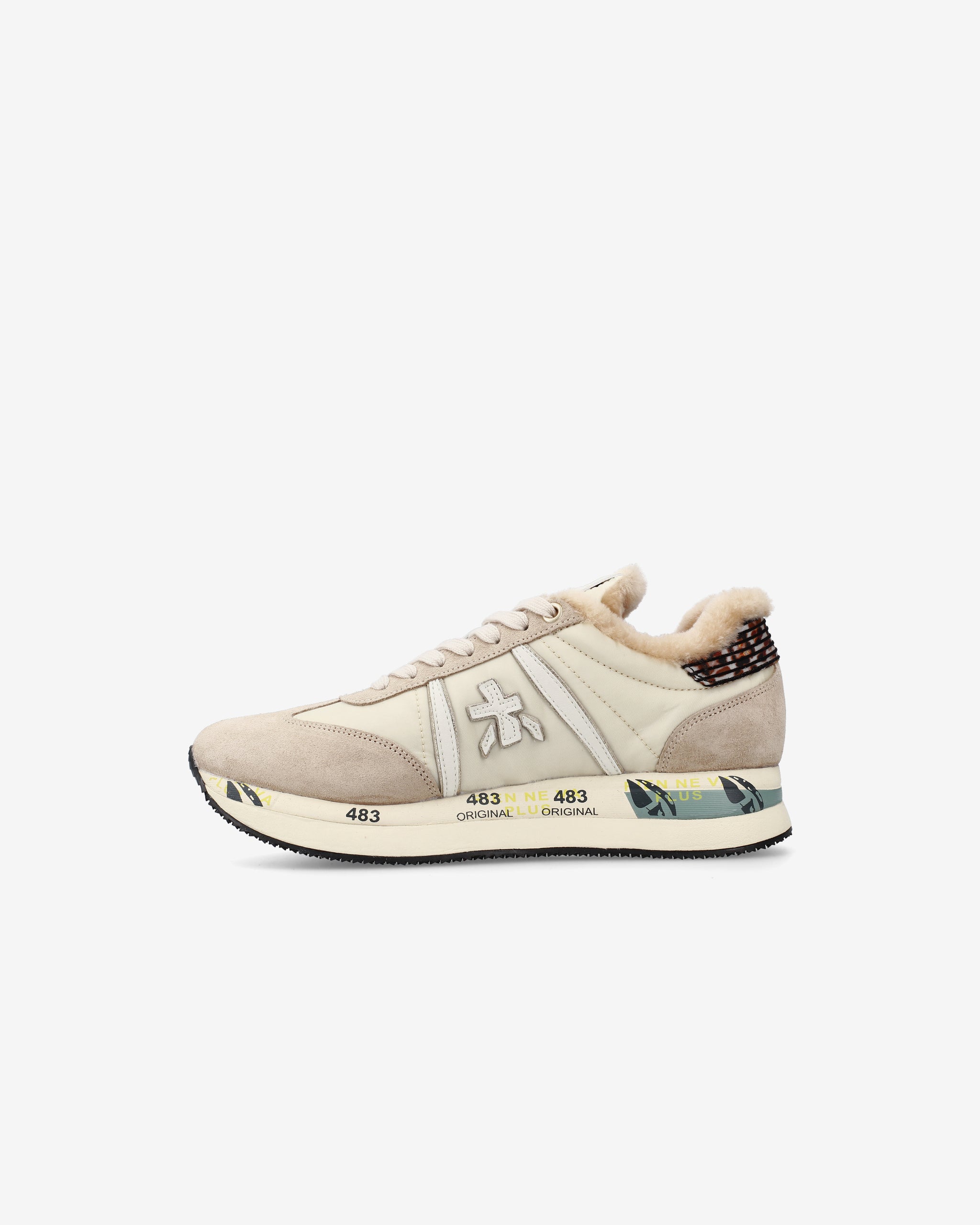 Quality materials and leathers characterize this sneaker, as does our entire history. The shoe is made unique by the mix of leathers and fabrics, shiny details and sheepskin-lined interior. The bottom enhances the look, contributing a casual glam spirit and slimming the silhouette.