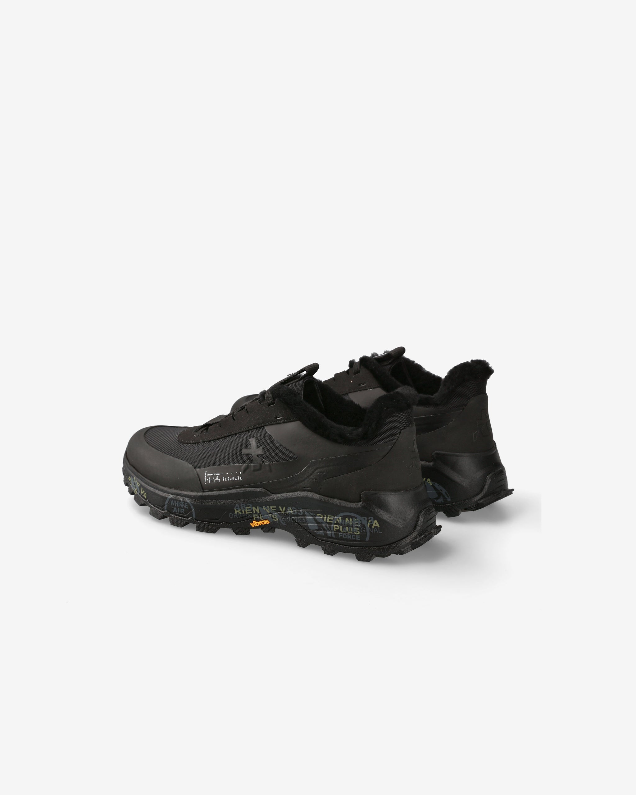 A sharp-looking hiking shoe designed for those seeking style and comfort even in outdoor adventures. The sheepskin lining provides a warm and soft feel, while the sole with distinctive lettering adds an original touch to the design.