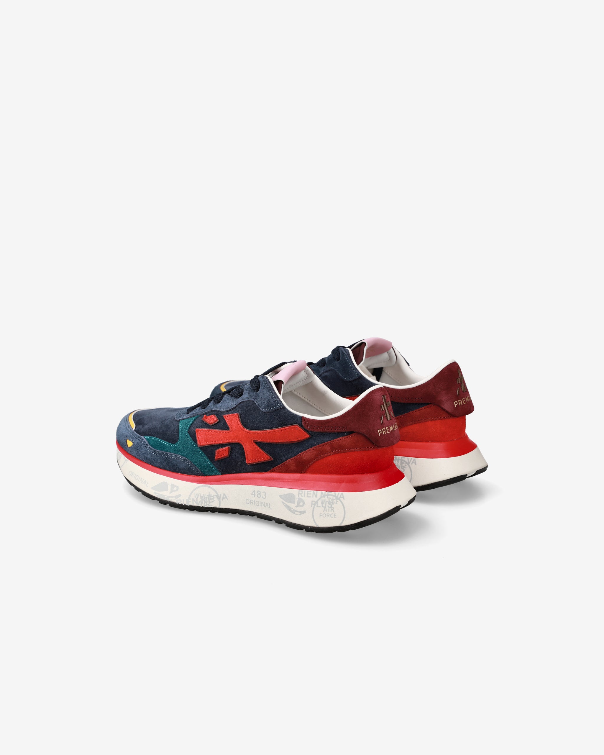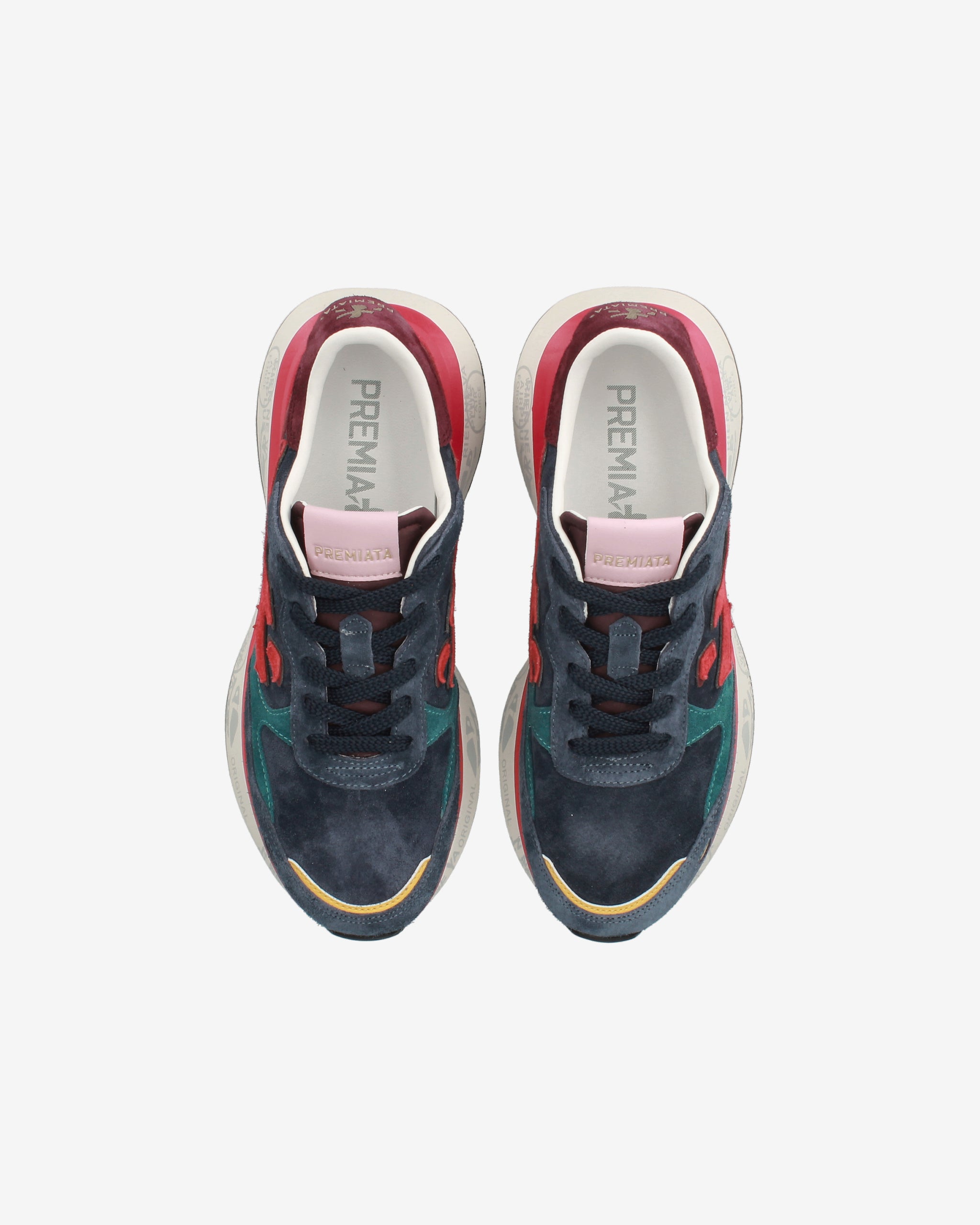 The sole, enhanced by Premiata's iconic style details, enhances the urban and casual-chic identity.