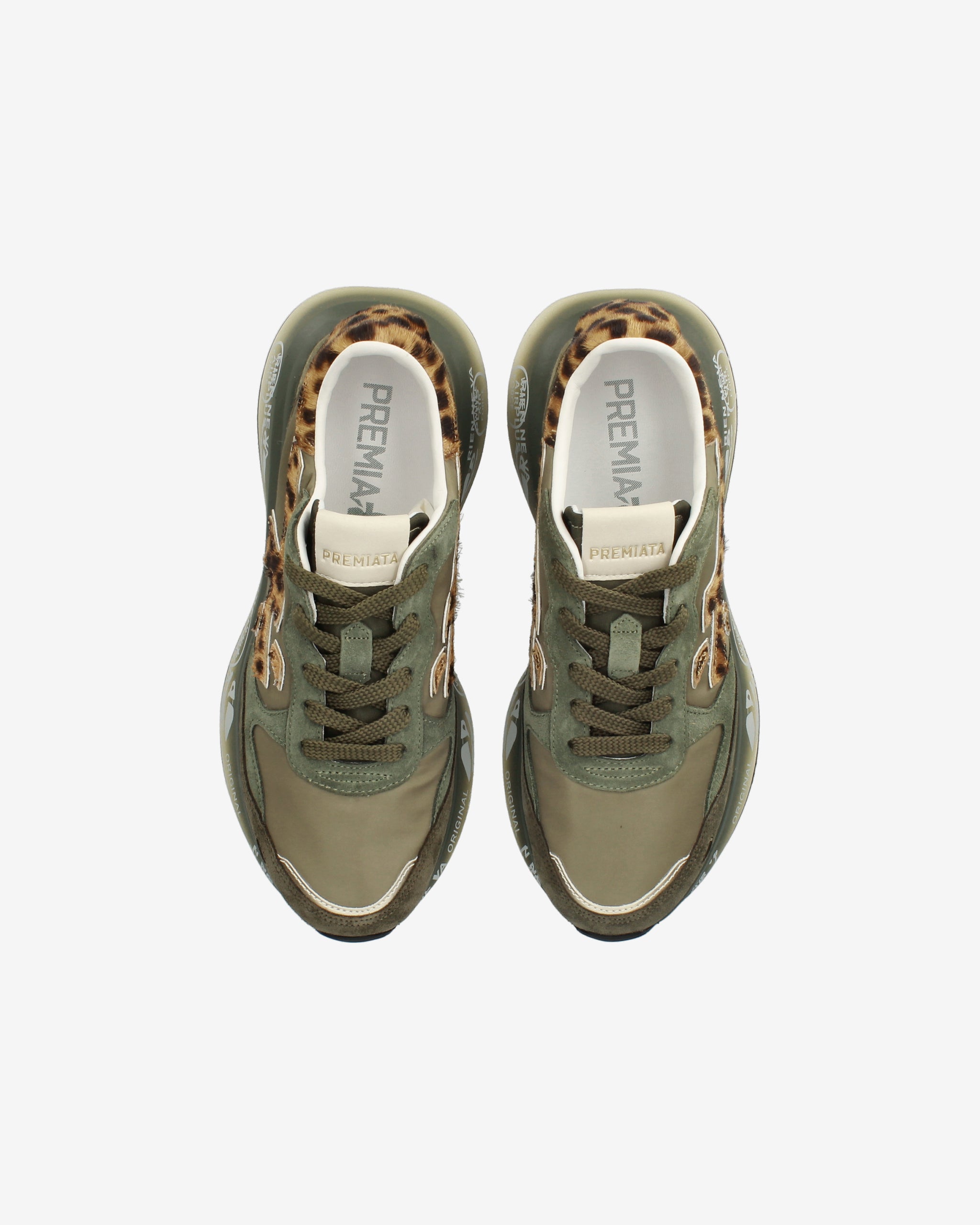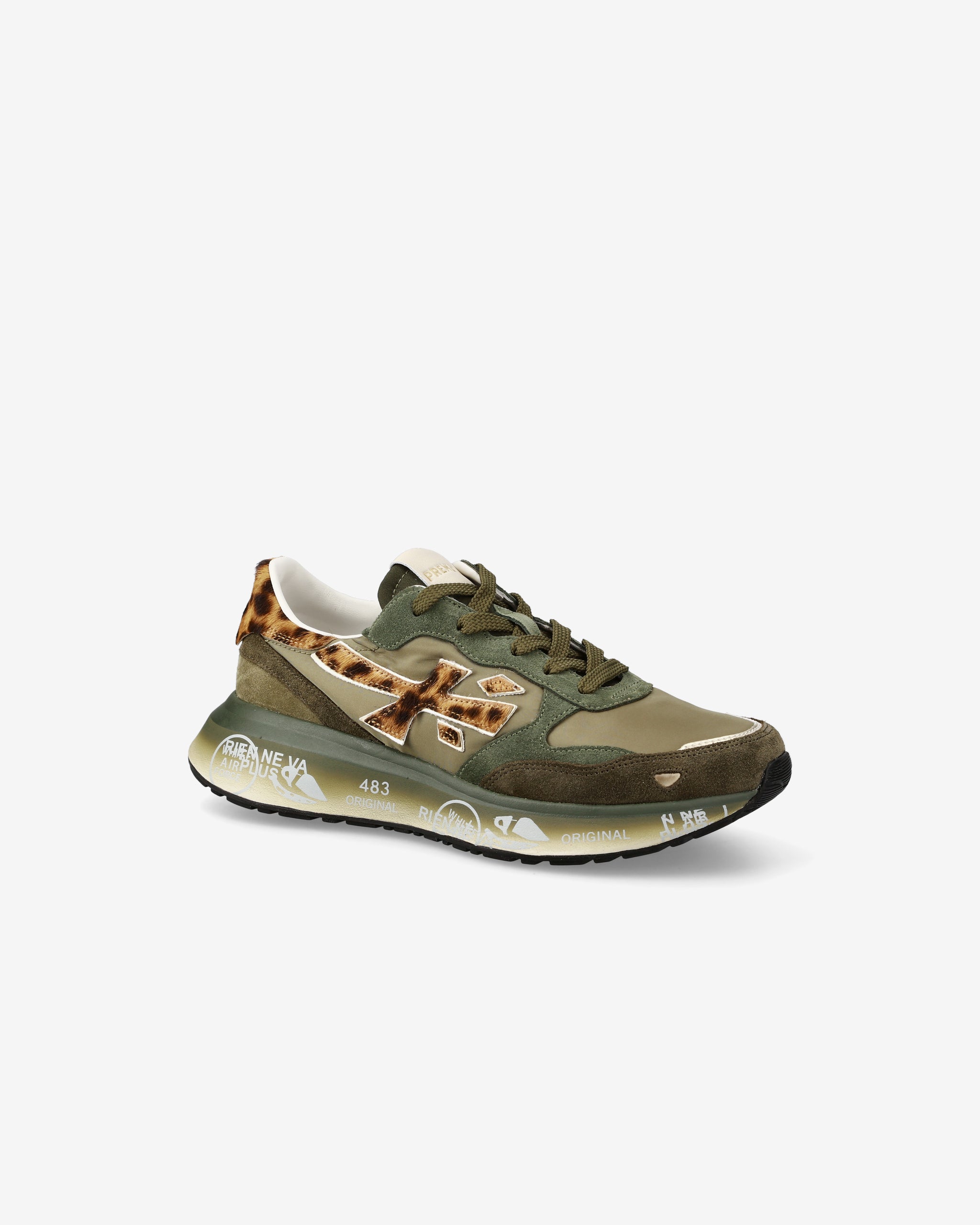 The sole, enhanced by Premiata's iconic style details, enhances the urban and casual-chic identity.