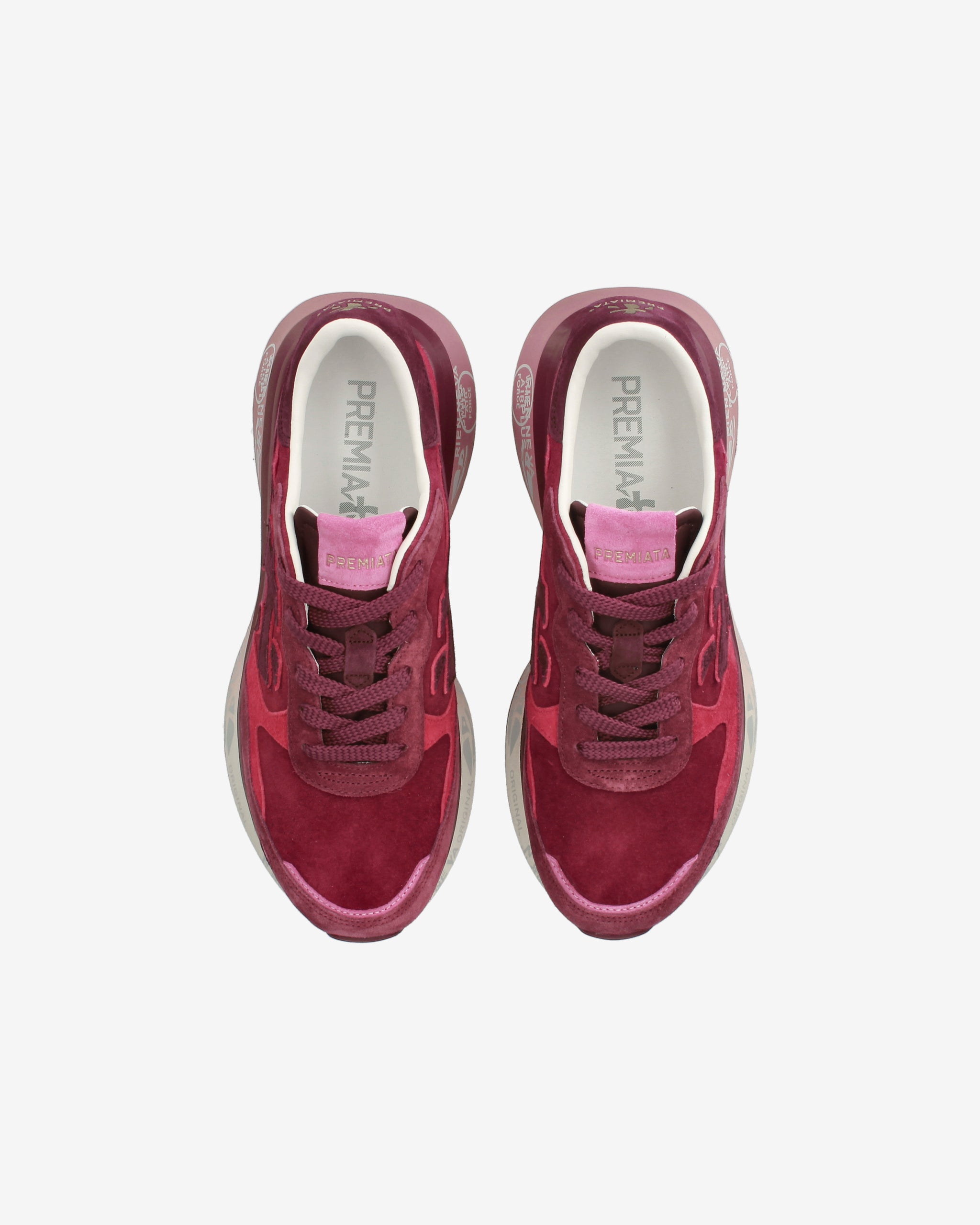 The sole, enhanced by Premiata's iconic style details, enhances the urban and casual-chic identity.