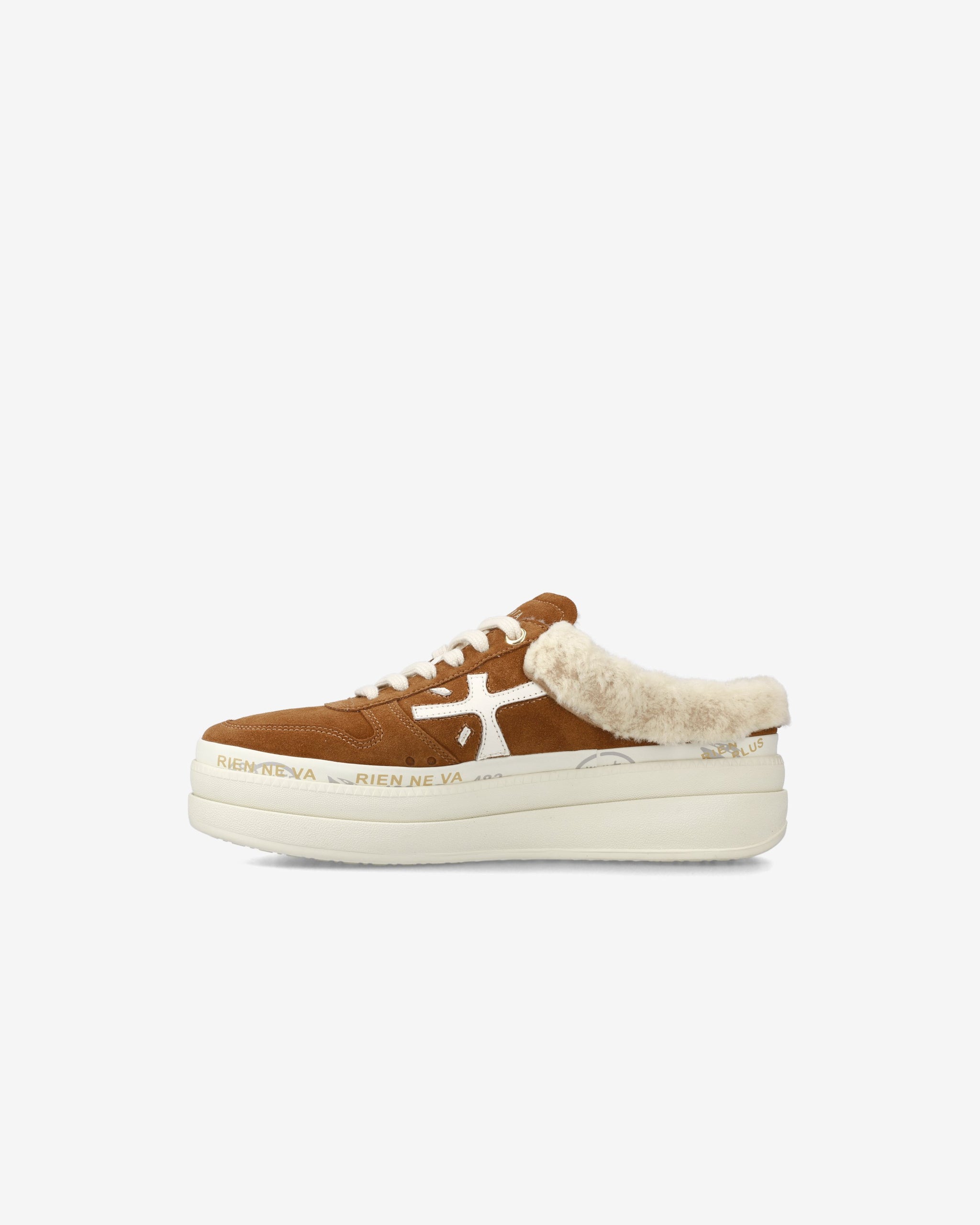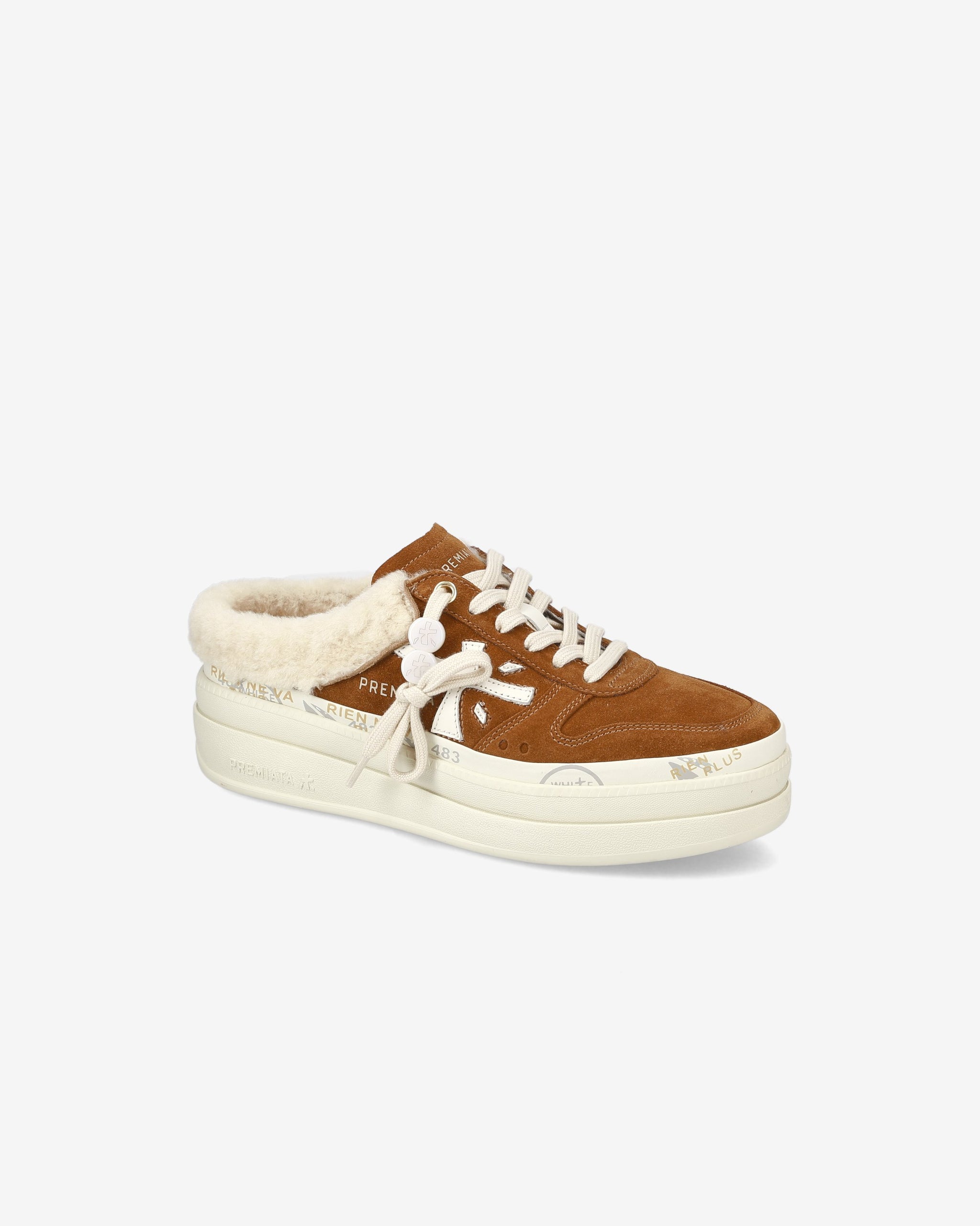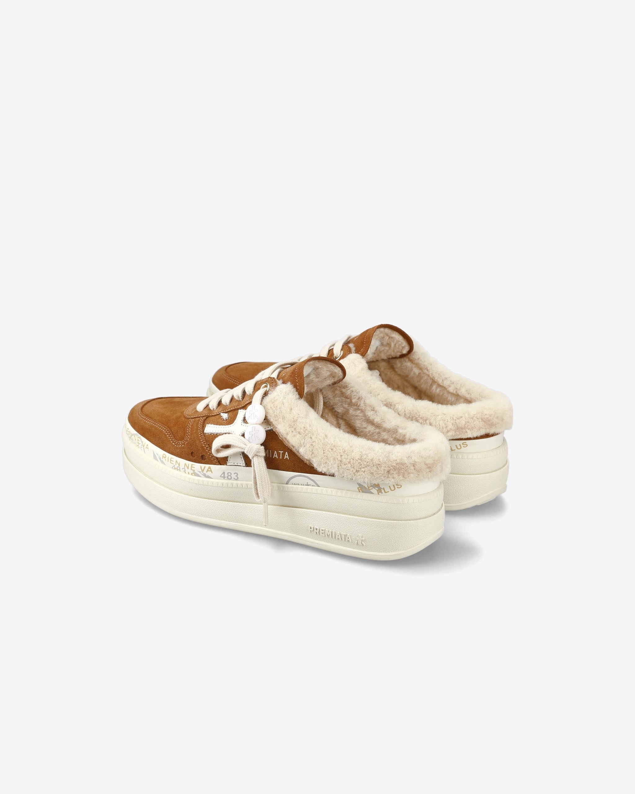 Among Premiata's new must-haves. Style reaches new heights, combining designs such as a double-layered platform sole, sheepskin-lined interior and a midsole embellished with the brand's iconic stamps.