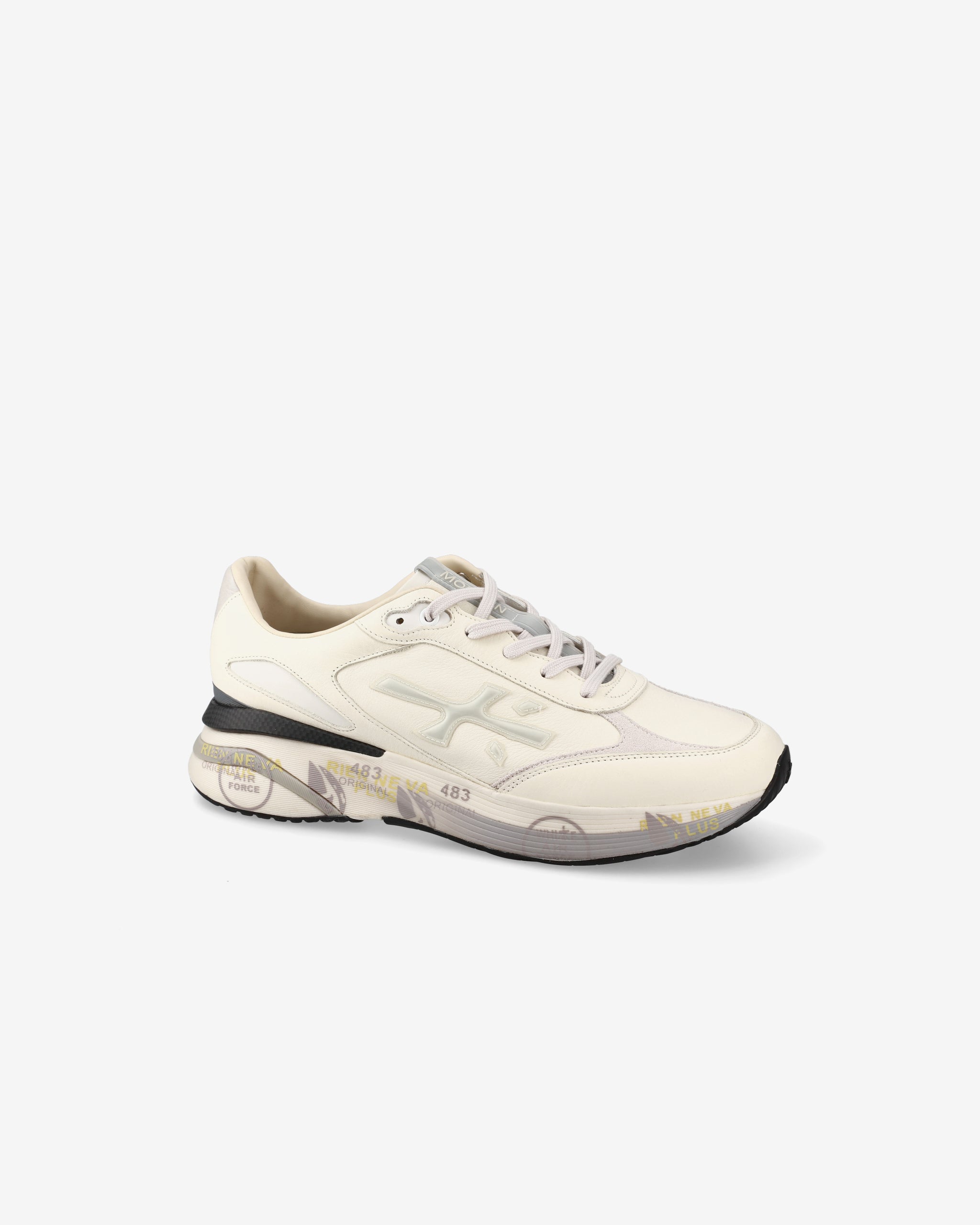 Designed to impress. The Moerun is based on the lightness of movement, stability and cushioning sensation provided by the innovation of the bottom. The new silhouette is rich in details: logo on the outer side, PREMIATA lettering on the inner side, and model name on the label.