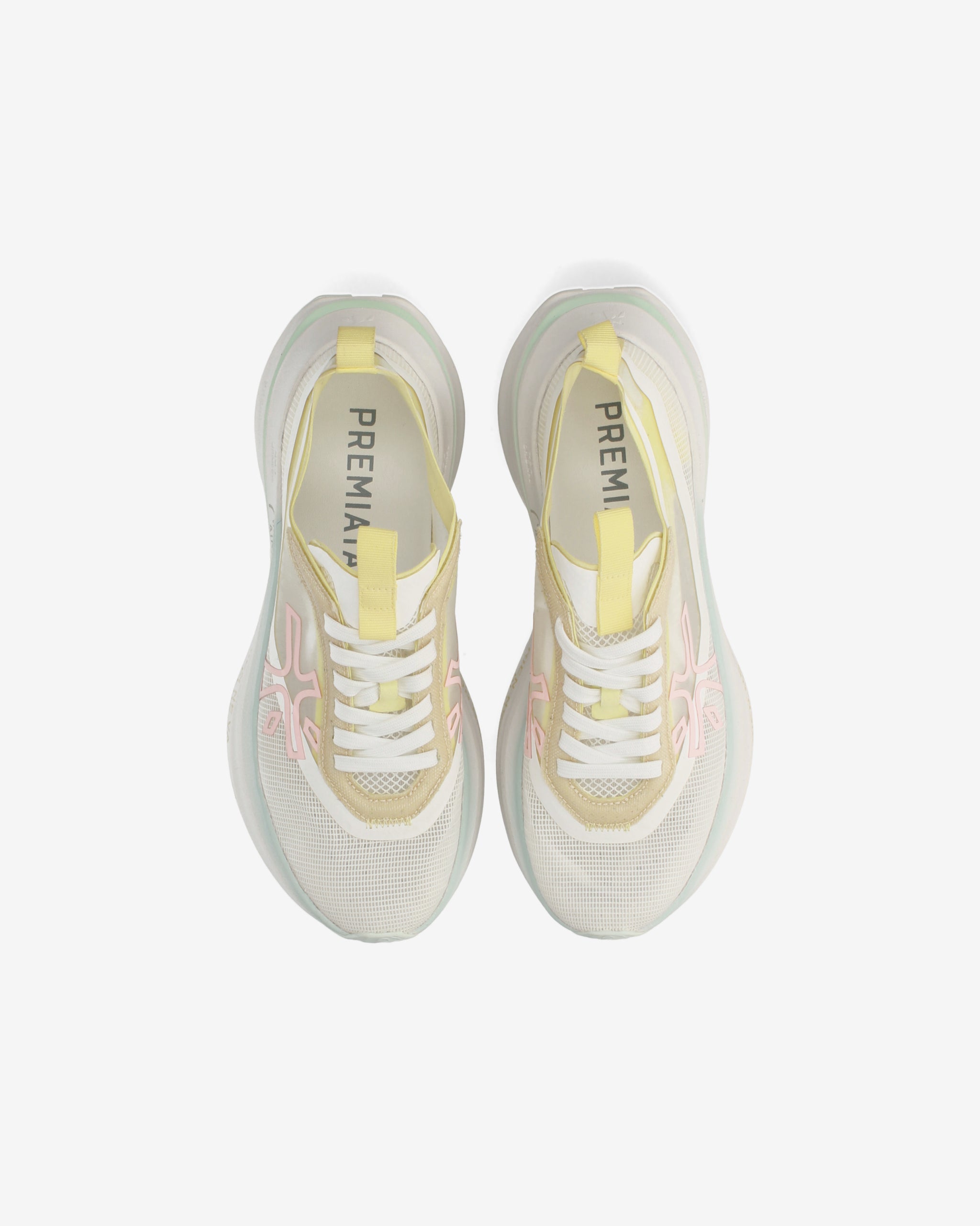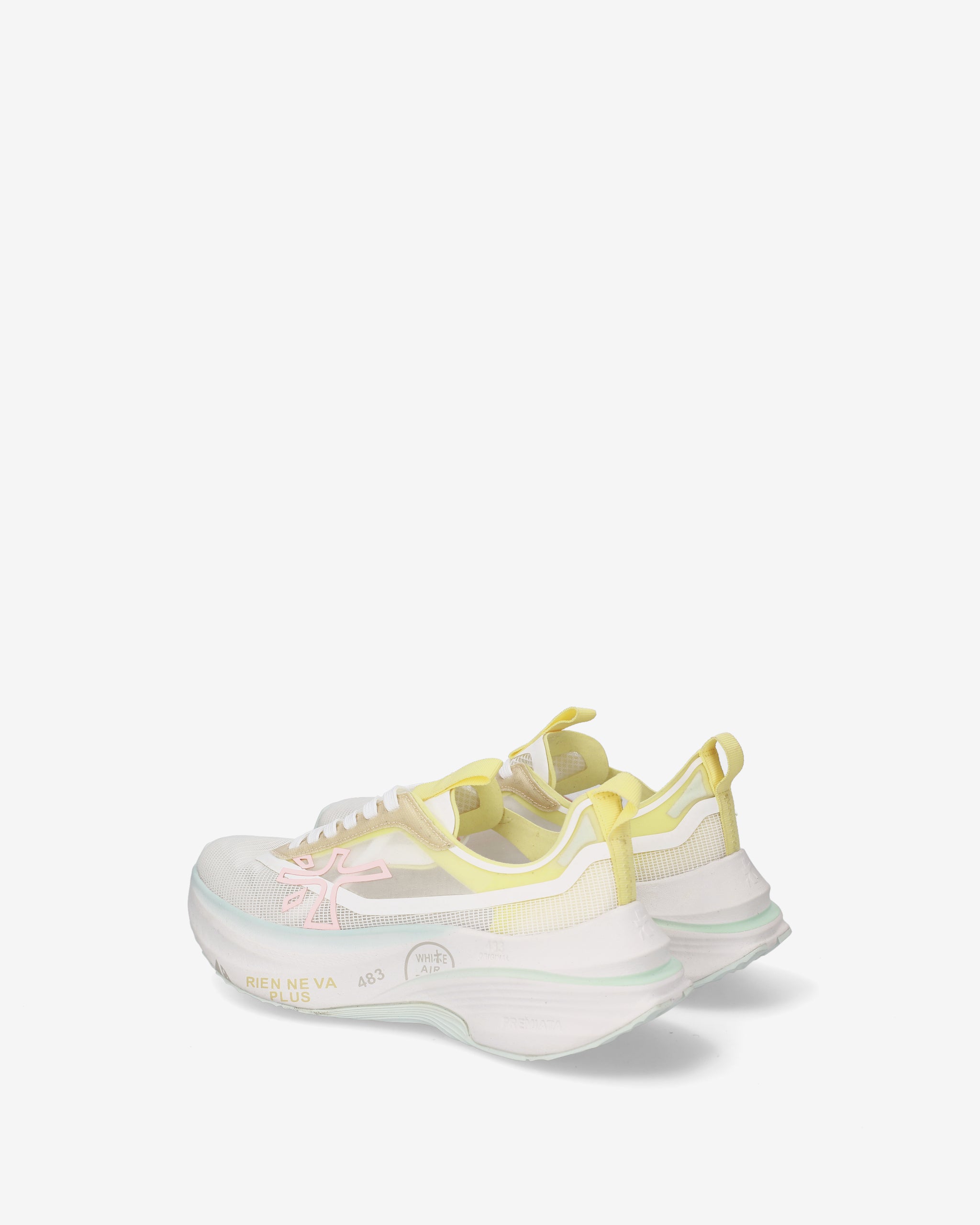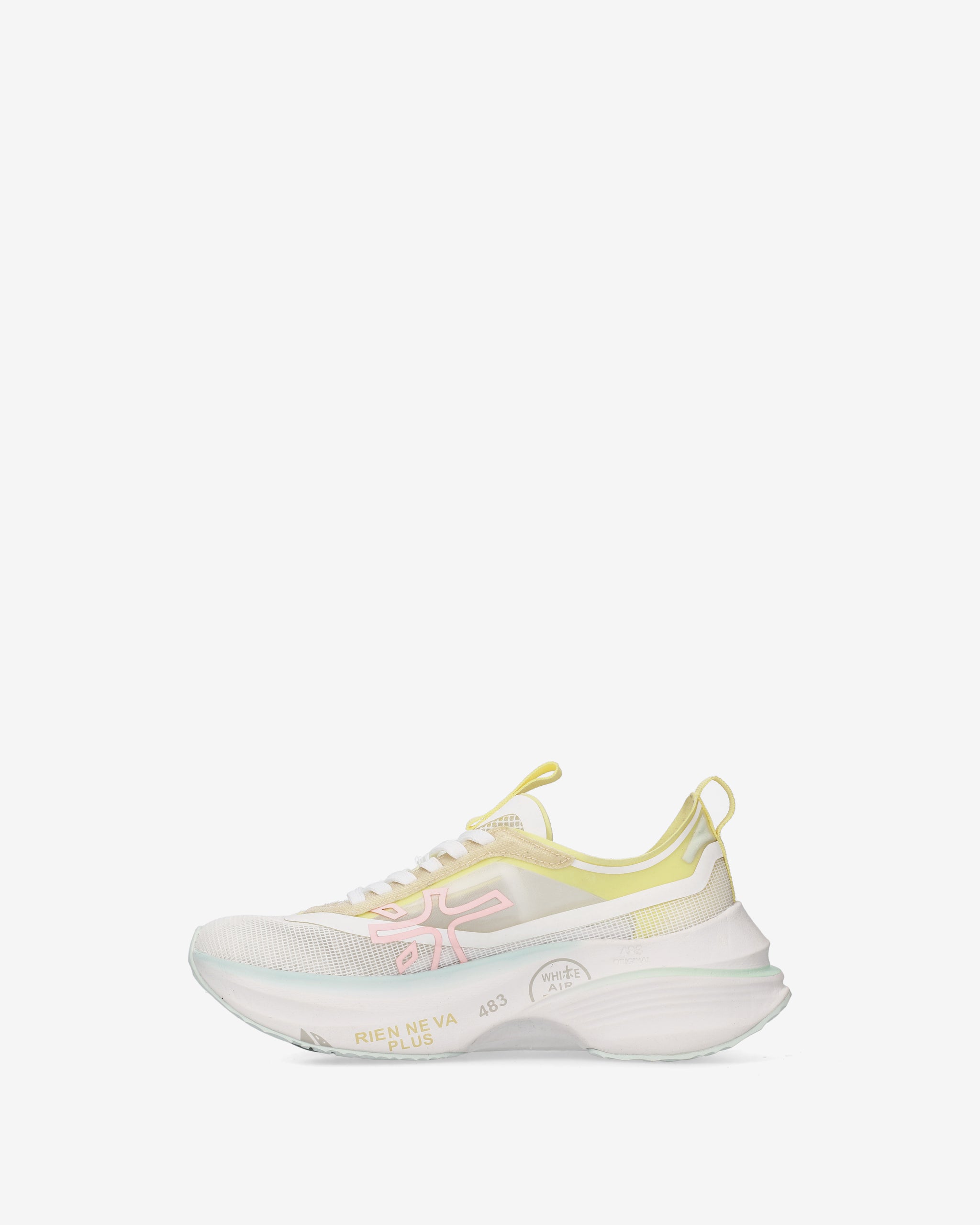 A stylish and trendy sneaker, perfect for a modern casual look. The raised sole offers comfort and a contemporary touch.