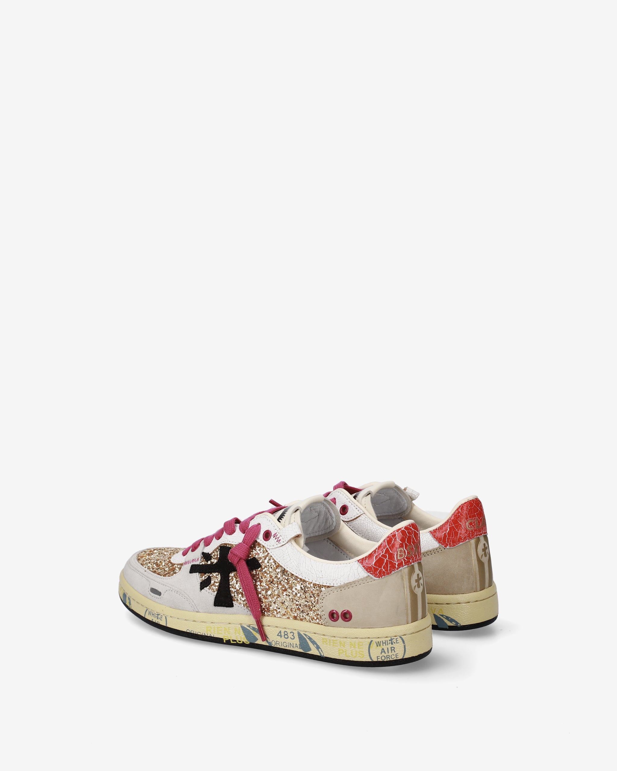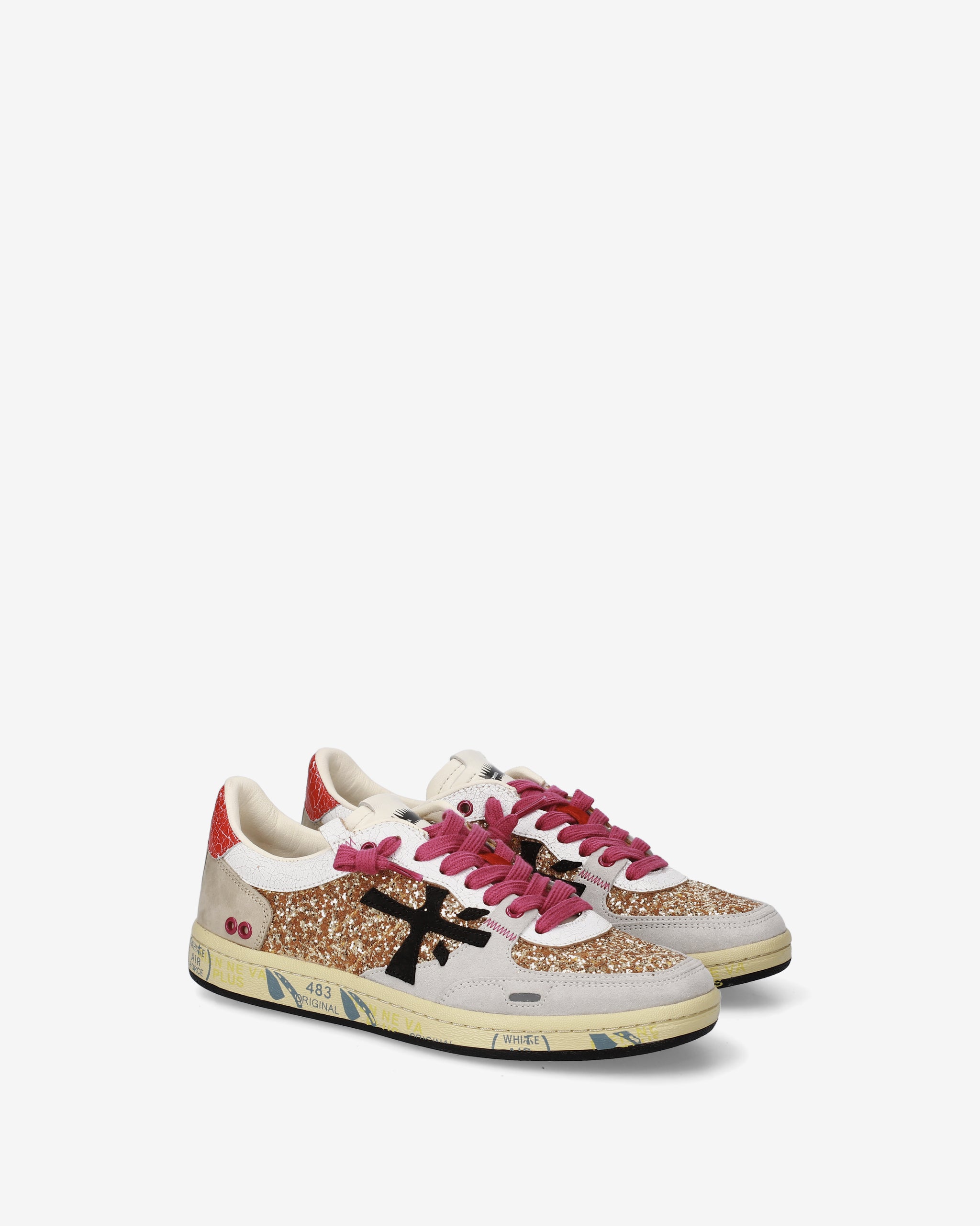 This model makes a bold entrance into the Istrice collection, featuring a glittery upper. With an innovative design, it’s easy to slip on. The rubber sole with a block heel completes a bold and versatile look.