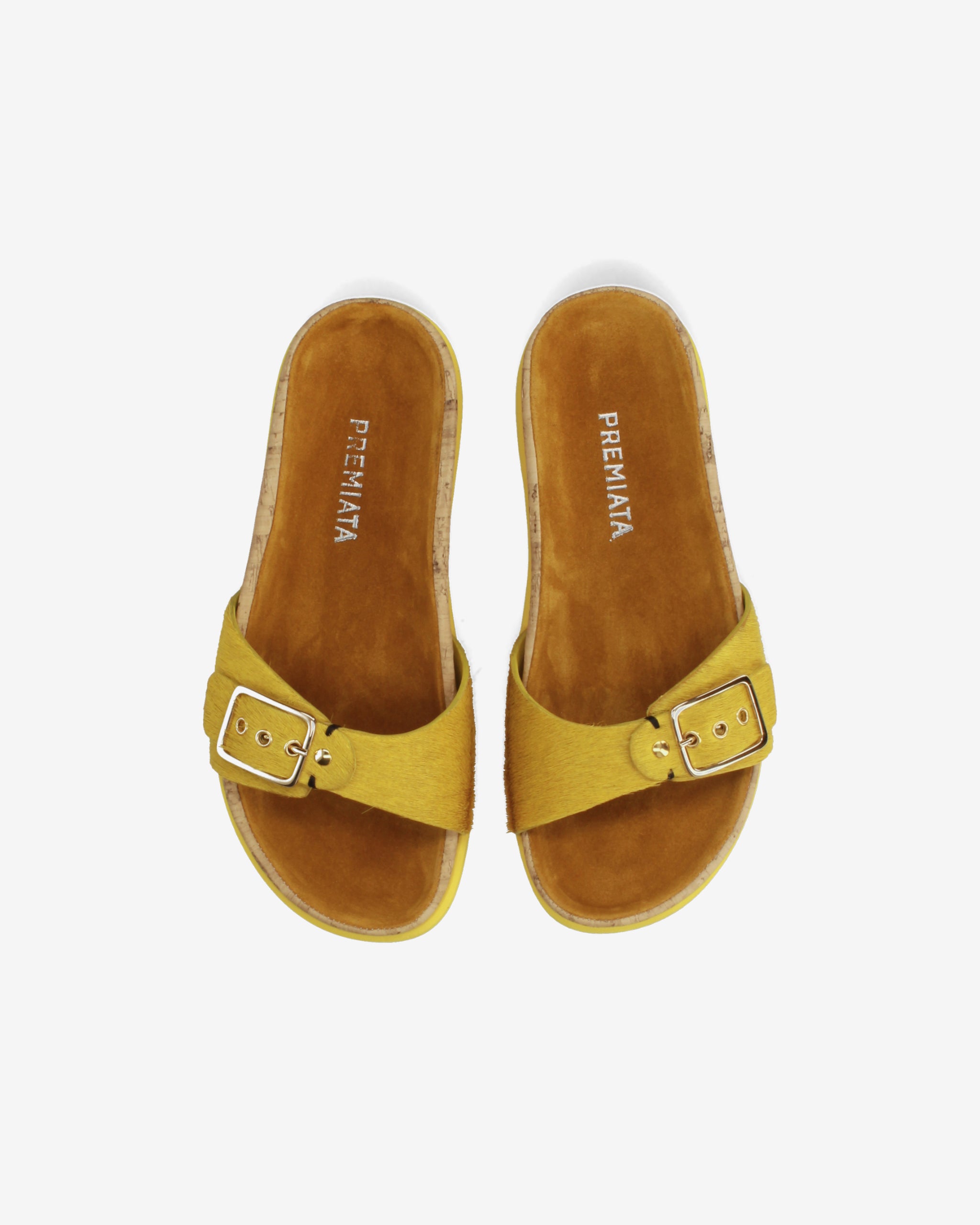- Single strap in premium yellow-dyed pony leather