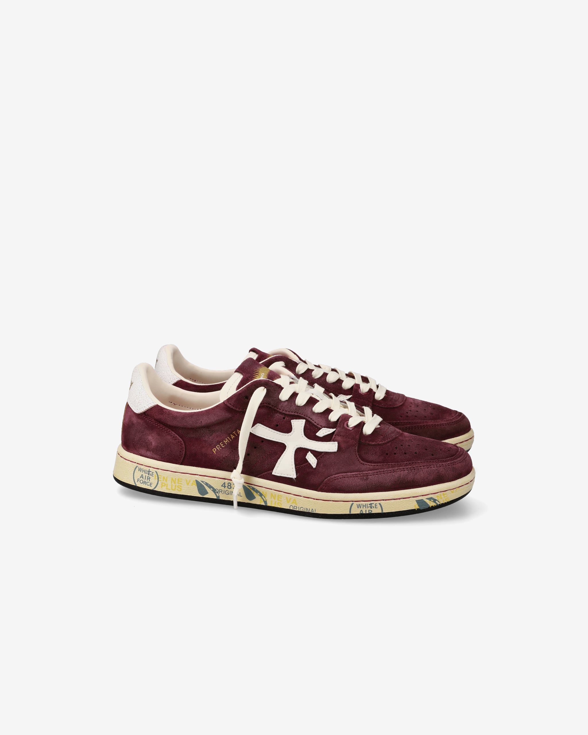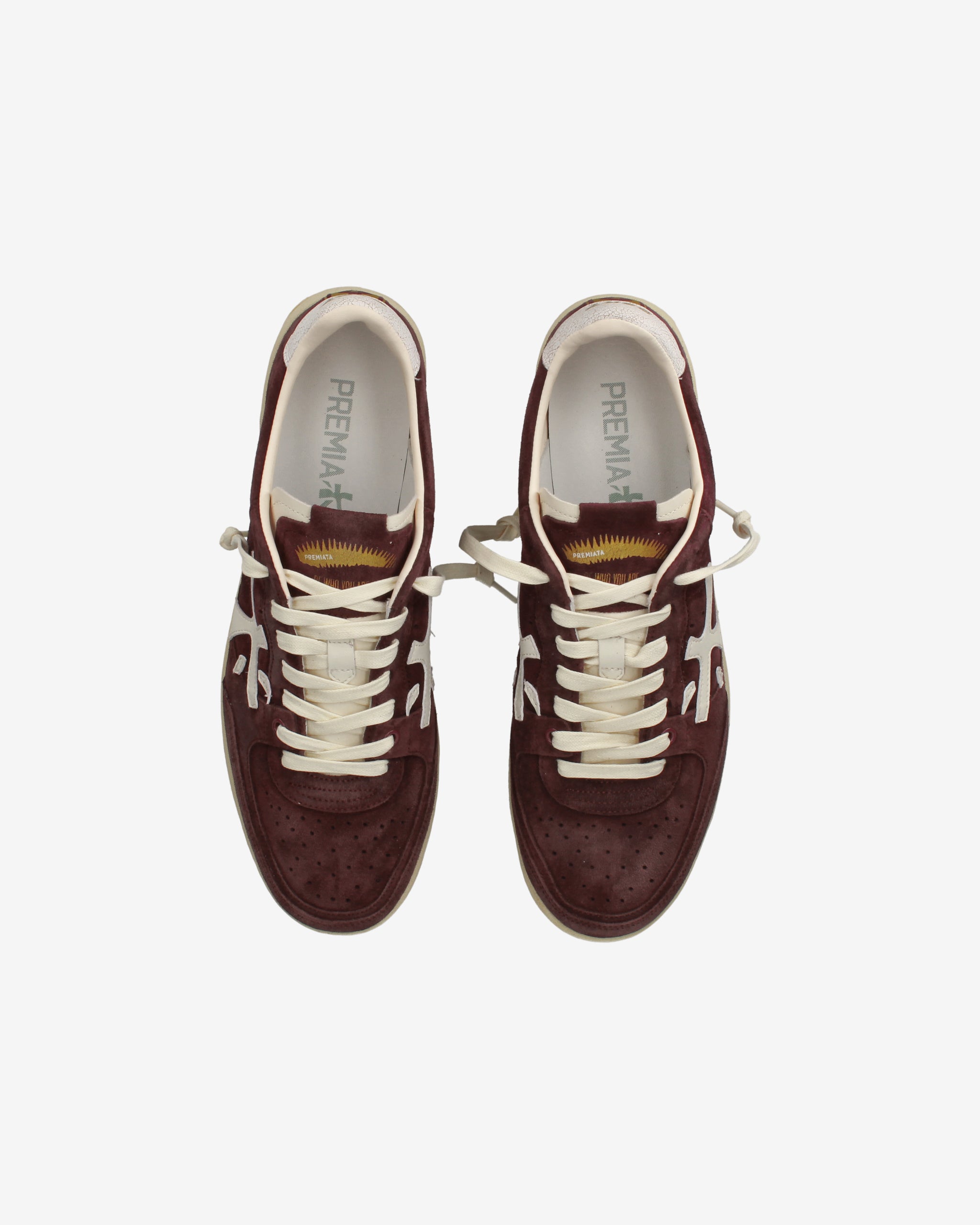 Vintage aesthetic and contemporary spirit. This sneaker combines essential lines and bold details, such as the oversized side logo and the Premiata custom sole. A model designed for those who want to stand out, without sacrificing everyday versatility.