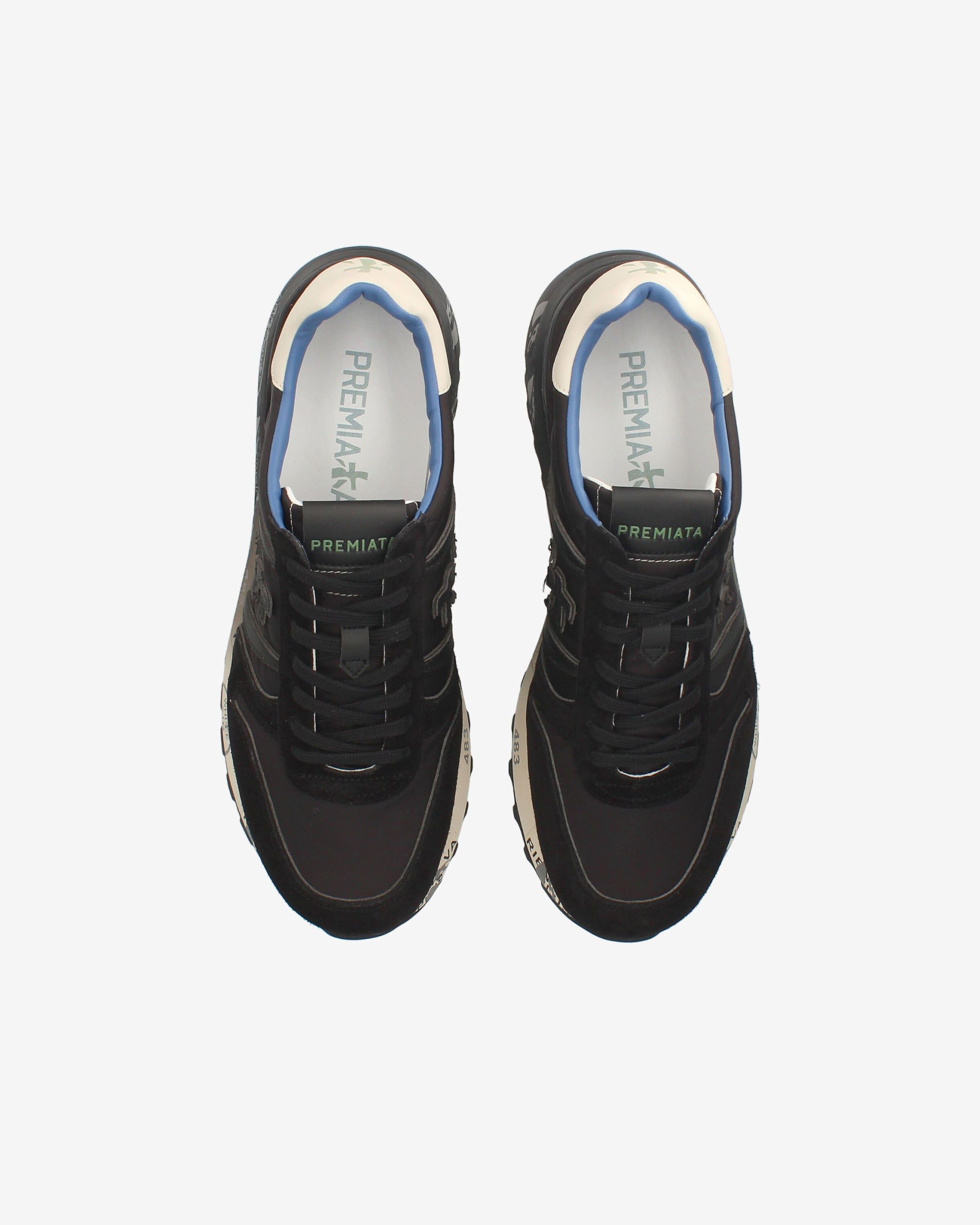 Lander sneakers made of soft suede leather and nylon in the shade of black. The look is enhanced by the unmistakable Premiata logo and colorful details on the sole. Ergonomic and super lightweight outsole.