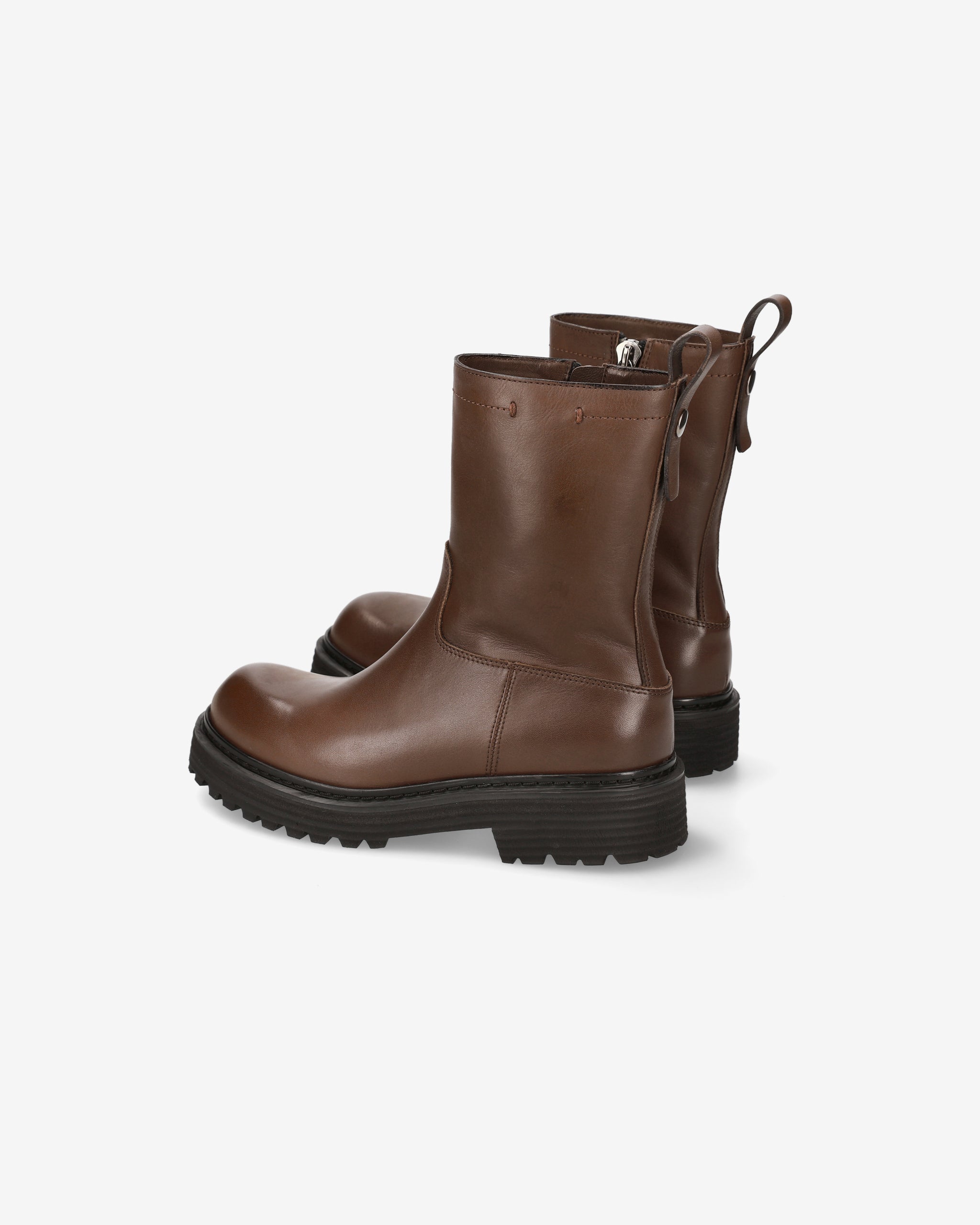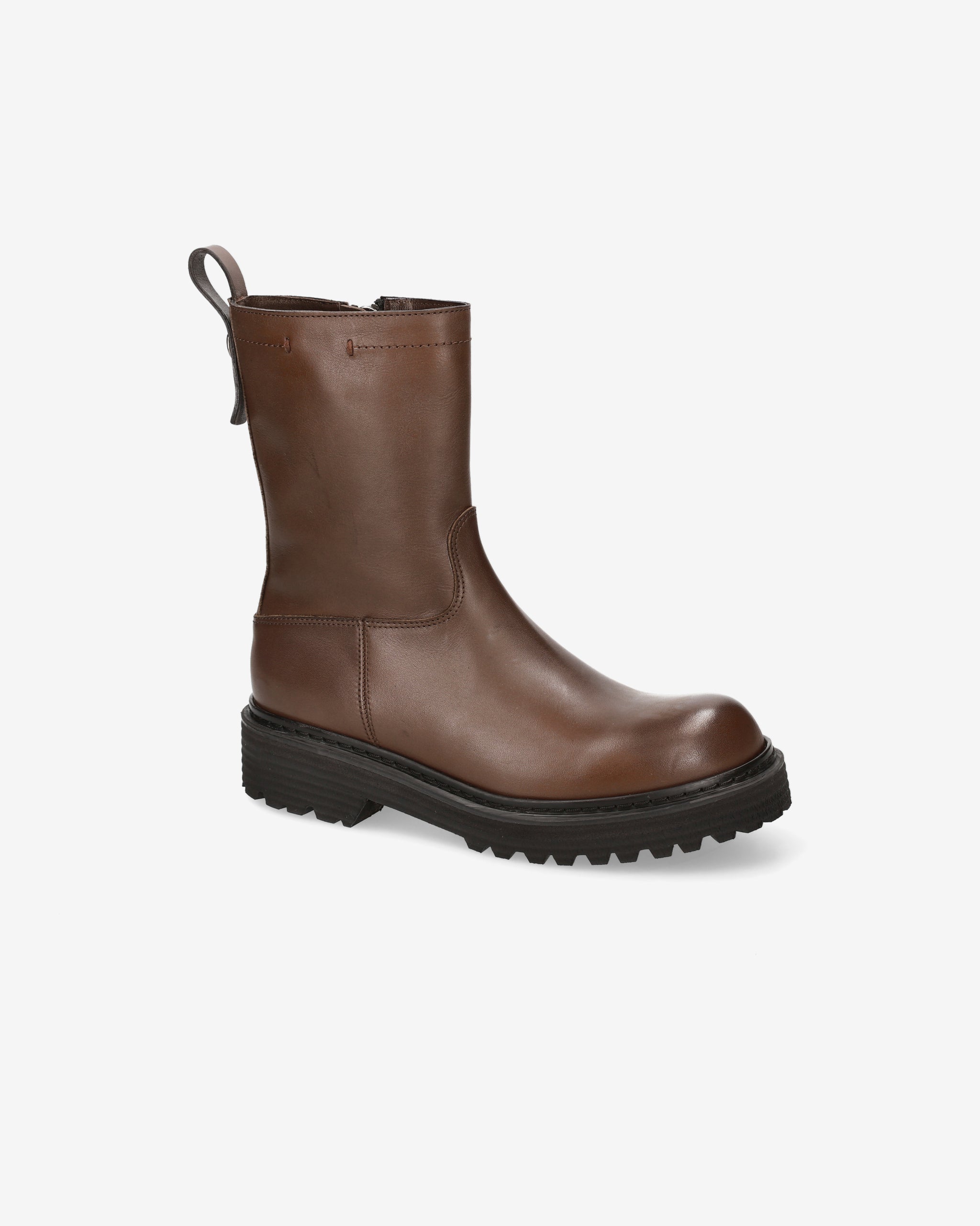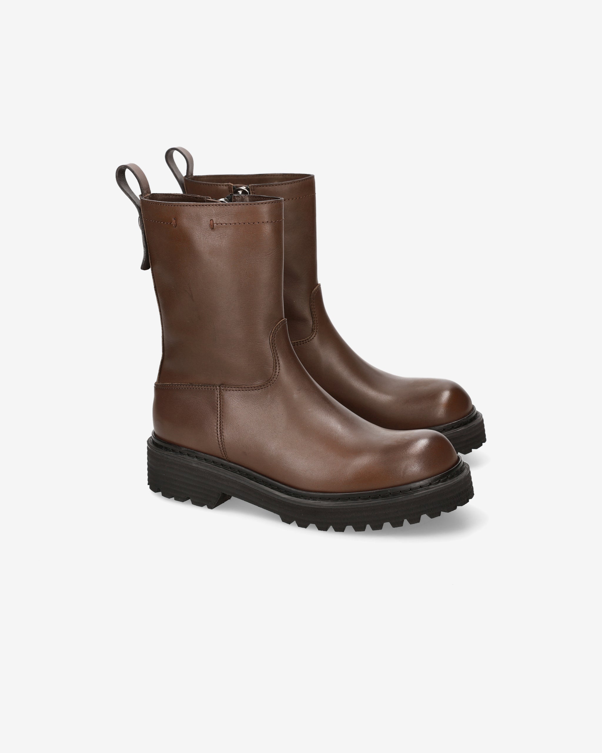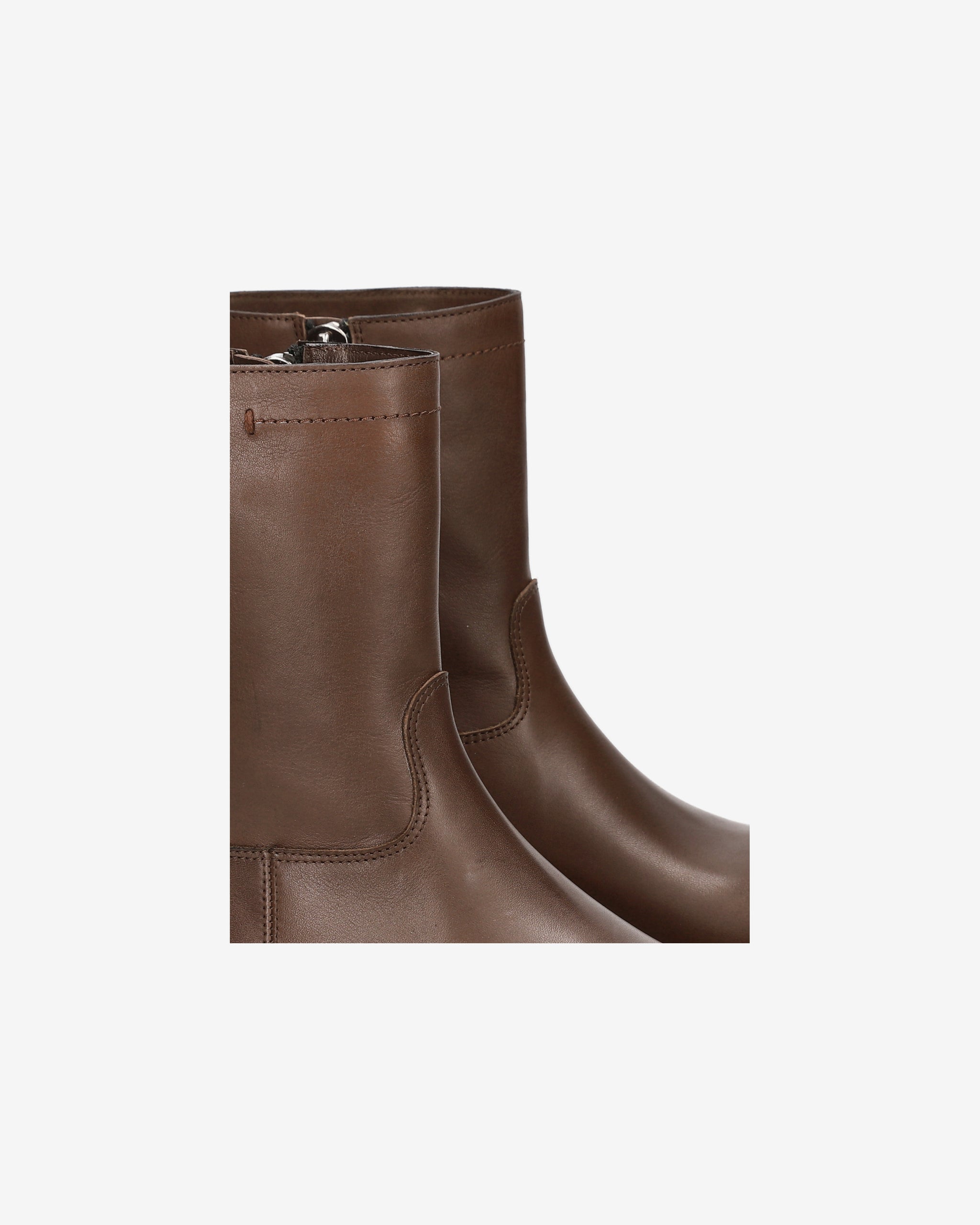 Women's ankle boots with a simple and functional design, ideal for everyday use during the cold season. Made of brown leather, they offer an understated look that is easy to match.