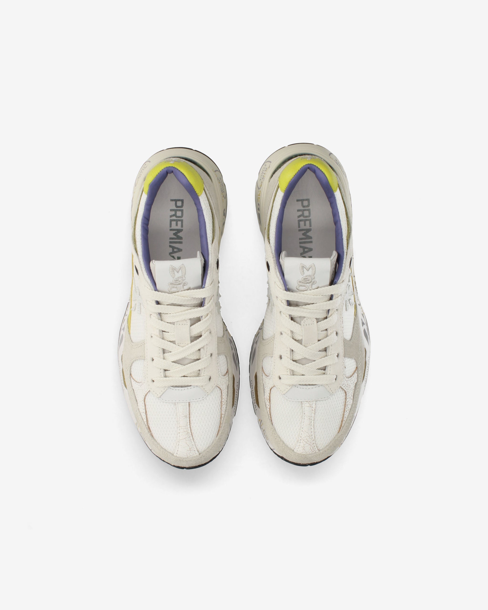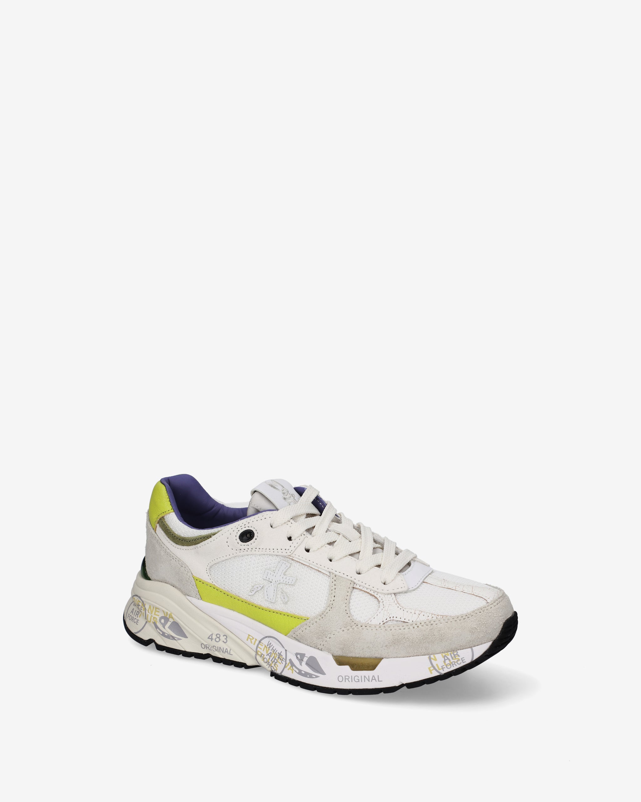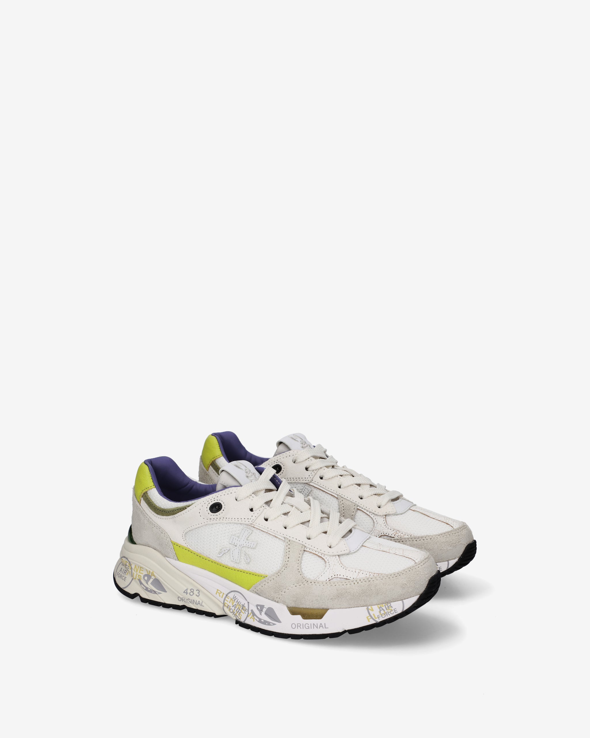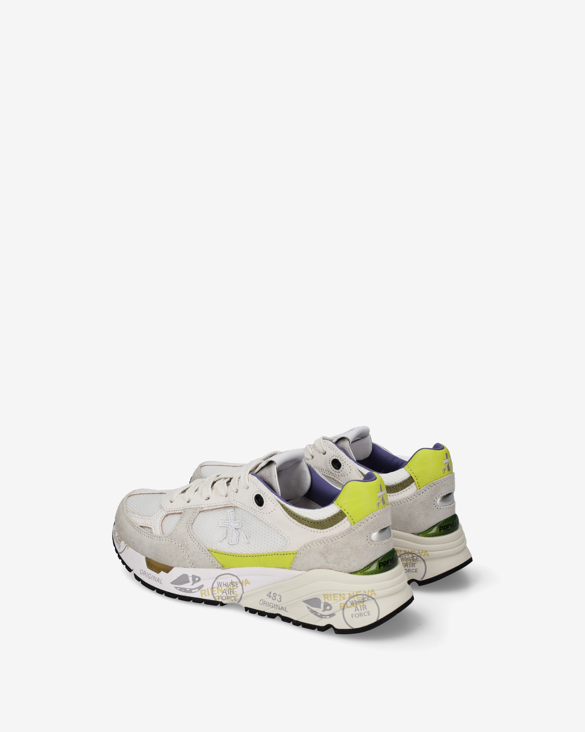 Inspired by the '90s, they combine a modern silhouette with premium materials and vibrant details. True to Premiata's design, they retain all the key elements: the logo adorning the sides, the "MASE" lettering on the label, and contrasting finishes and details that make them stand out.
