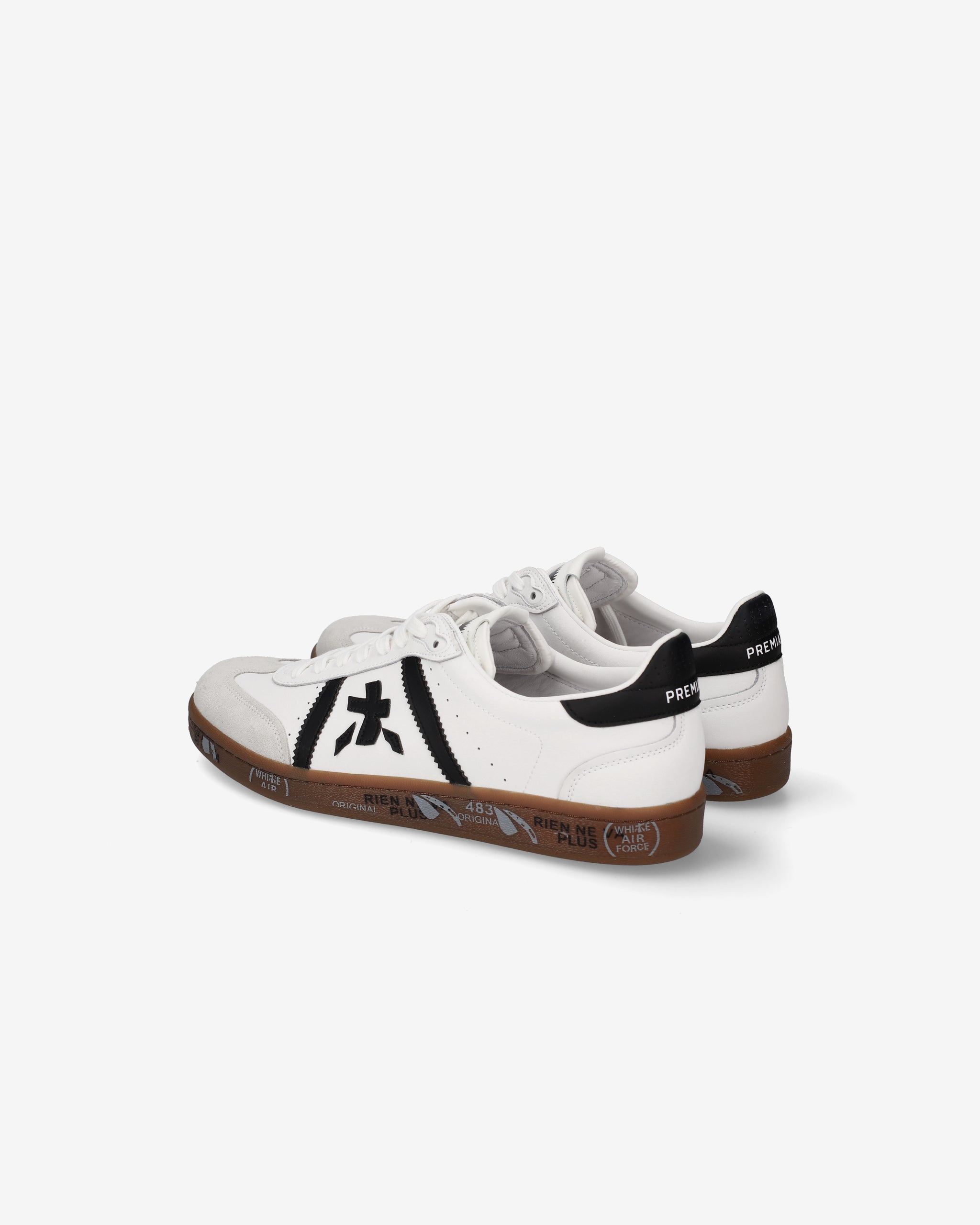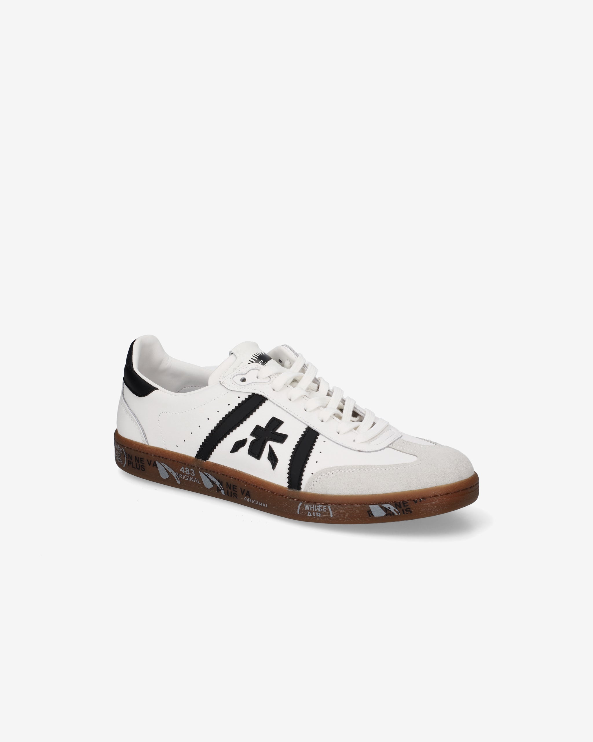 Bonnie with white upper, contrasting black details and brown sole. A mix of classic colors for a clean, sophisticated aesthetic.