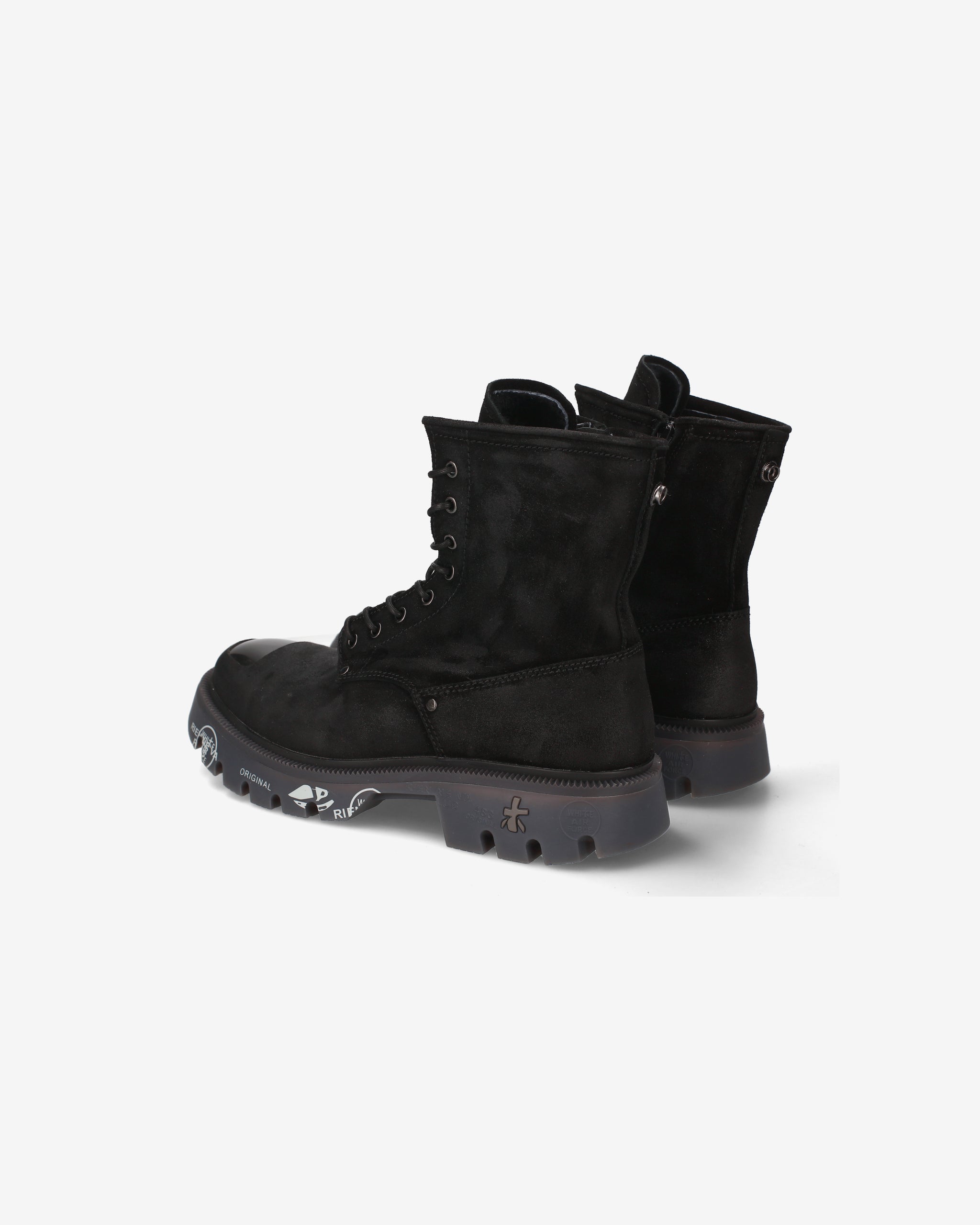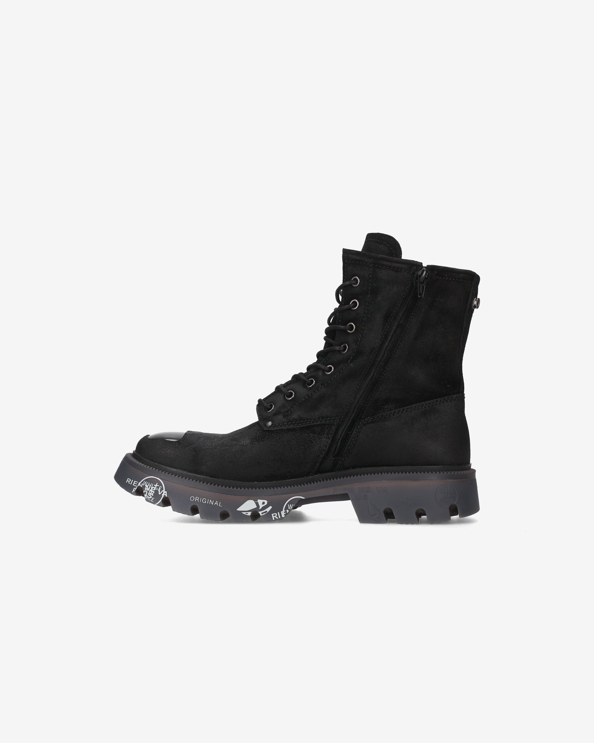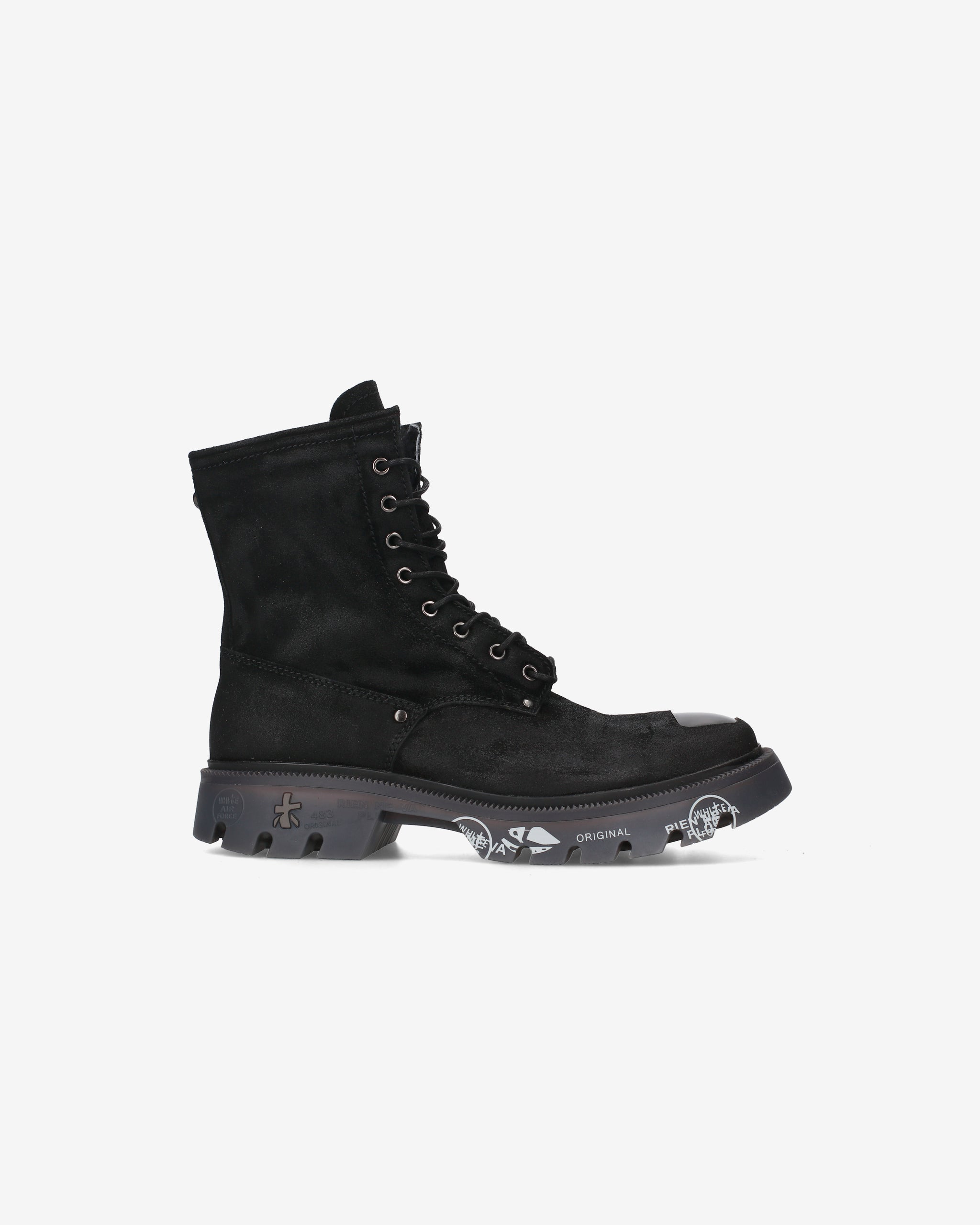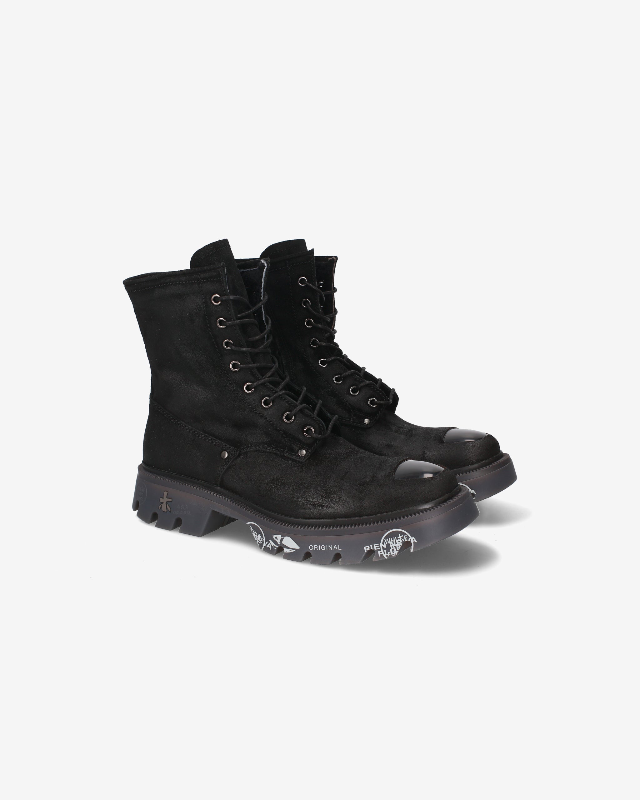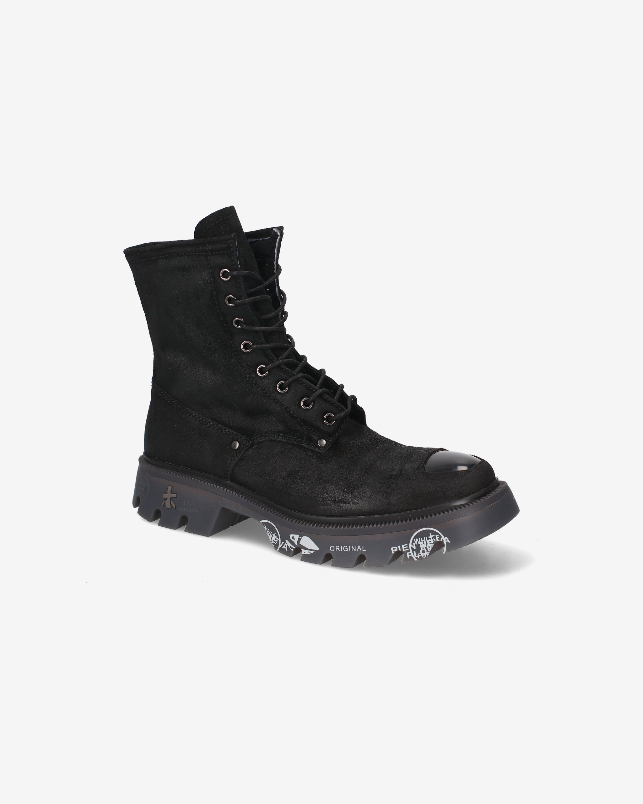 Crust leather amphibian with sheepskin-lined interior, ABS toe cap and matching bottom. Thermal comfort and style come together in a design inspired by London's underground aesthetic.