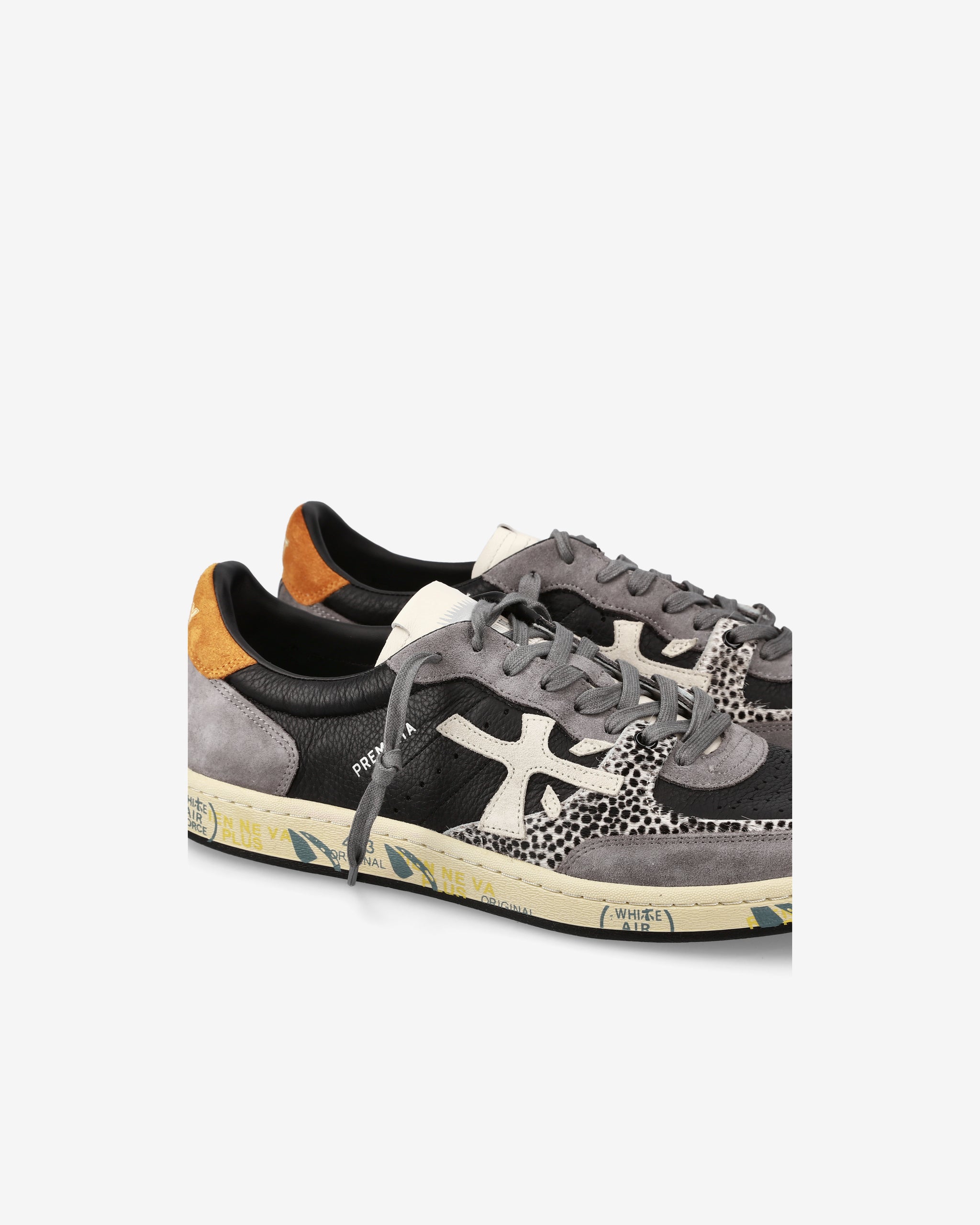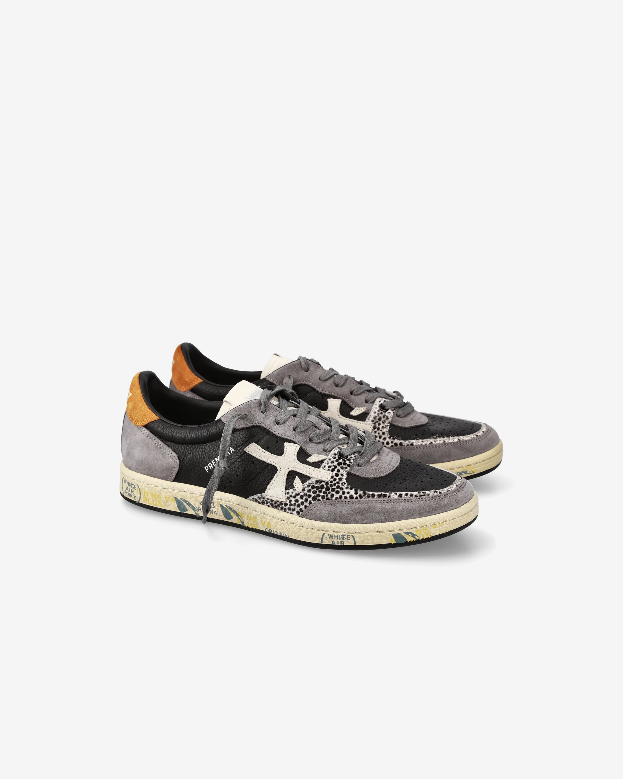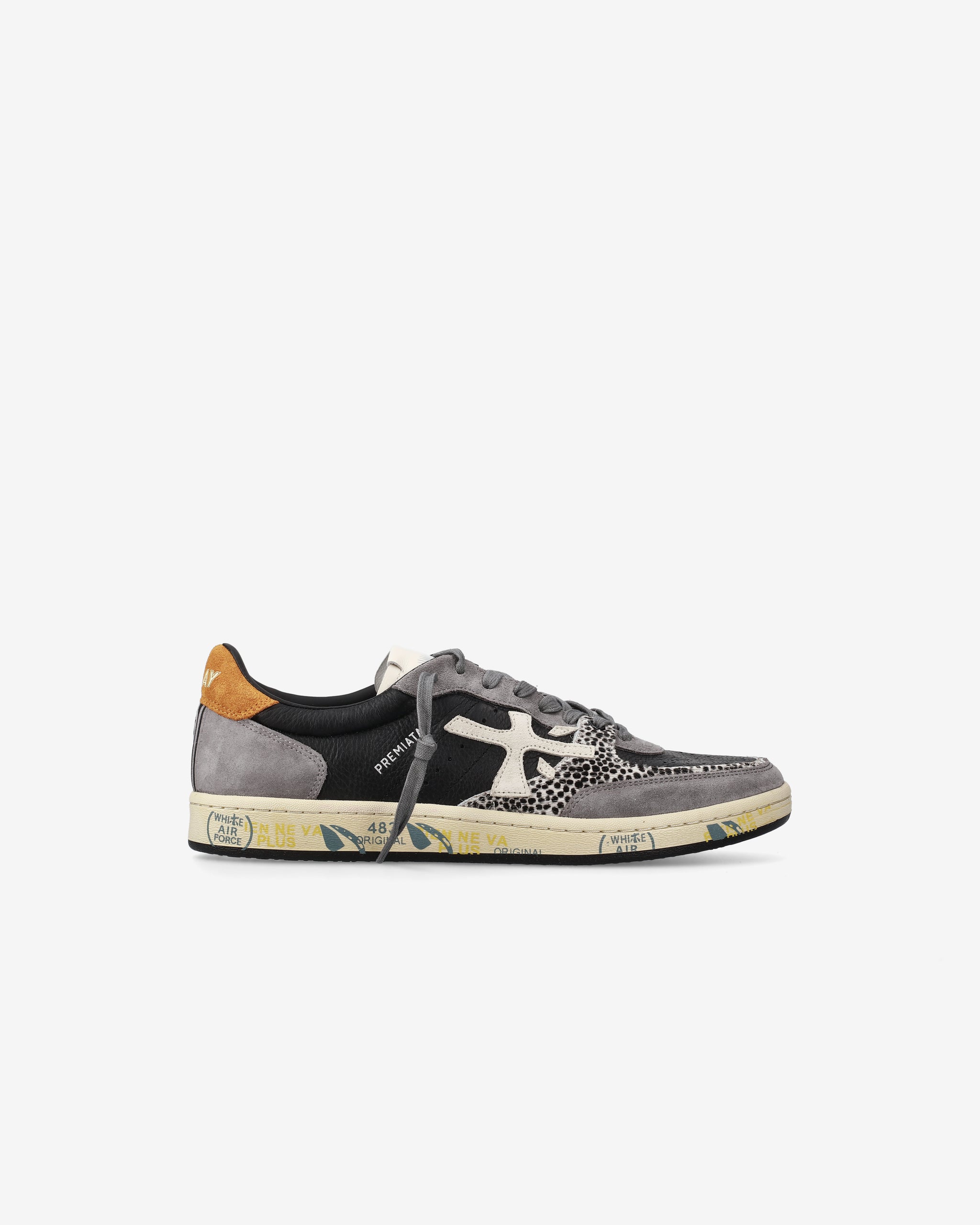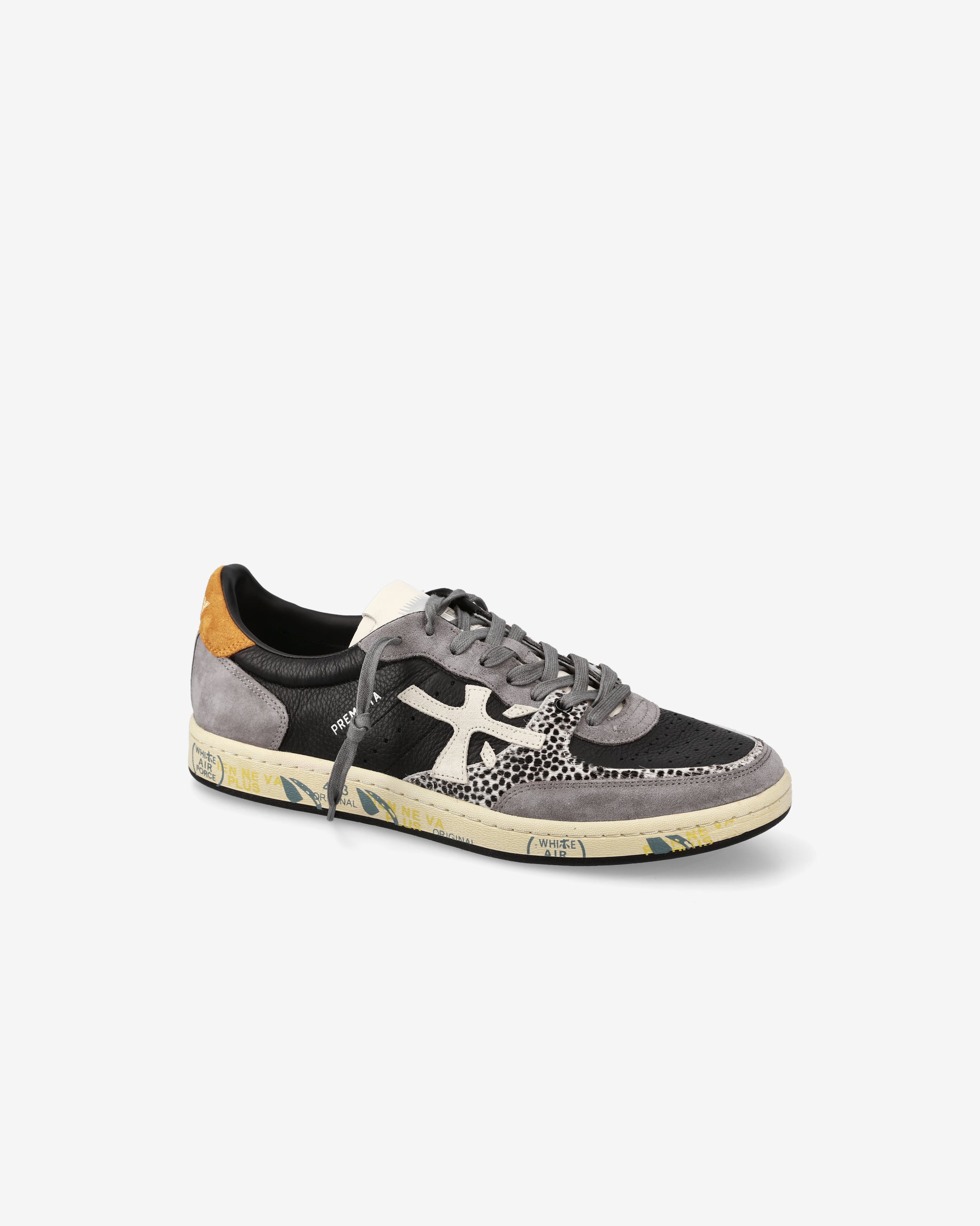 Vintage aesthetic and contemporary spirit. This sneaker combines essential lines and bold details, such as the oversized side logo and the Premiata custom sole. A model designed for those who want to stand out, without sacrificing everyday versatility.