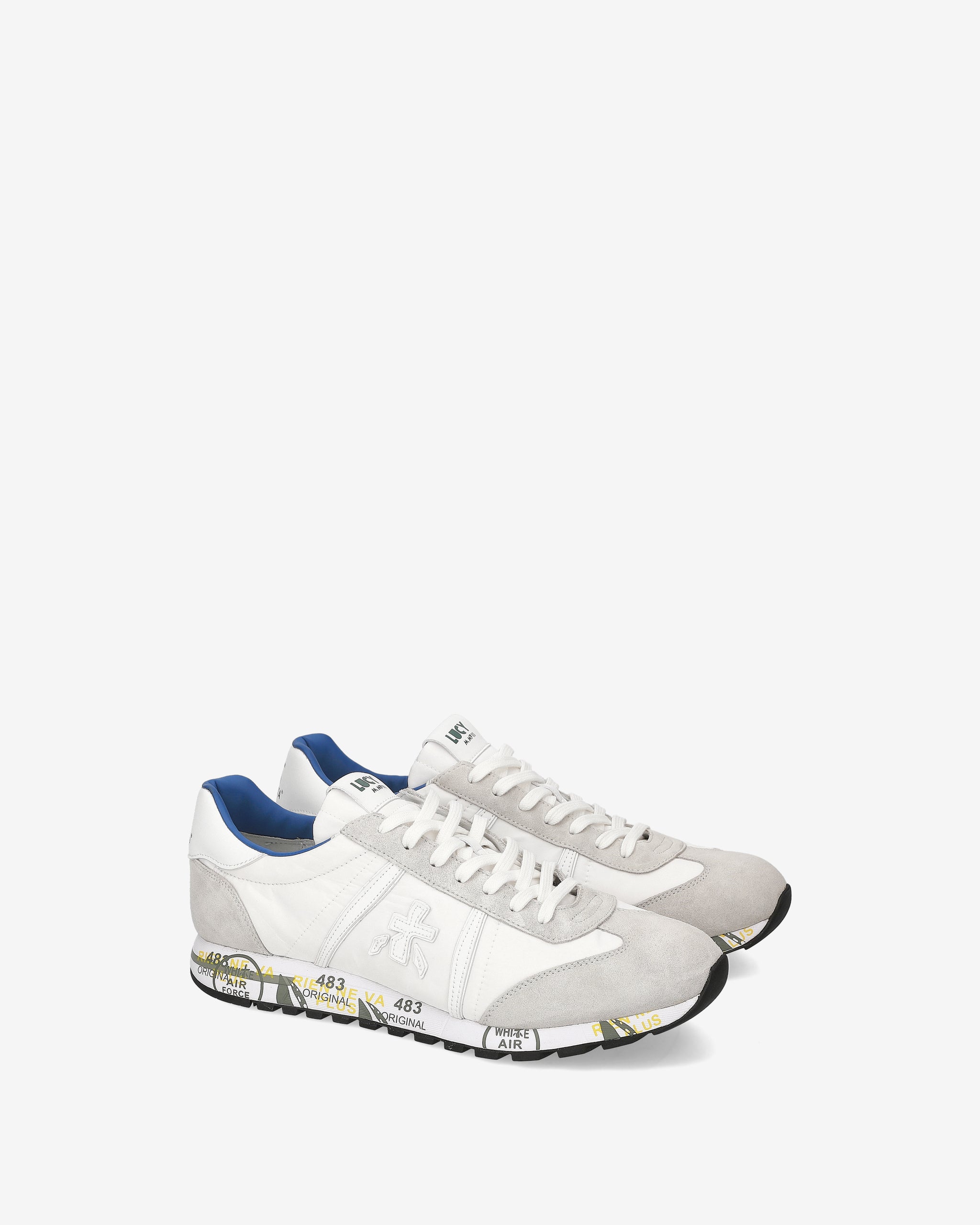 Timeless, iconic, and casual. They embody the Premiata Family manifesto. Their hybrid design and mix of versatile, simple yet sophisticated materials make them a must-have item. The fabric and suede upper, with the Premiata logo on the side, characterizes this emblem.