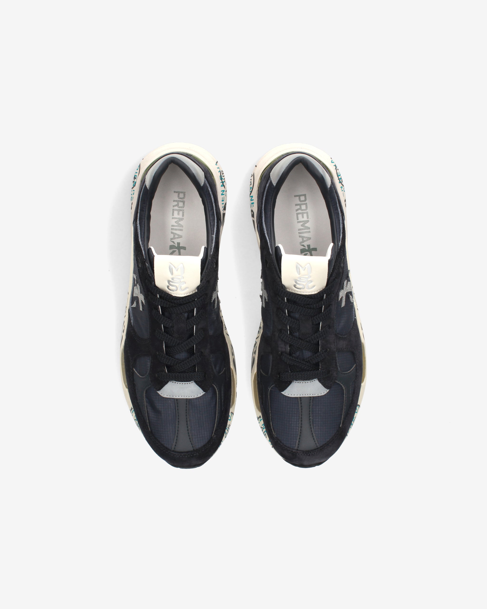 Echoing the mood of the nineties, they combine a modern silhouette with fine materials and lively details. Faithful to the Premiata design, they retain all the key elements: the logo decorating the sides, the MASE lettering on the label, and contrasting treatments and details that enhance their visibility.