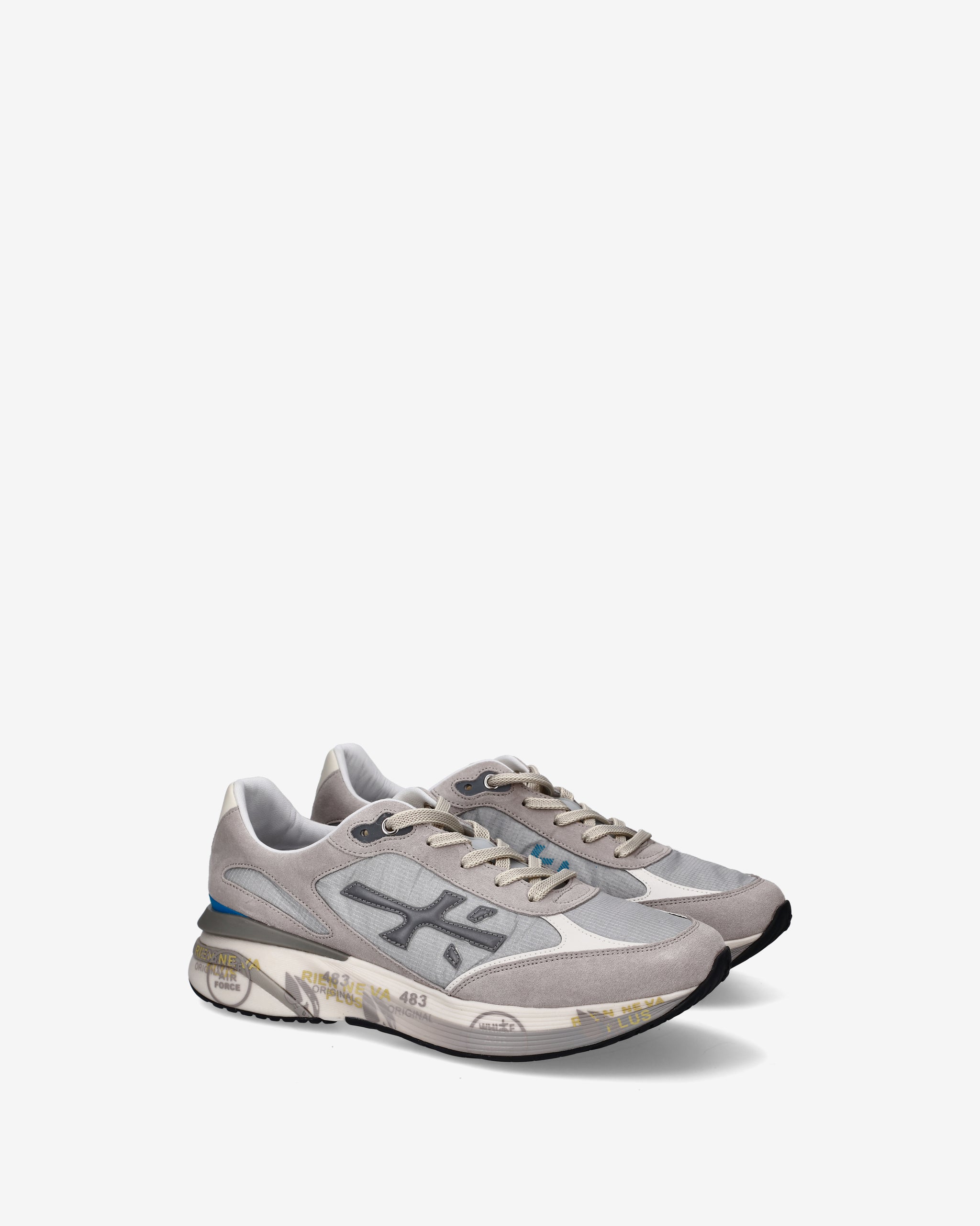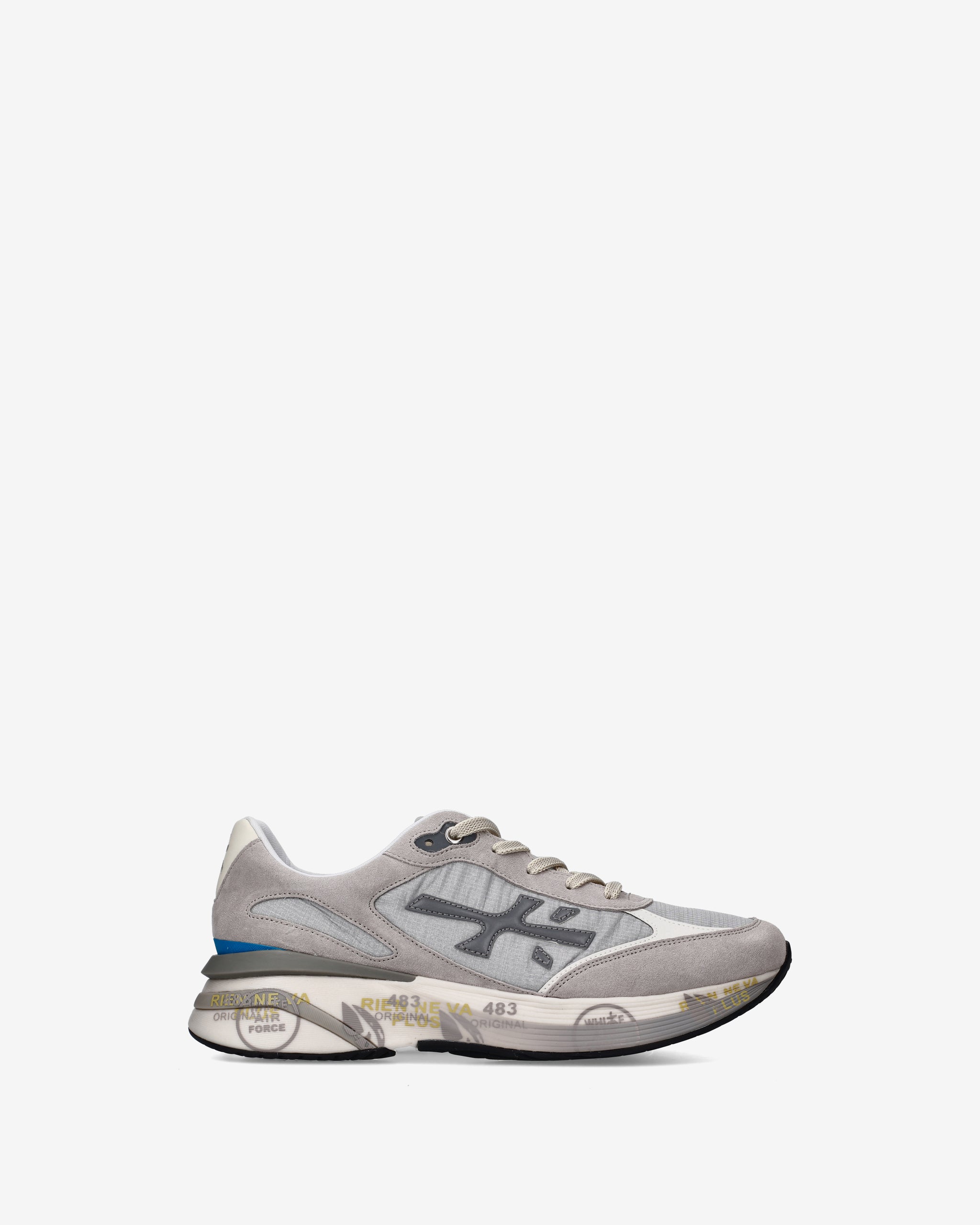 Designed to impress. The Moerun is based on lightness of movement, stability, and the cushioning sensation provided by the innovative sole. The new silhouette is rich in details: logo on the outer side, PREMIATA lettering on the inner side, and model name on the label.