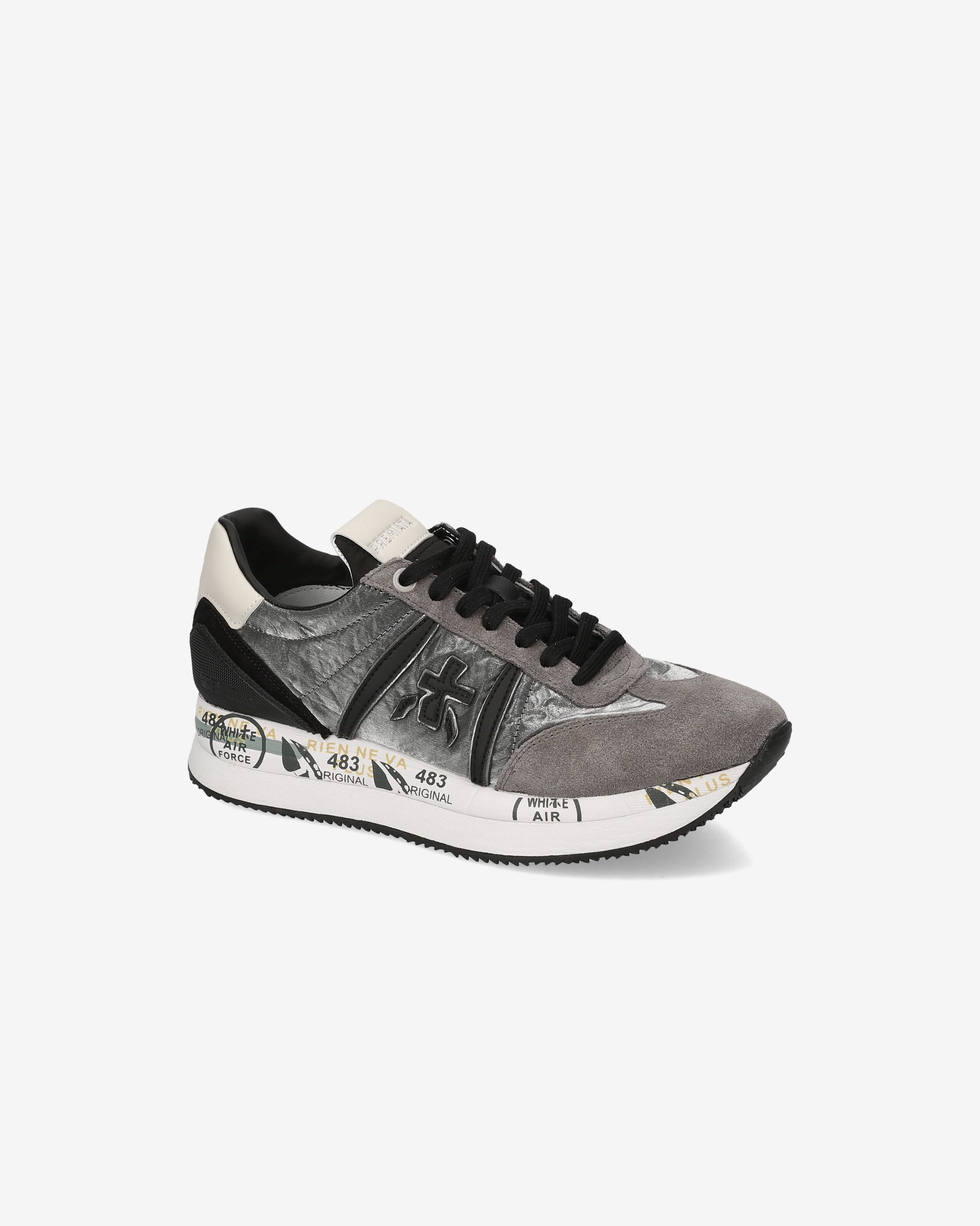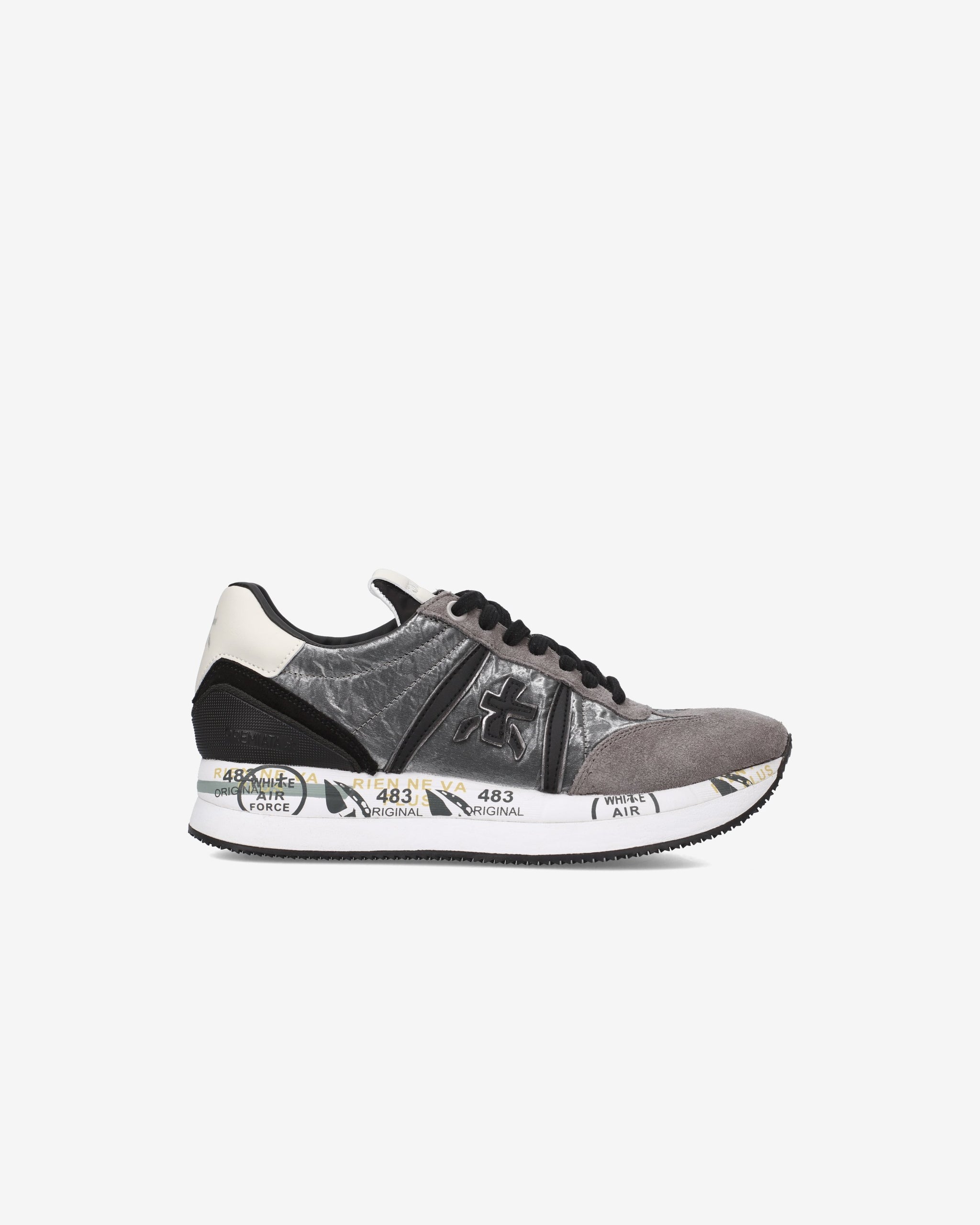 Quality materials and leathers characterize this sneaker, as does our entire history. The shoe is made unique by the mix of leathers and fabrics and shiny details. The bottom enhances the look, contributing a casual glam spirit and slimming the silhouette.