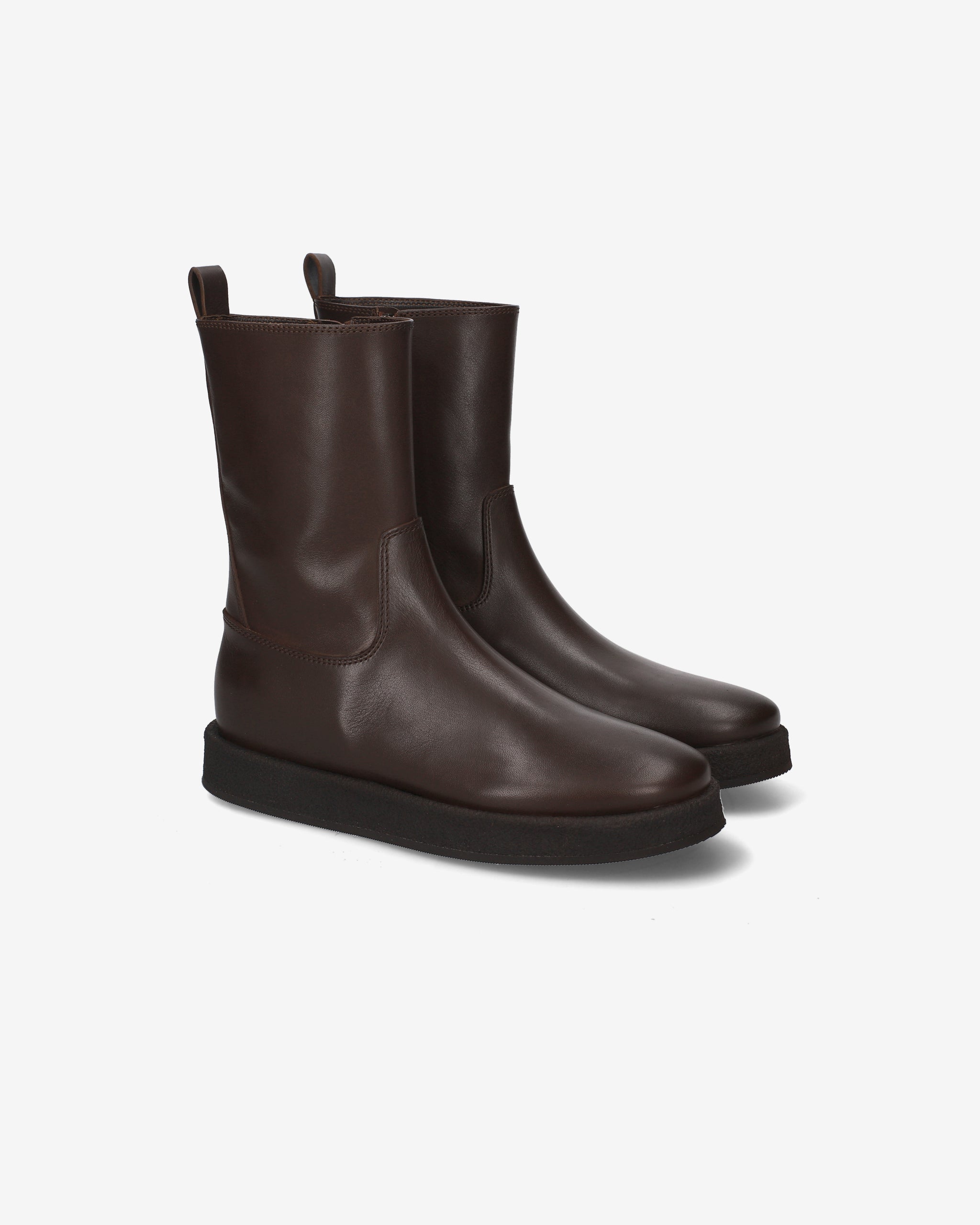 Stivaletti da donna dal carattere deciso, ideali per affrontare la stagione fredda con stile e solidità. Il colore marrone della pelle si abbina perfettamente alla suola in crepe, per un look autentico e contemporaneo.