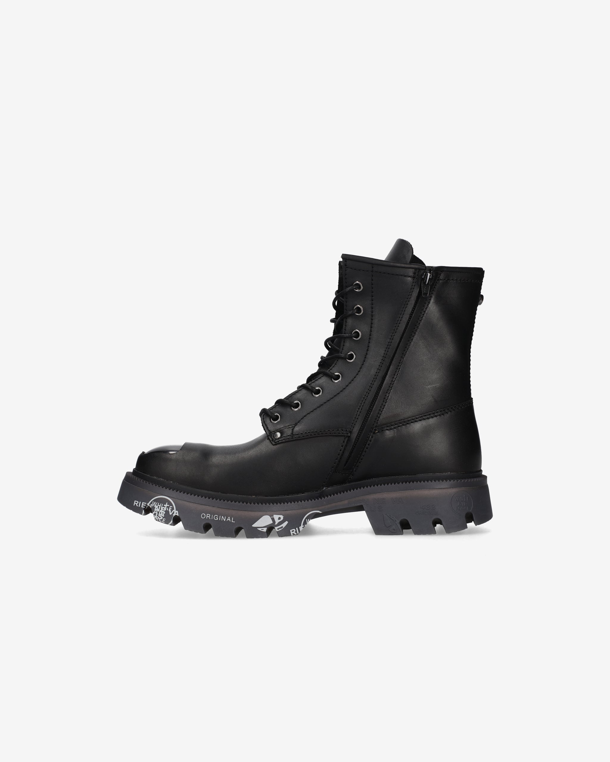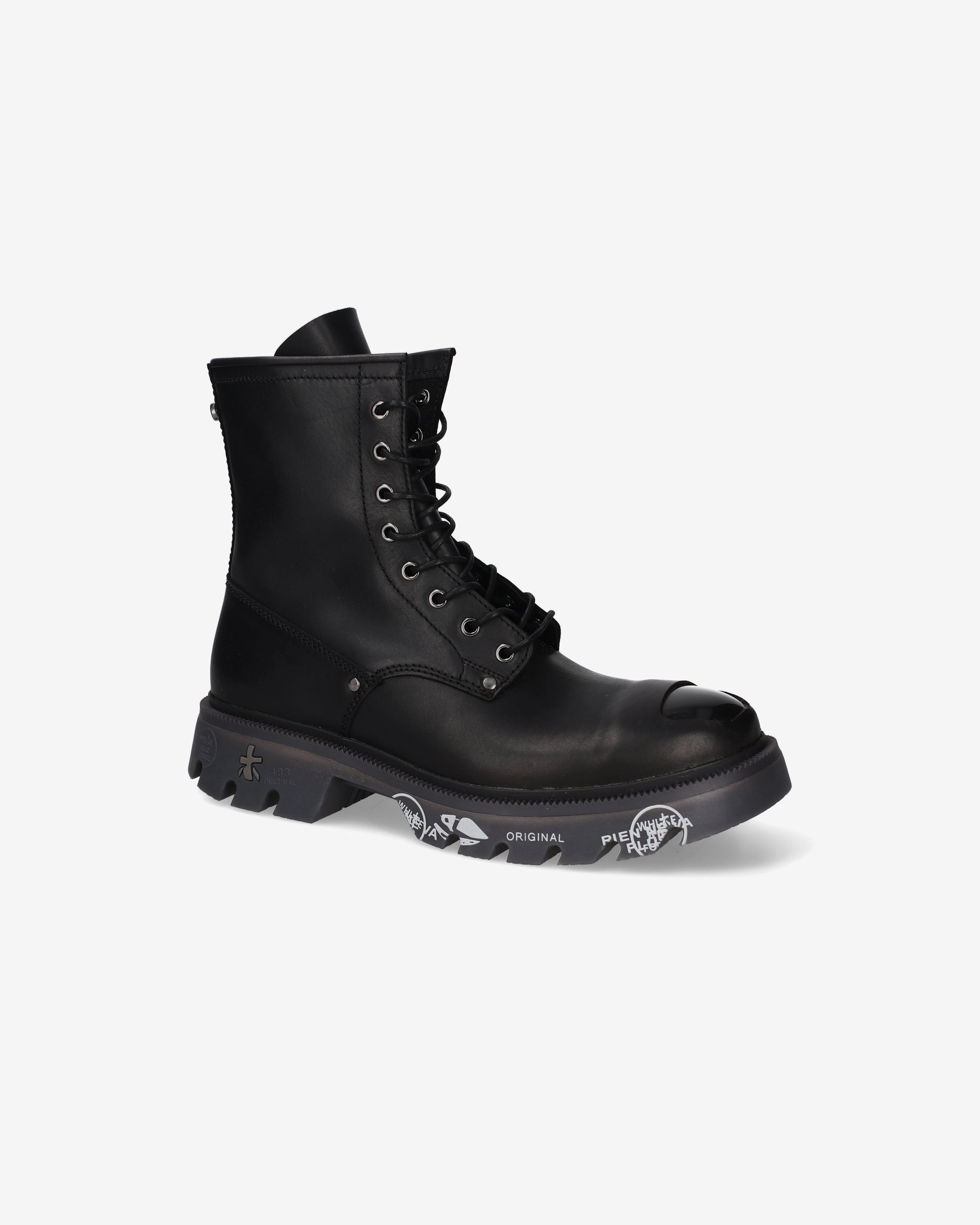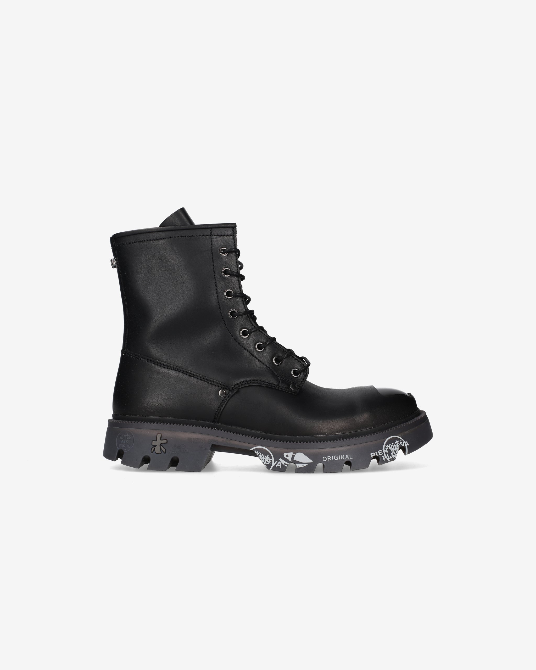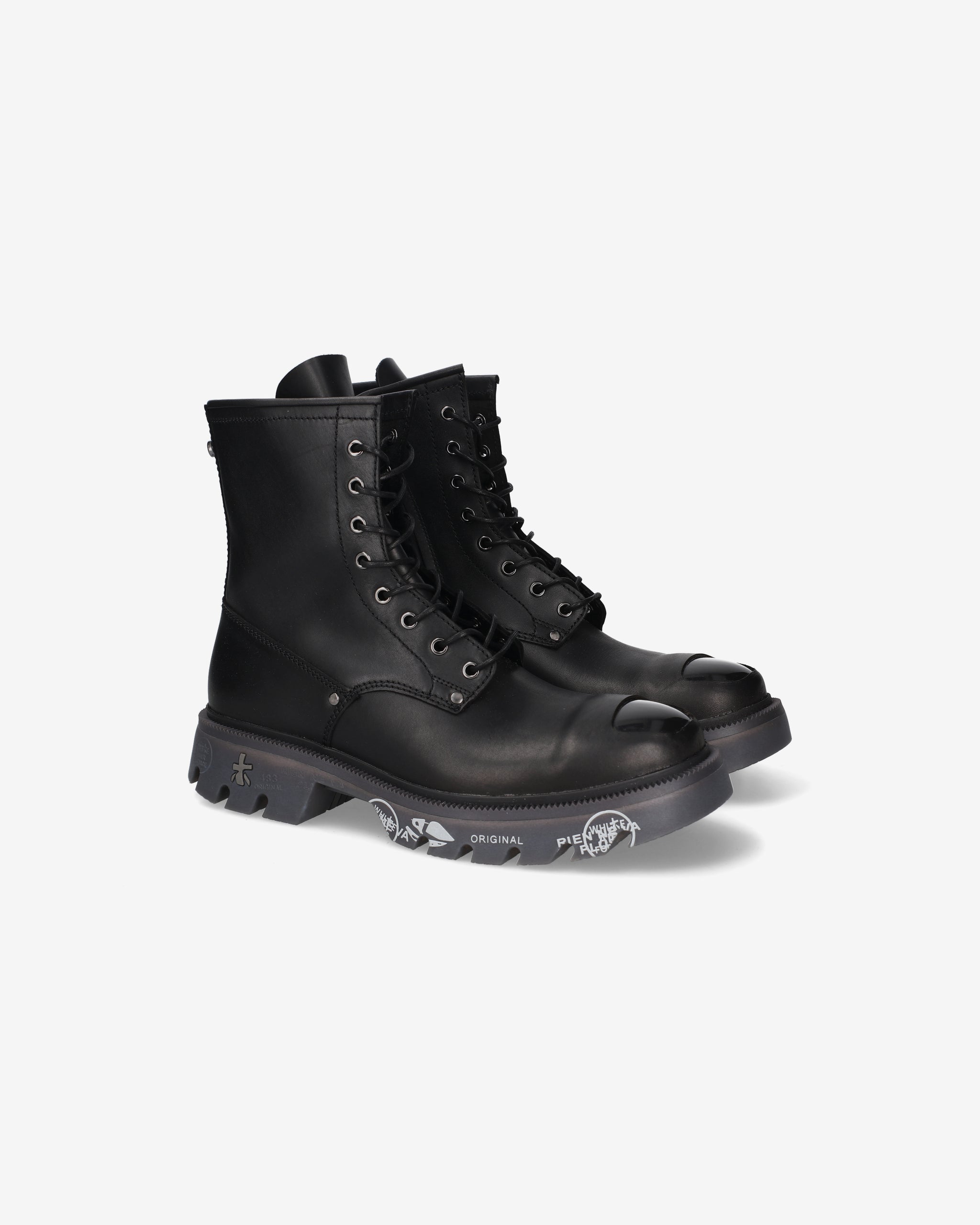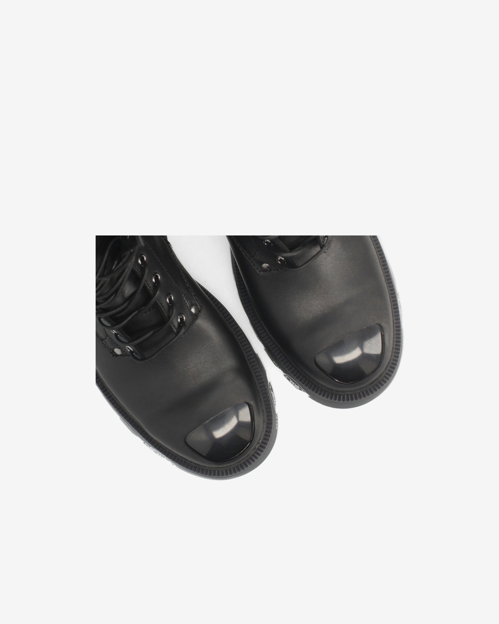 Anfibio in vitello con punta in ABS e suola in tono. Linee essenziali e materiali di qualità per uno stile sobrio ma deciso, ispirato all’estetica underground londinese.
