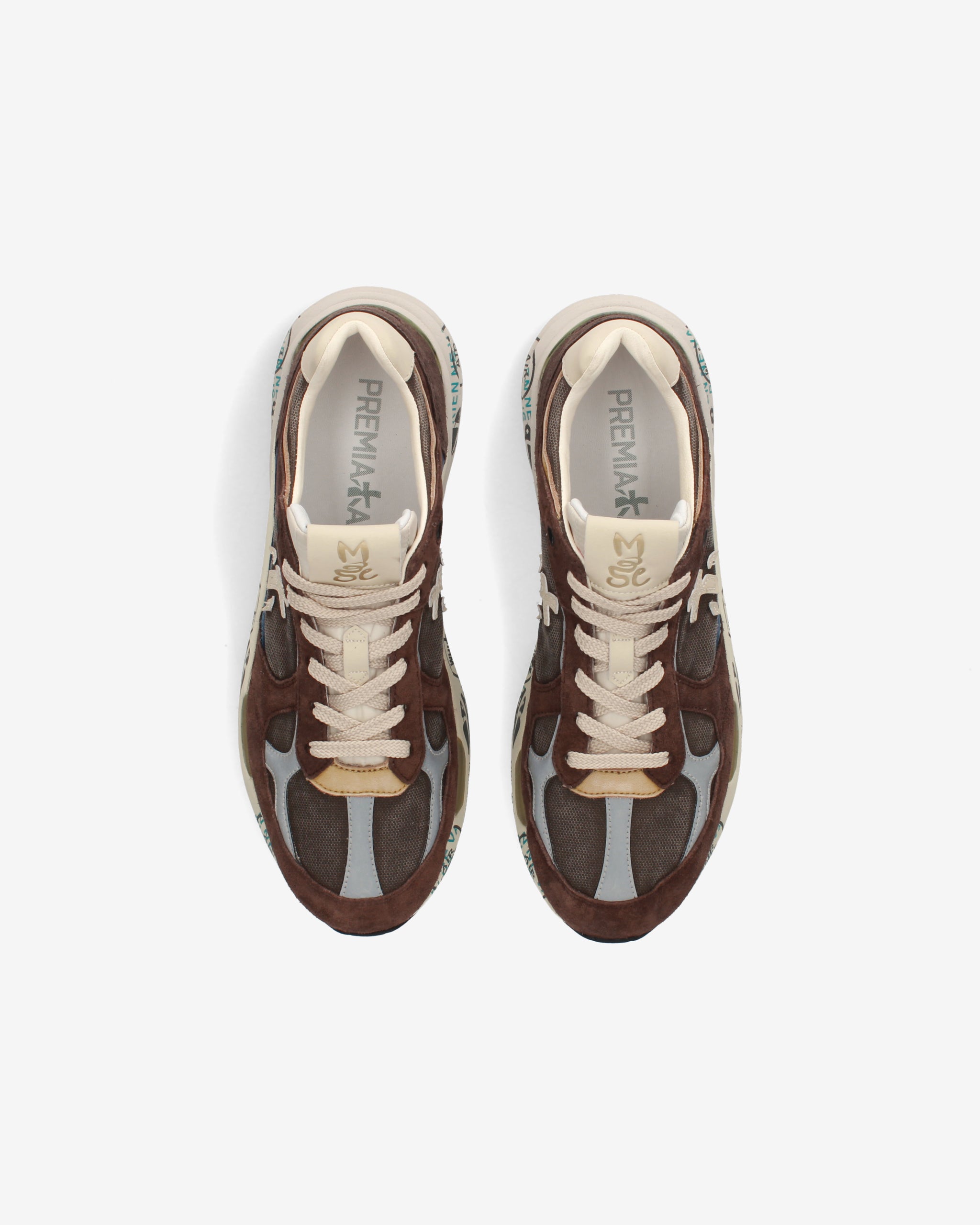 Risentono del mood nineties, combinano una silhouette moderna con materiali pregiati e dettagli vivaci. Fedeli al design Premiata, ne conservano tutti gli elementi chiave: il logo che decora i laterali, la scritta MASE che si evince sull’etichetta, trattamenti e dettagli a contrasto che ne risaltano la visibilità.