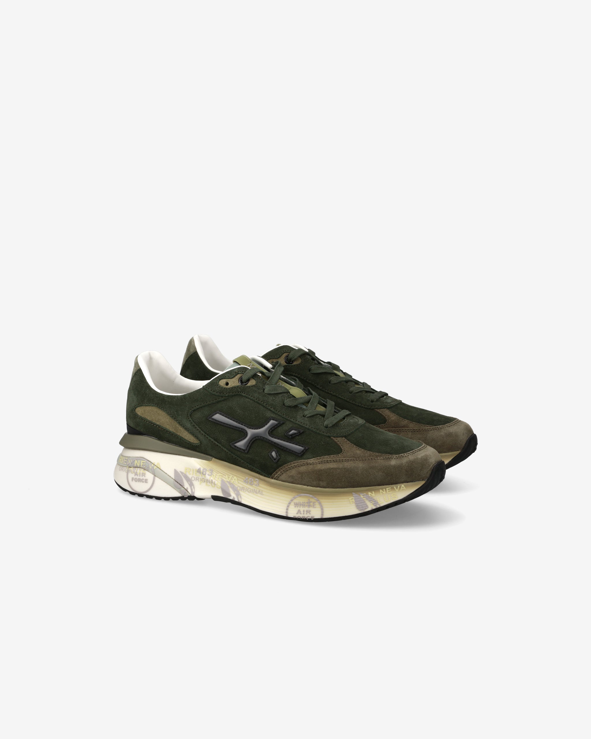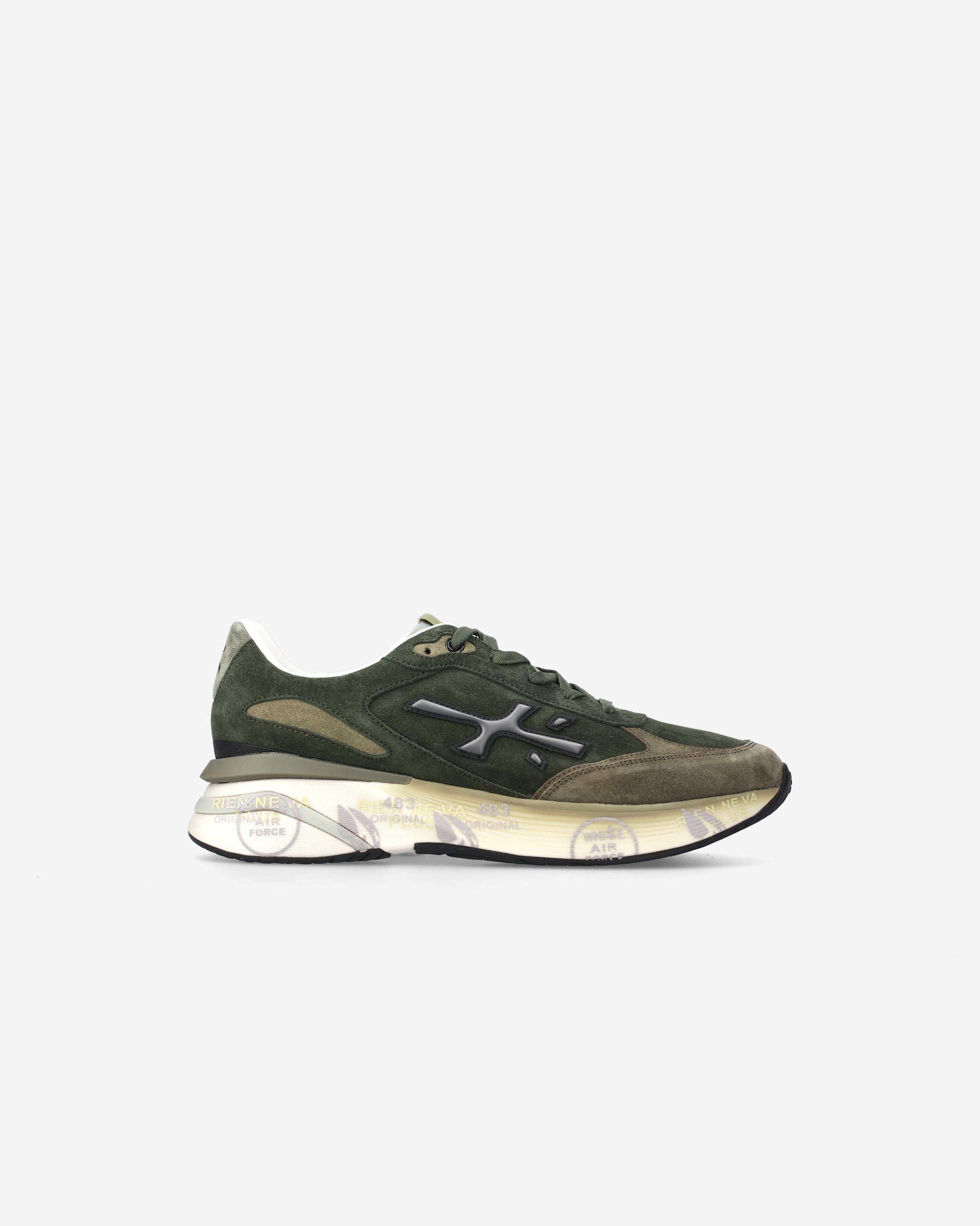 Ideate per stupire. La Moerun si basa sulla leggerezza del movimento, la stabilità e la sensazione ammortizzante data dall'innovazione del fondo. La nuova silhouette è ricca di dettagli: logo sul laterale esterno, scritta PREMIATA sul laterale interno e nome del modello sull'etichetta.