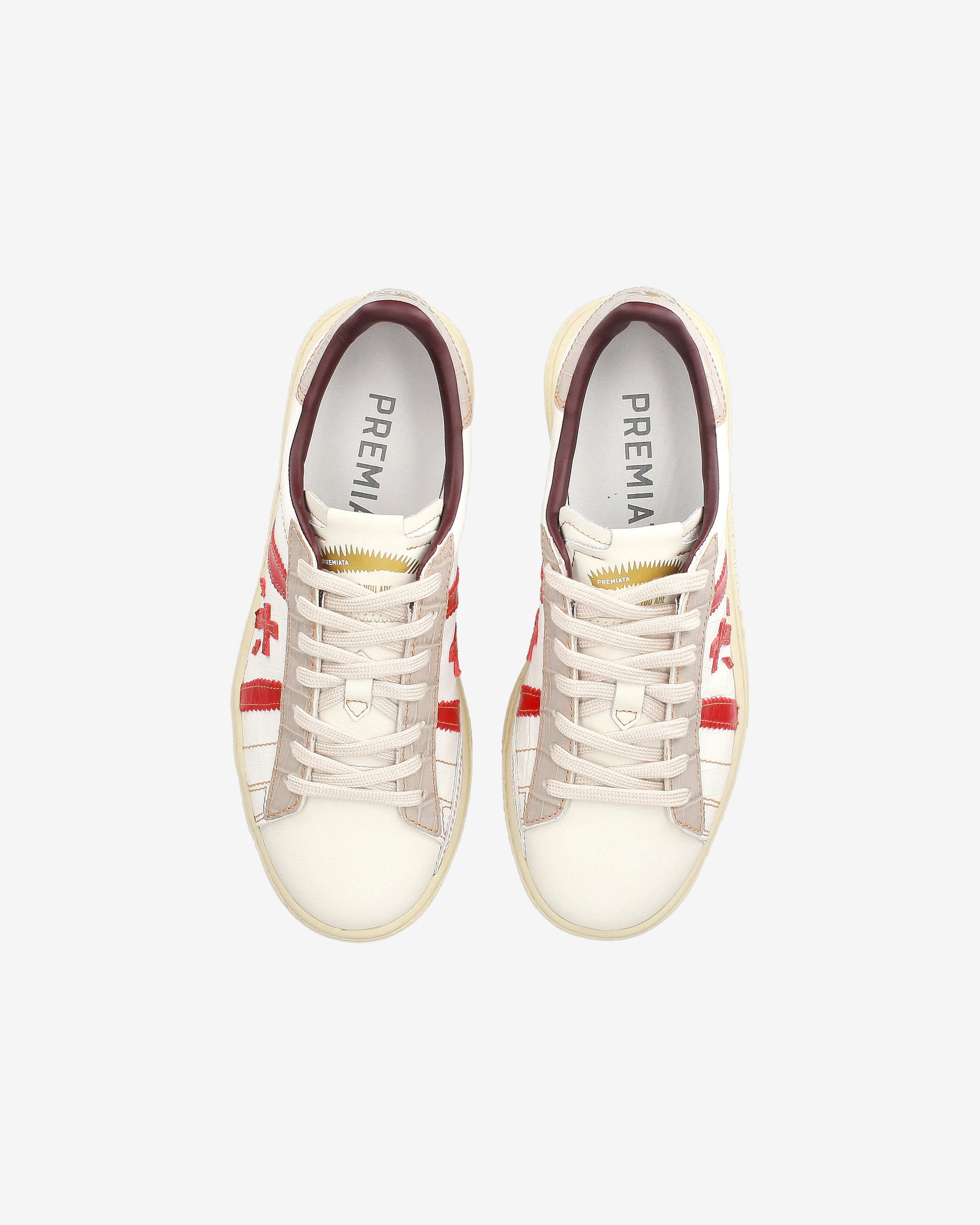 Le Sneakers unisex dal design senza tempo in pelle. Uno stile pulito ed essenziale che si abbina perfettamente ad ogni outfit. La suola dal look raffinato e discreto con dettaglio centrale PREMIATA e timbri a rilievo. La tomaia dal fascino casual in pelle, arricchita da occhielli. Dettagli iconici come il logo classico che decora i laterali, il tallone e l’etichetta.