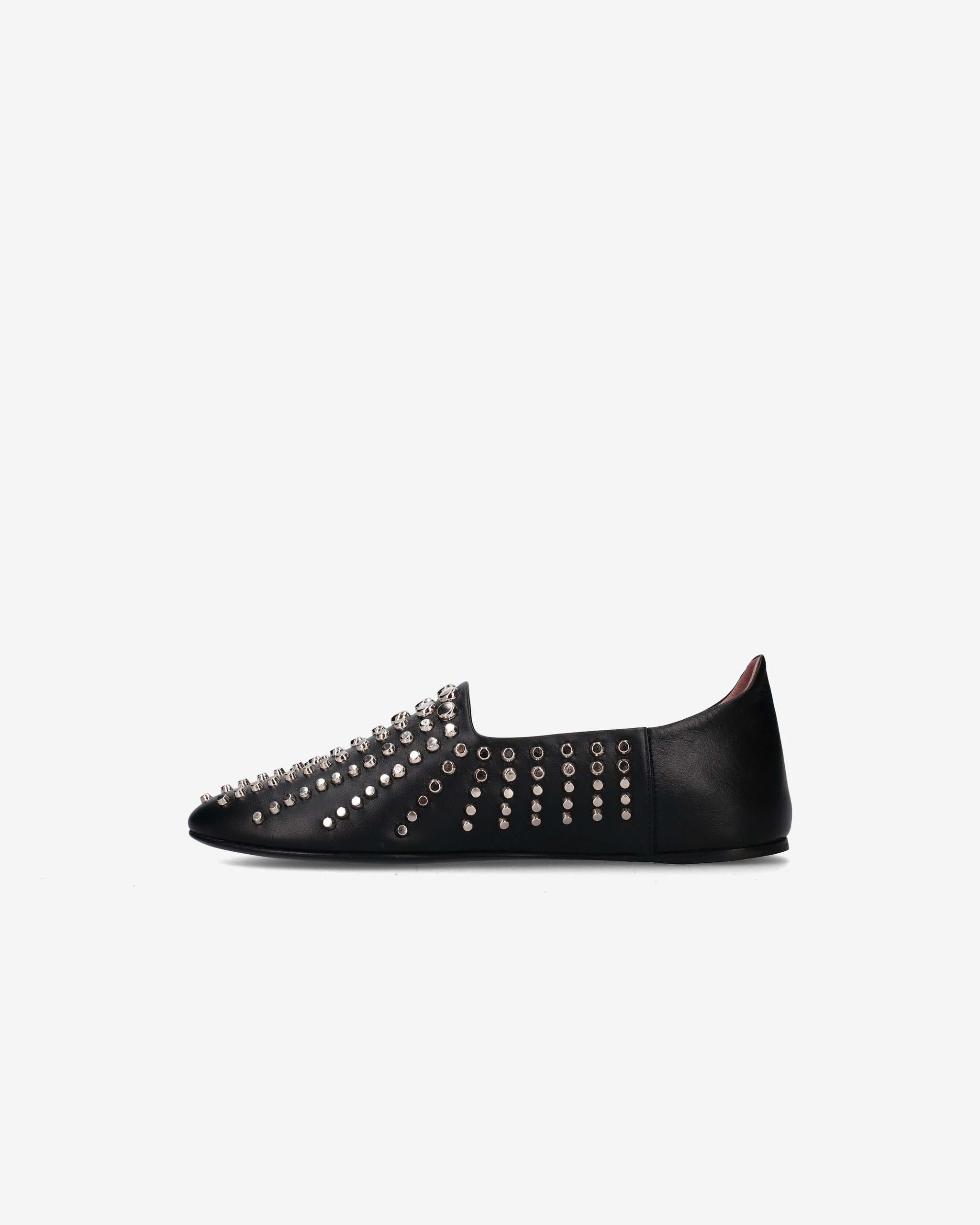 Scarpe da donna dal look grintoso e moderno, pensate per chi ama i dettagli che fanno la differenza. Il colore nero è impreziosito da borchie, per un tocco rock e sofisticato.