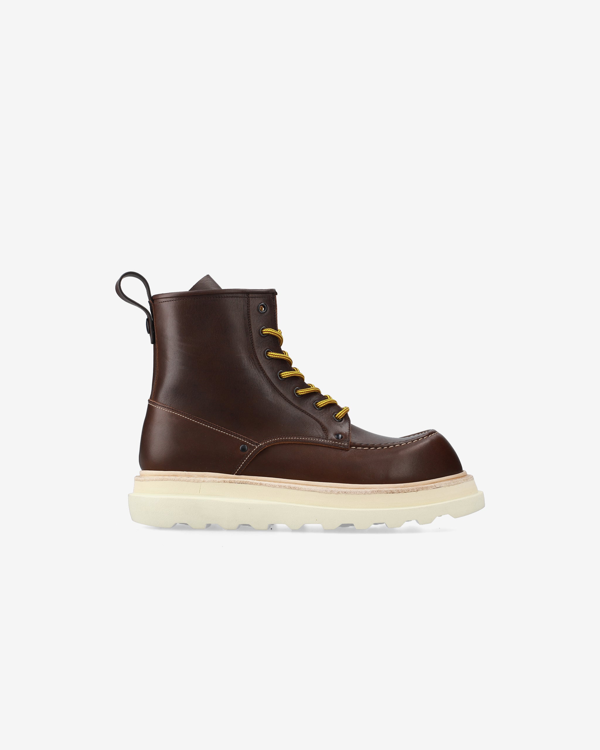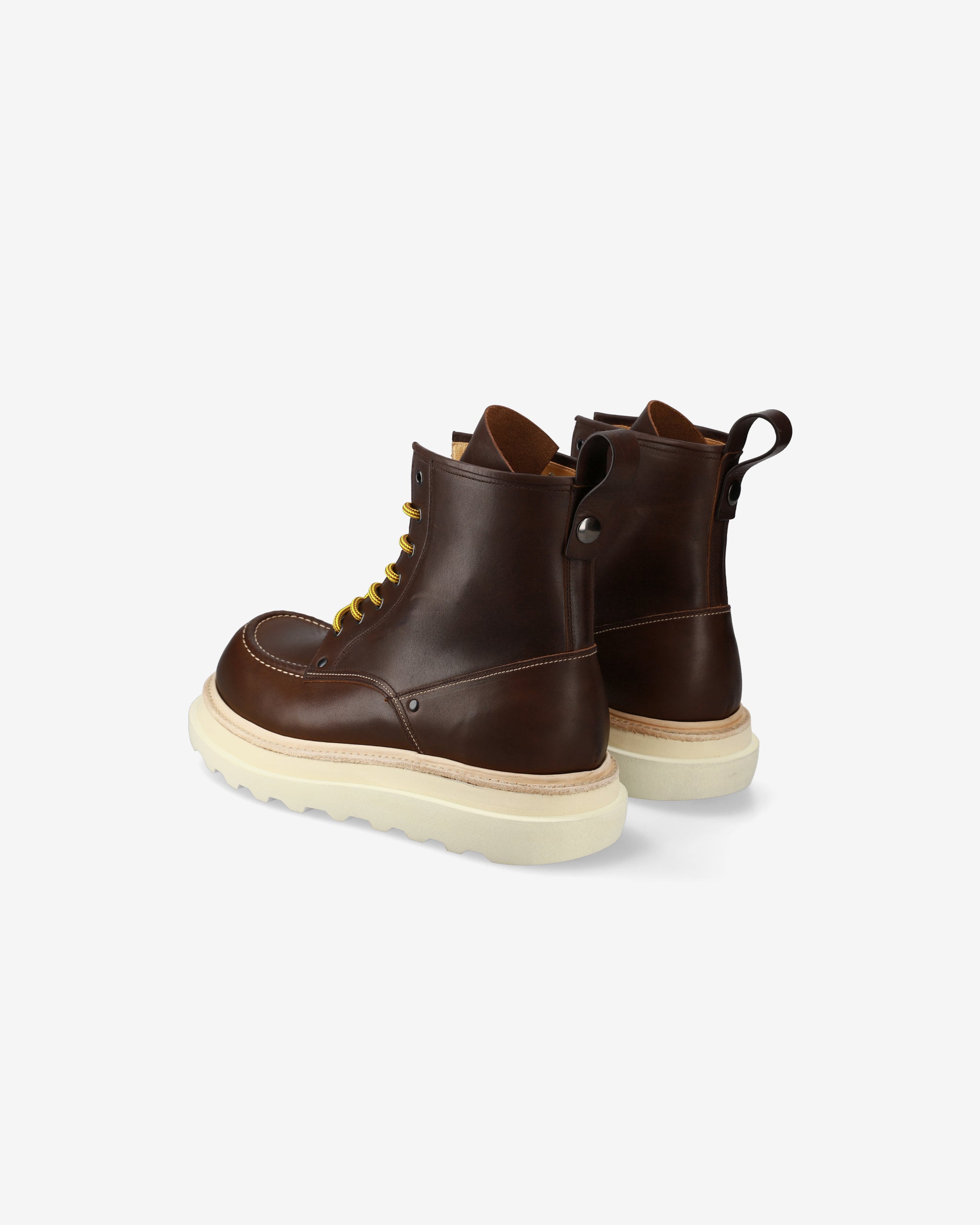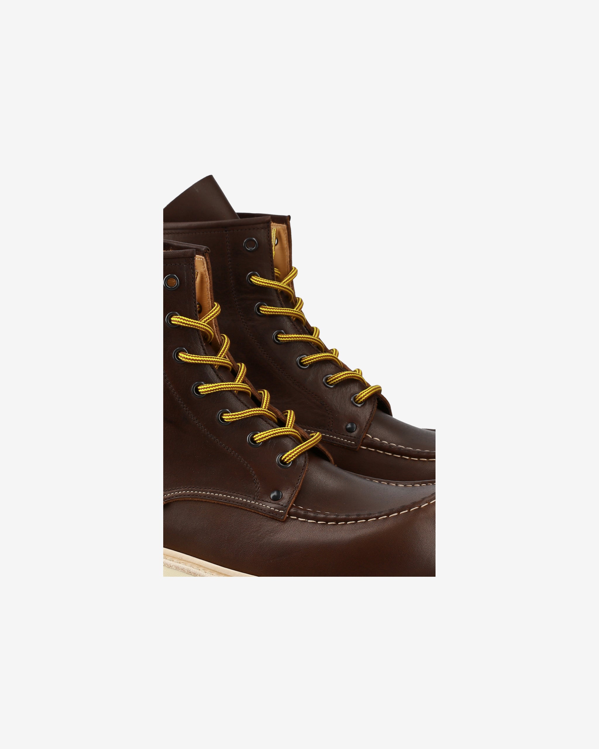 La nostra interpretazione del mitico scarponcino Red Wing si distingue per l’artigianalità e l’equilibrio tra tradizione e innovazione. Proposto in pelle di vitello testa di moro, presenta una robusta costruzione Goodyear Welted abbinata a una suola Wearlight in EVA color panna con intersuola in micro tono su tono. Il comfort è assicurato dal fusbet in lattice di gomma, mentre gli occhielli in metallo ne rafforzano l’estetica rugged.