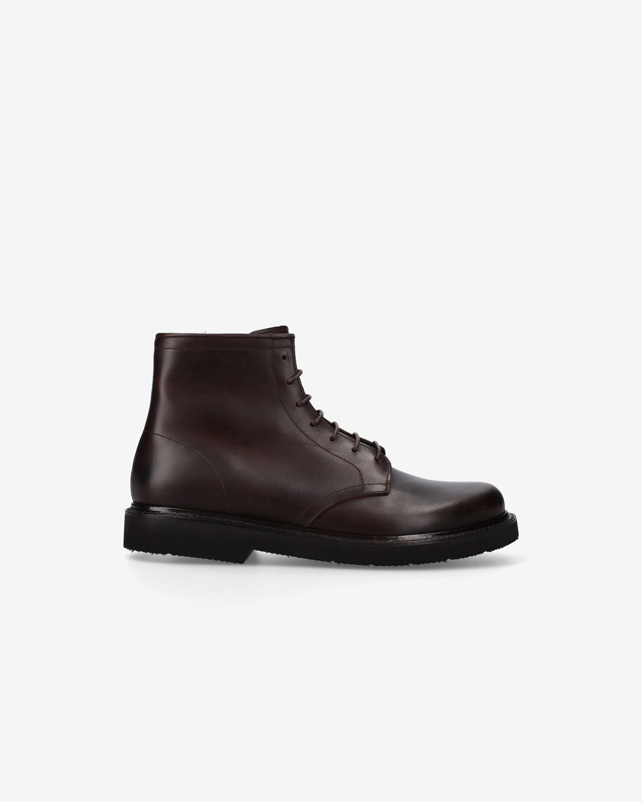 Polacchini dallo stile raffinato e intramontabile, realizzati in vitello testa di moro con finiture curate nei minimi dettagli. I lacci in cotone cerato donano un tocco elegante e garantiscono una calzata sicura. Il sottopiede in cuoio assicura traspirabilità, mentre la combinazione di fondo in EVA e fusbet in Evalux offre leggerezza e comfort per un uso prolungato. Ideale per un look urbano sofisticato.