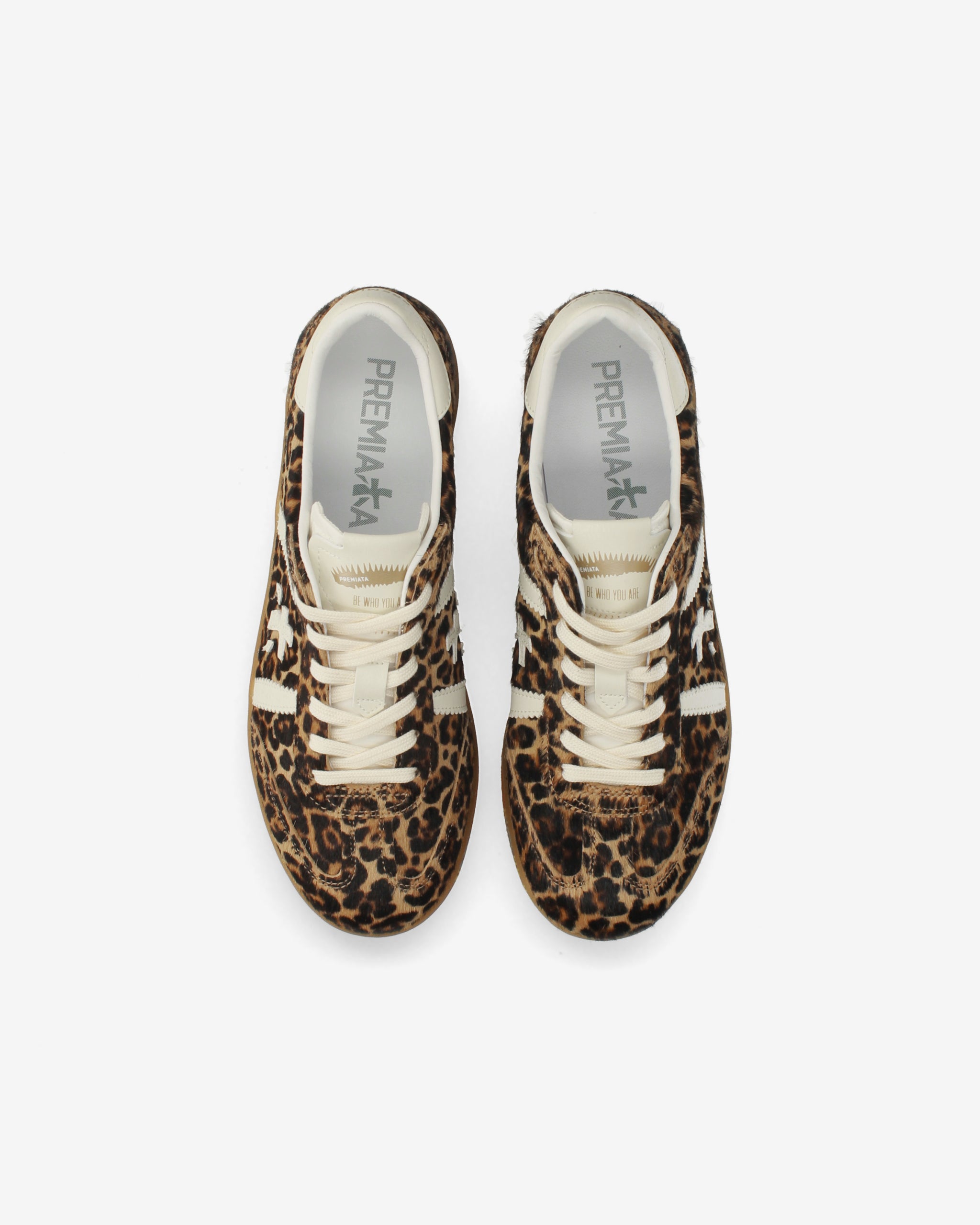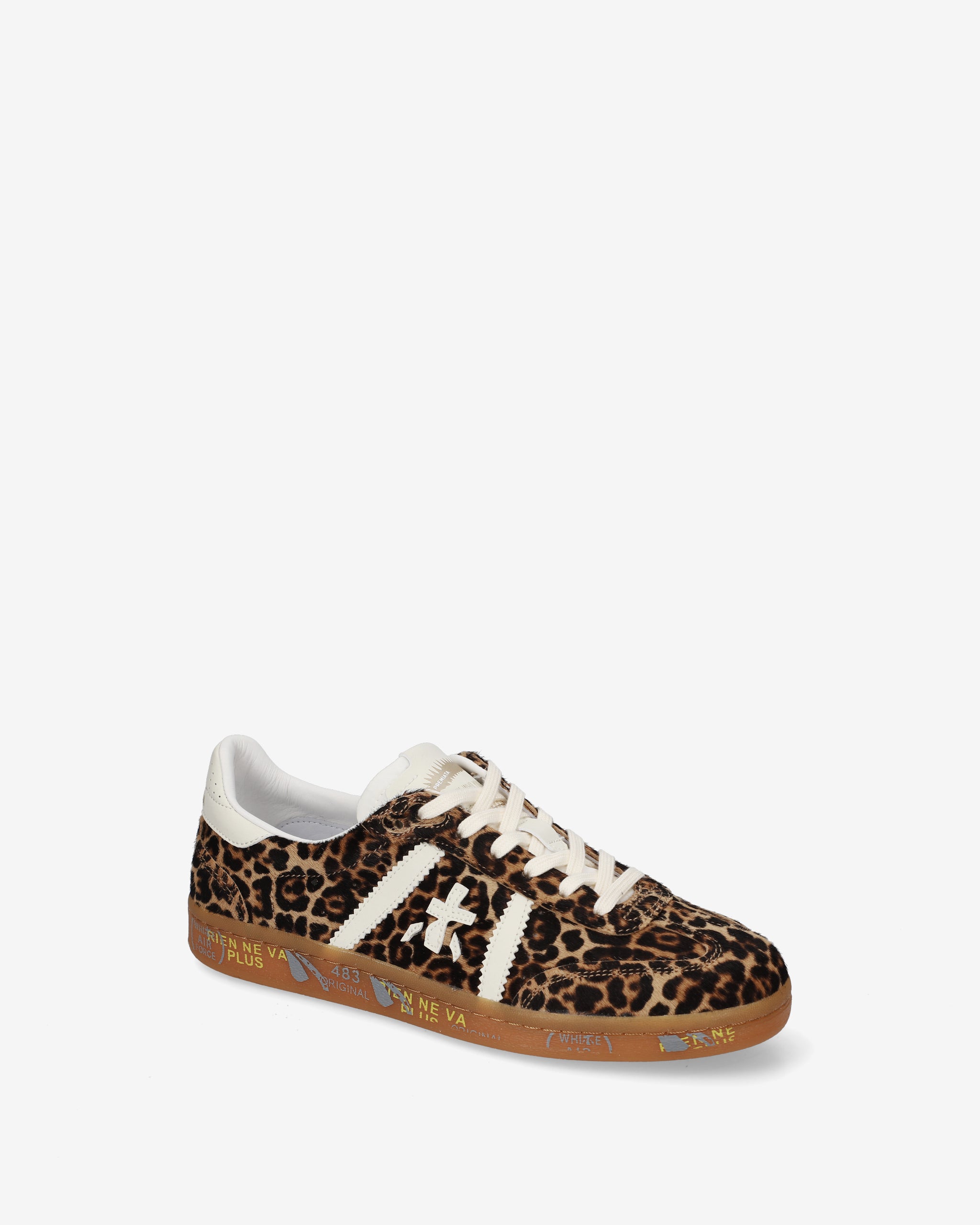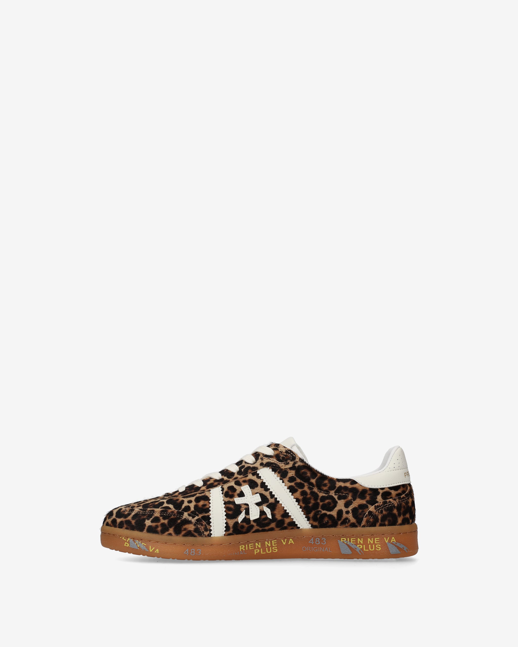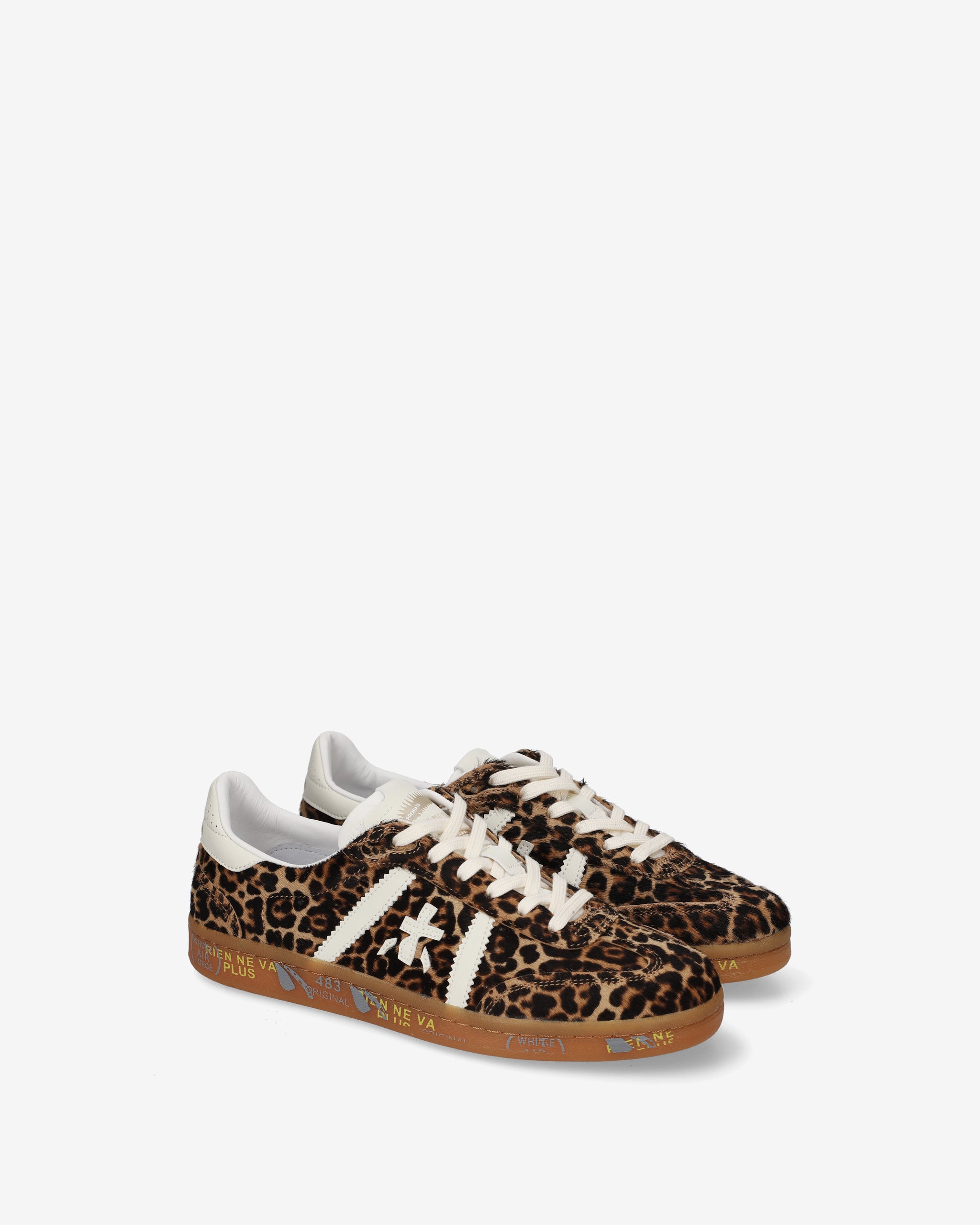 Bonnie con tomaia in animalier, dettagli bianchi a contrasto e suola gum. Un mix di colori eccentrici per un’estetica nuova e sofisticata.