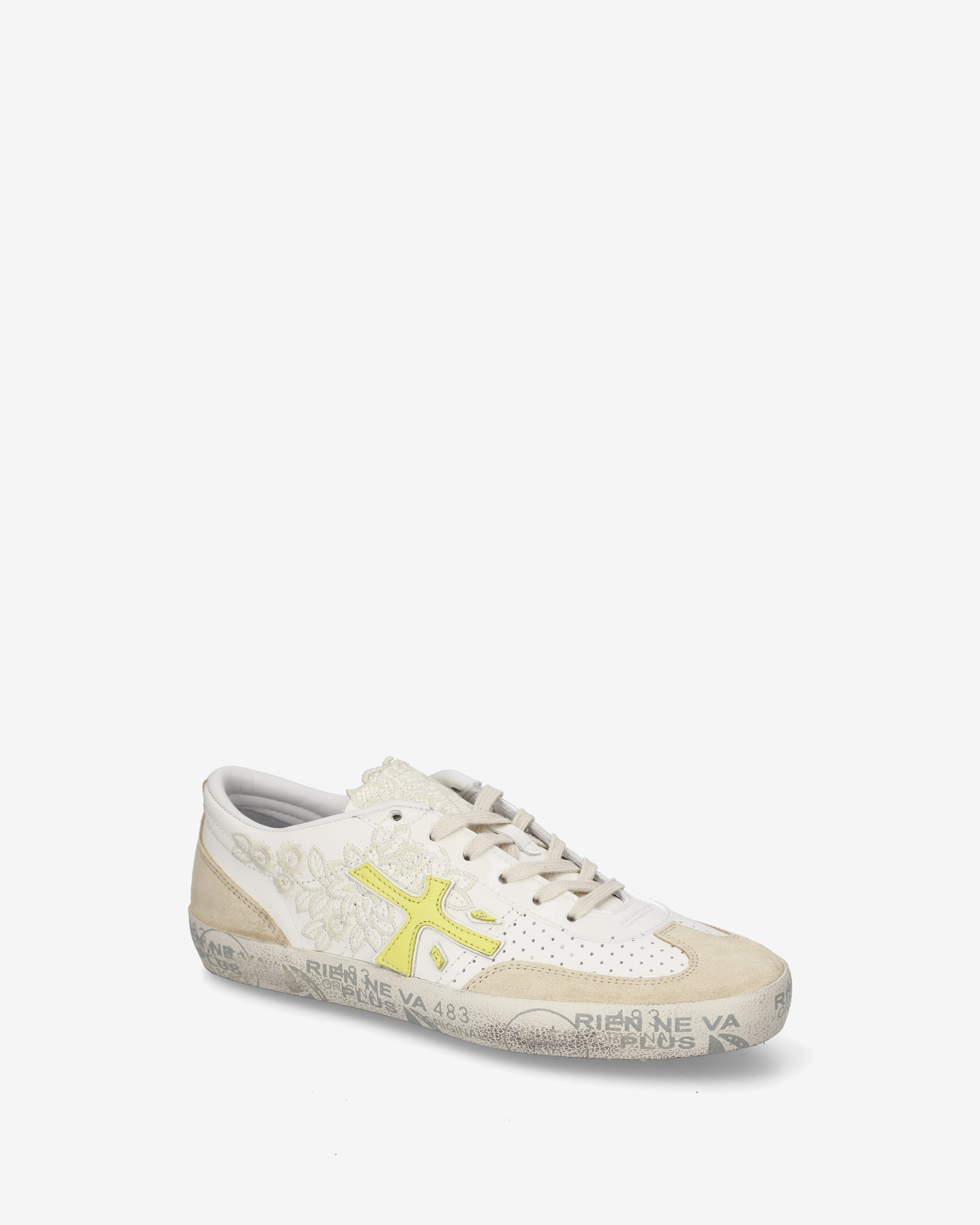 Una sneaker dal carattere deciso, che mescola richiami retro e dettagli street. La tomaia in pelle con inserti in camoscio dona contrasto e personalità, mentre la suola logata aggiunge un segno grafico distintivo. Ideale per chi cerca uno stile urbano con un tocco originale.