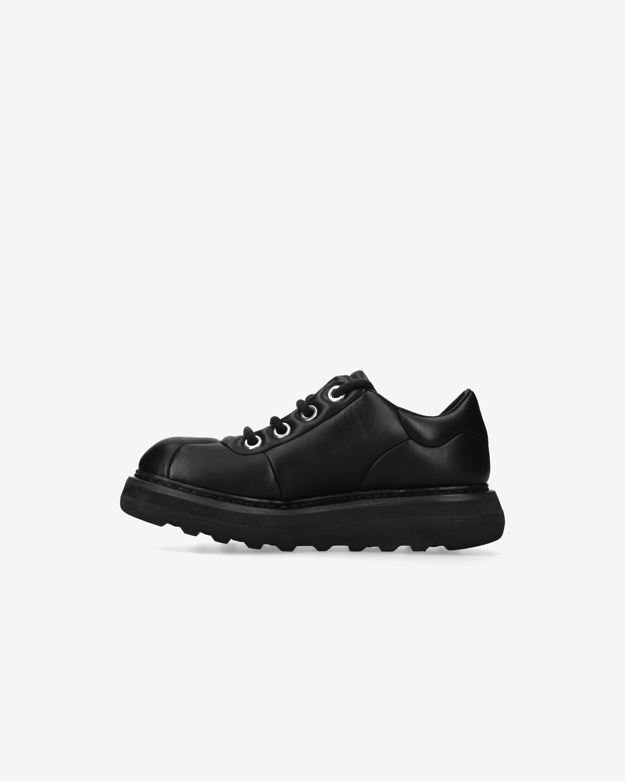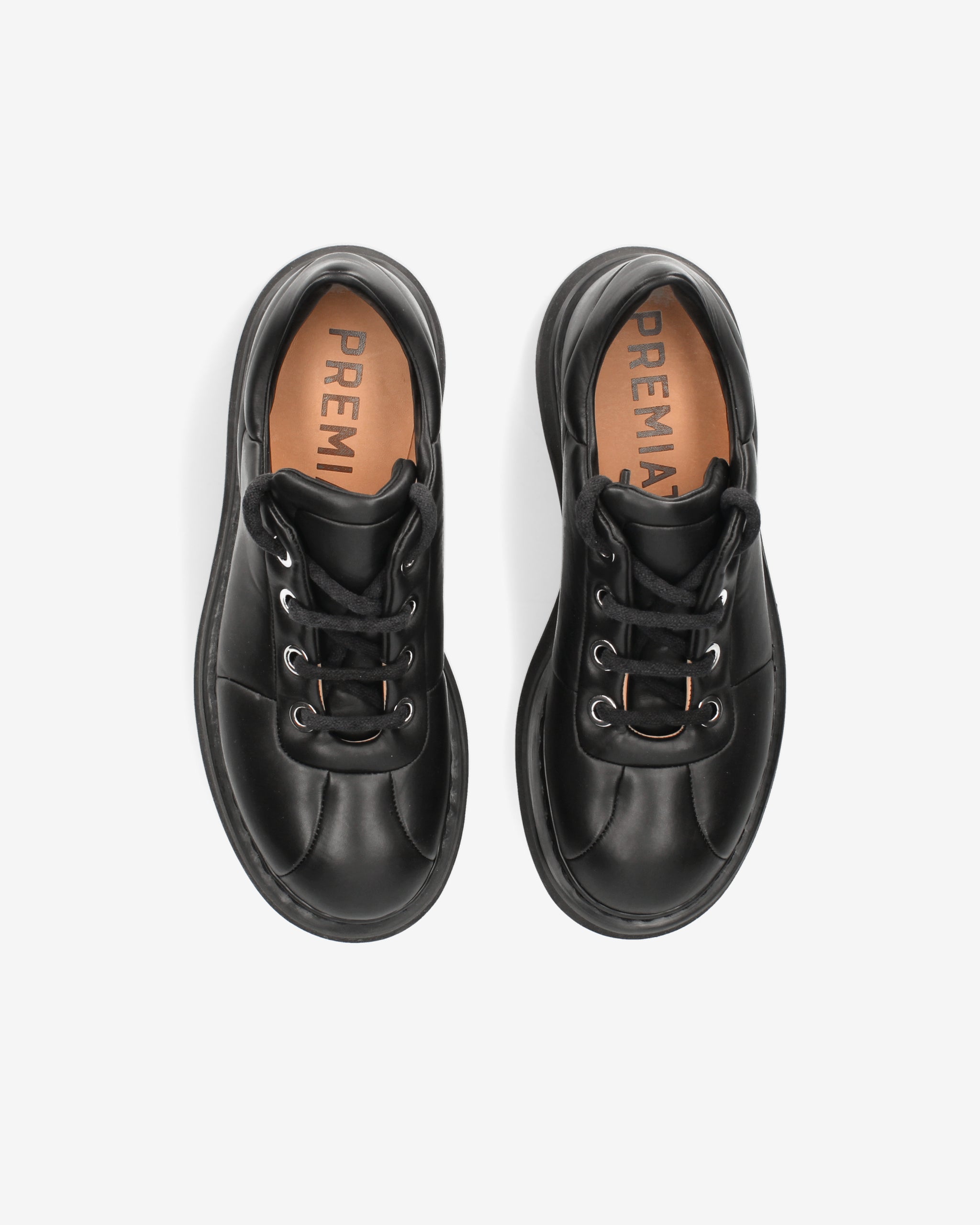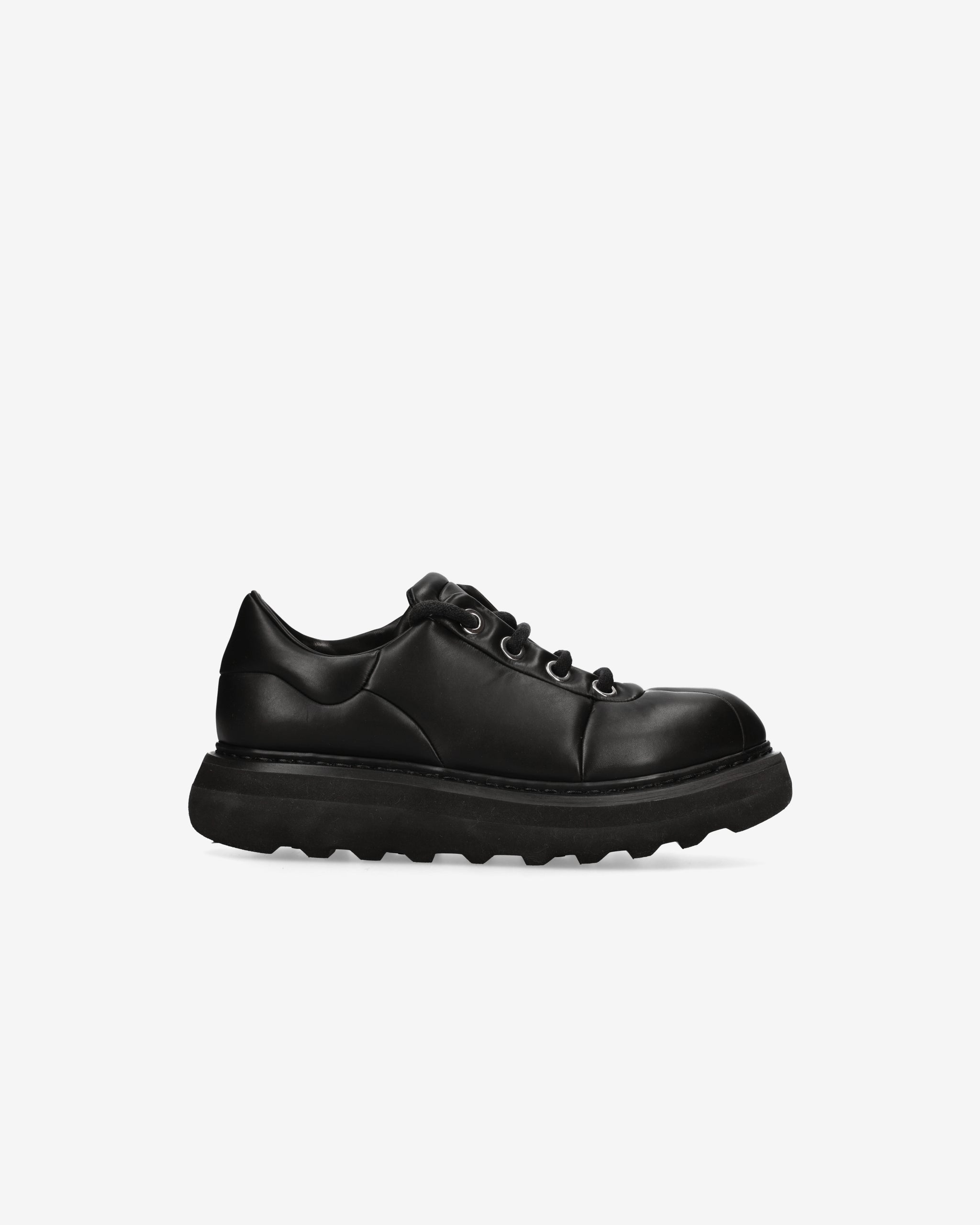 Premiata reinterpreta il classico derby in un design voluminoso e avanguardista, enfatizzato dalla spessa suola Vibram e dalla tomaia in pelle, che trasla questo modello in un nuovo immaginario con un design che ricorda a pieno il mondo Icon di Premiata.