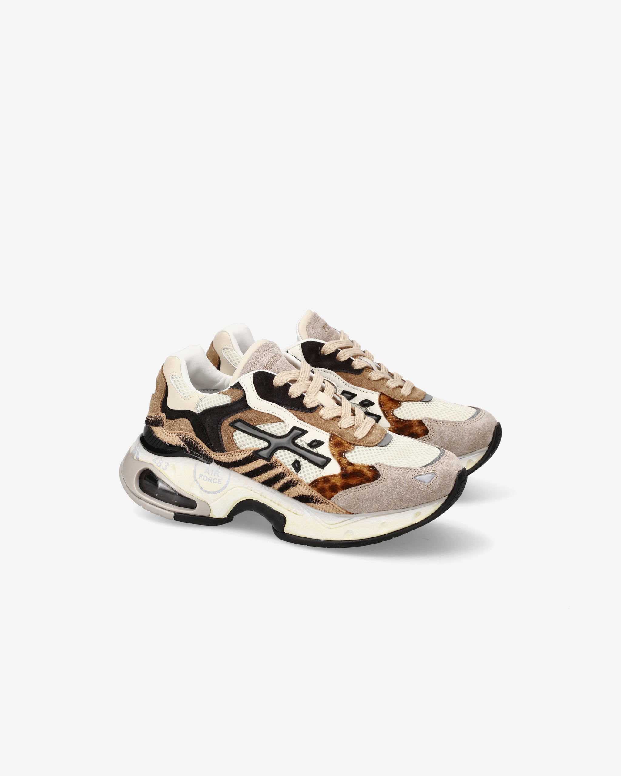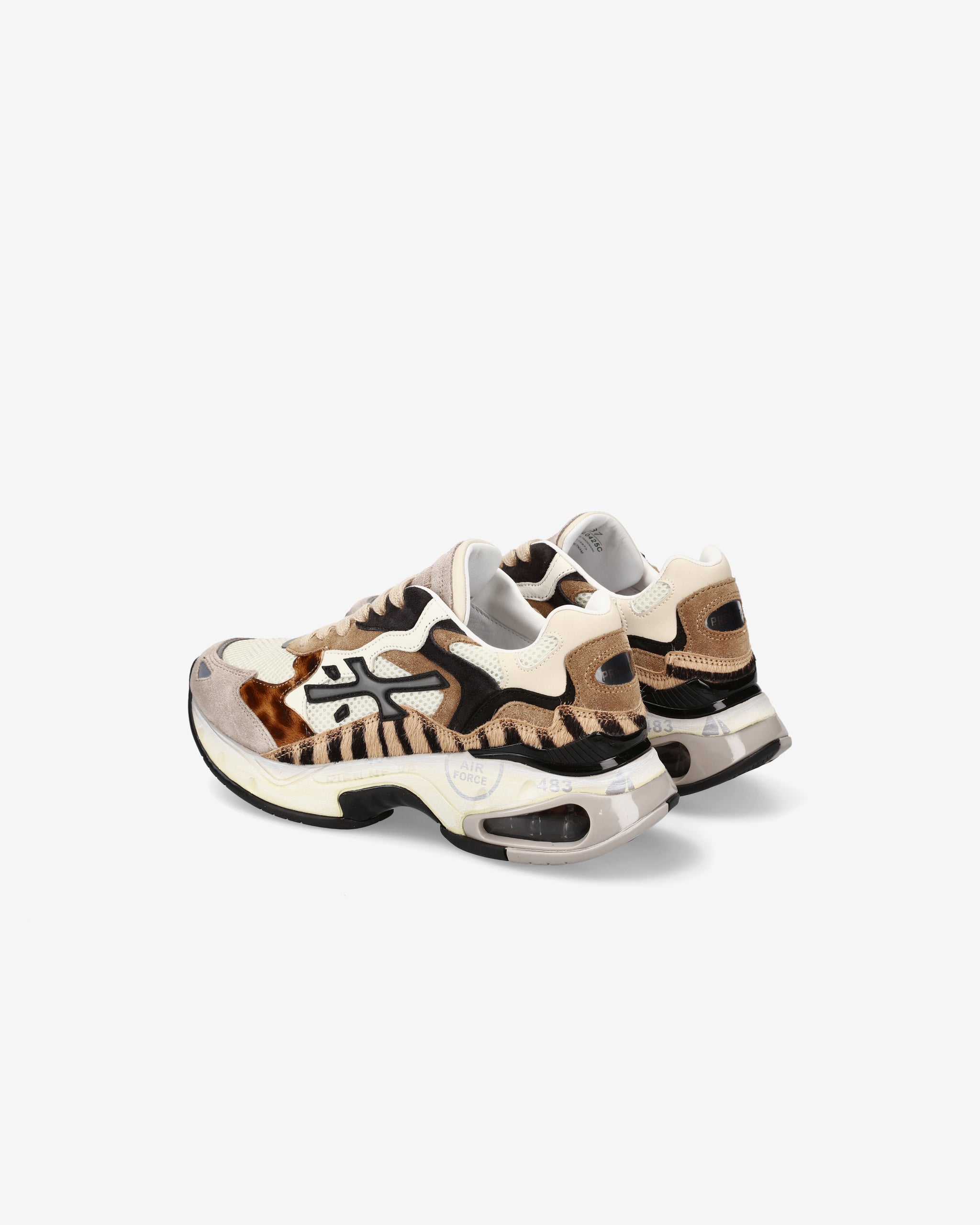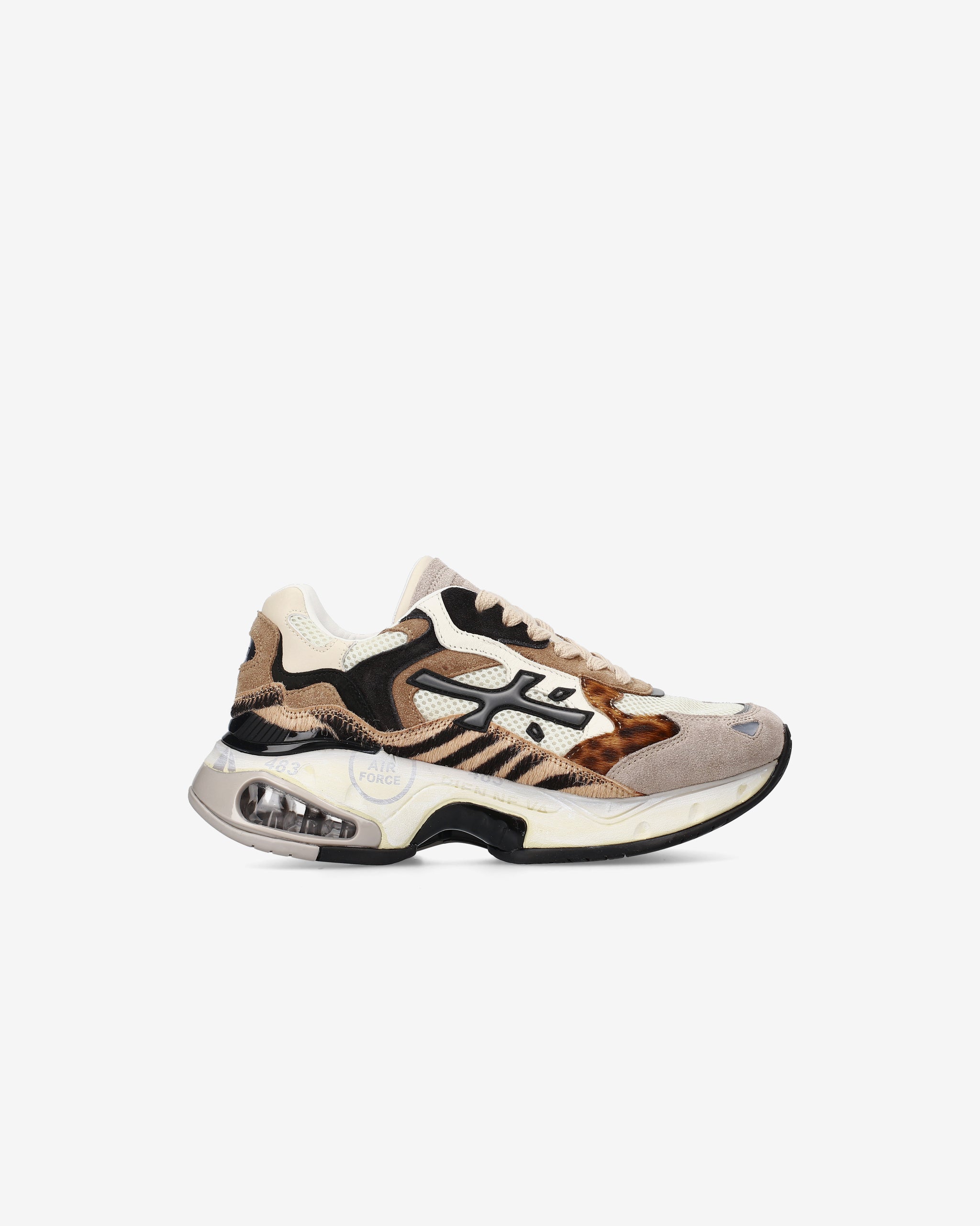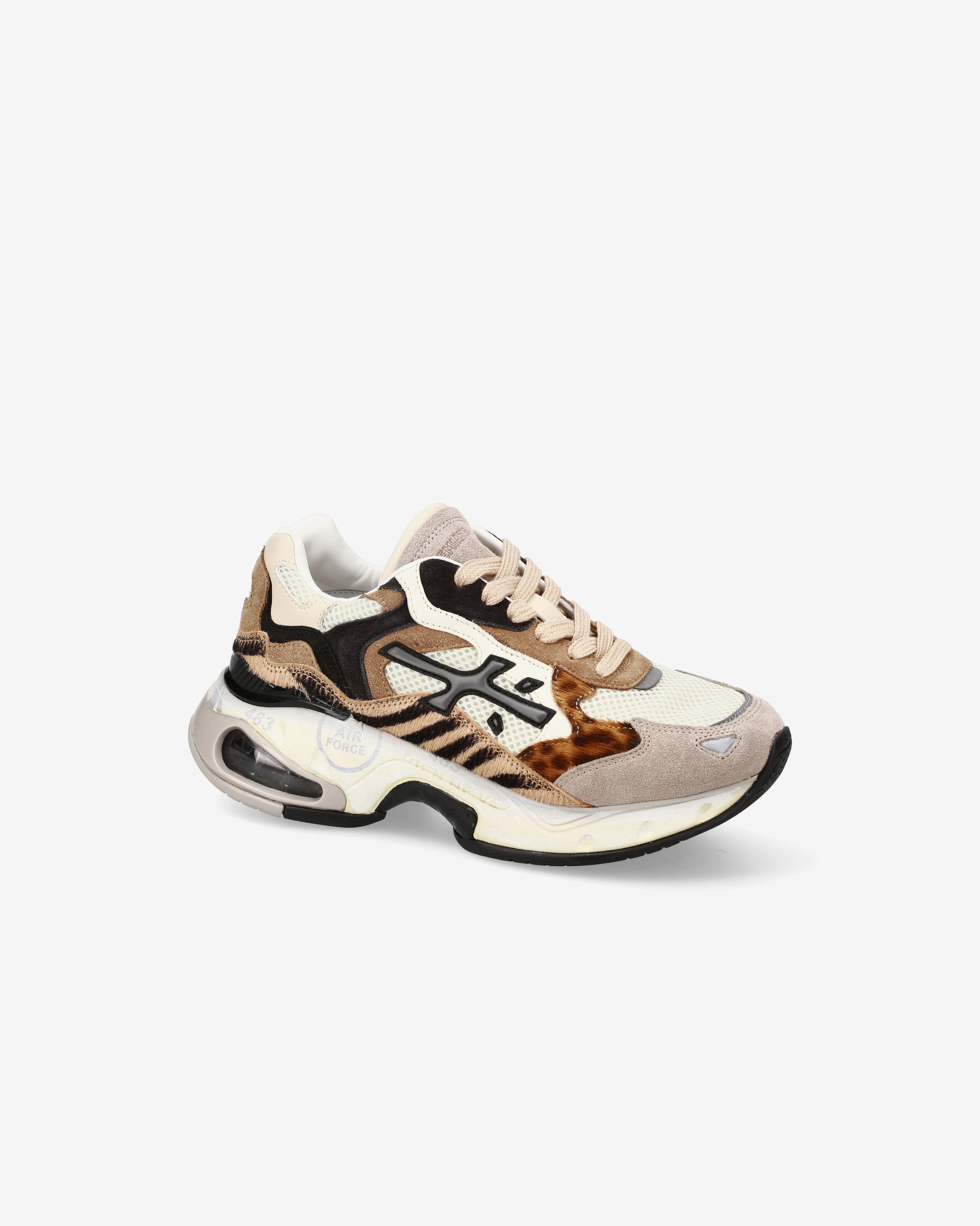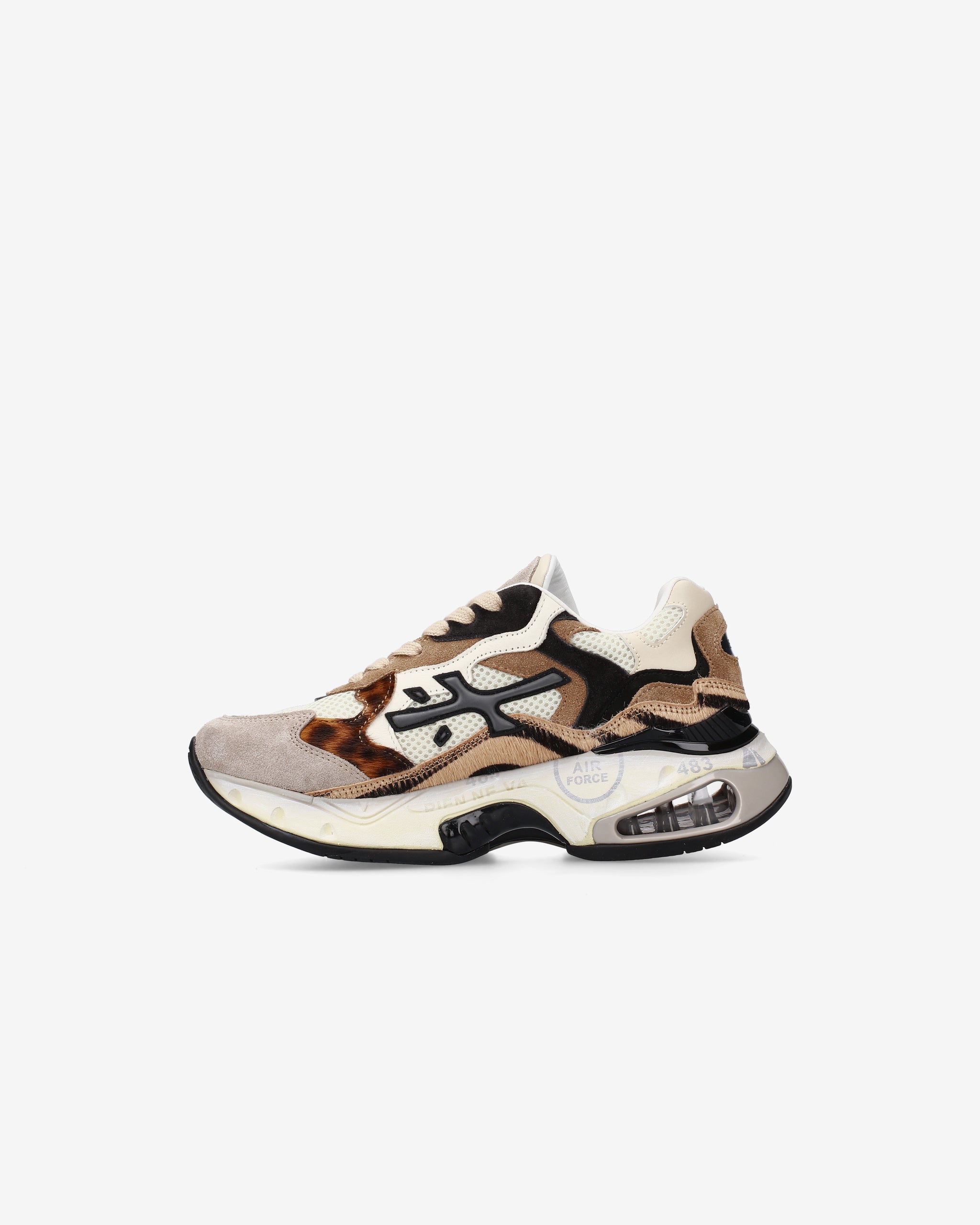 Sneaker Sharky realizzata in materiali innovativi e cromatismi ricercati. I colori e le linee sinuose ricordano le colline coltivate e i campi in fiore del paesaggio rurale delle Marche, la regione che ospita l’headquarter di Premiata. La complessità del fondo di questa sneaker la rende sofisticata e particolare.