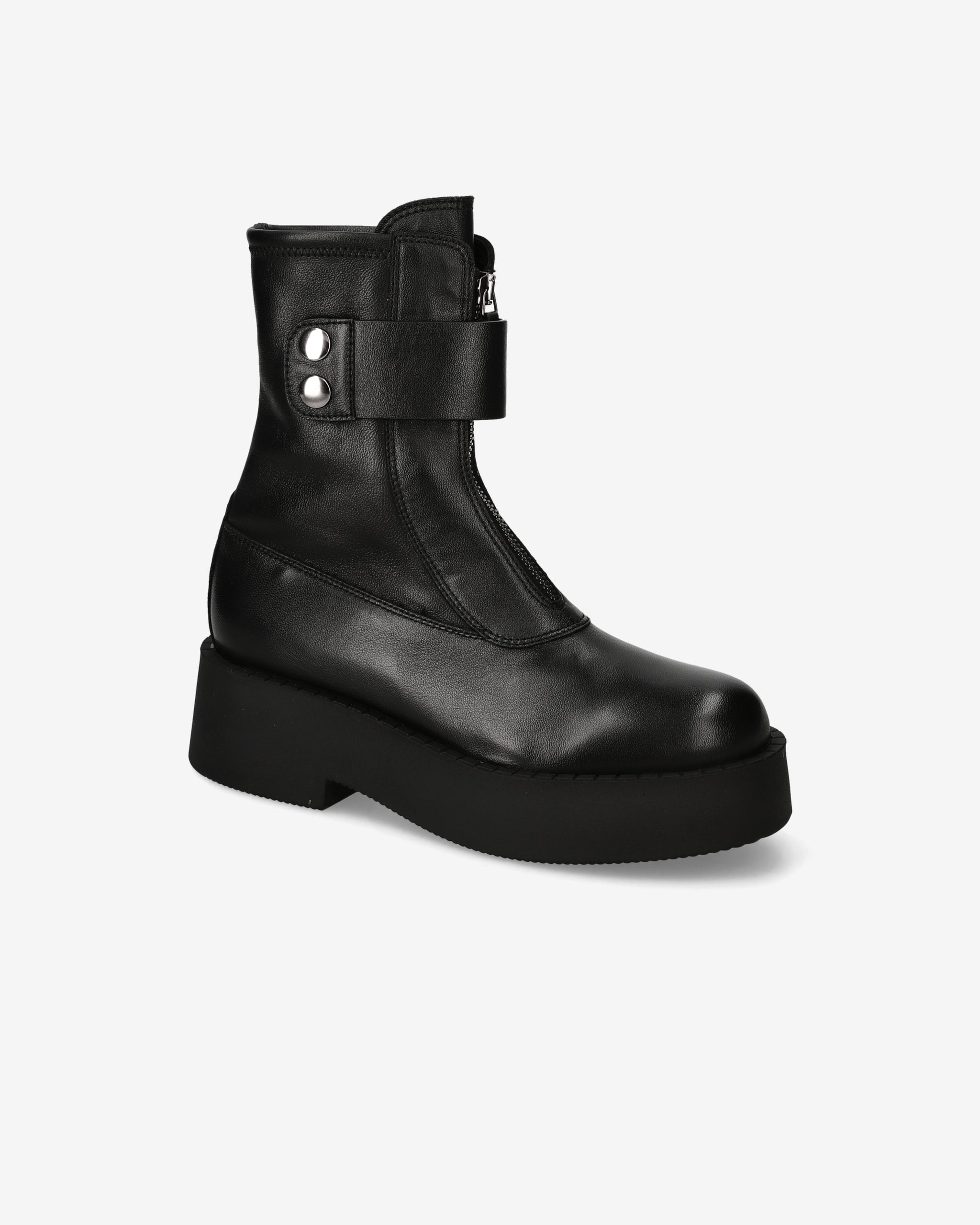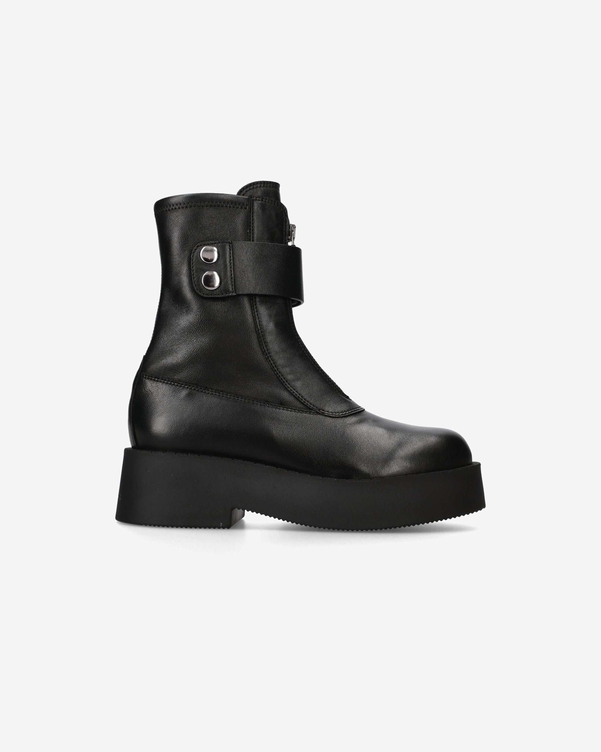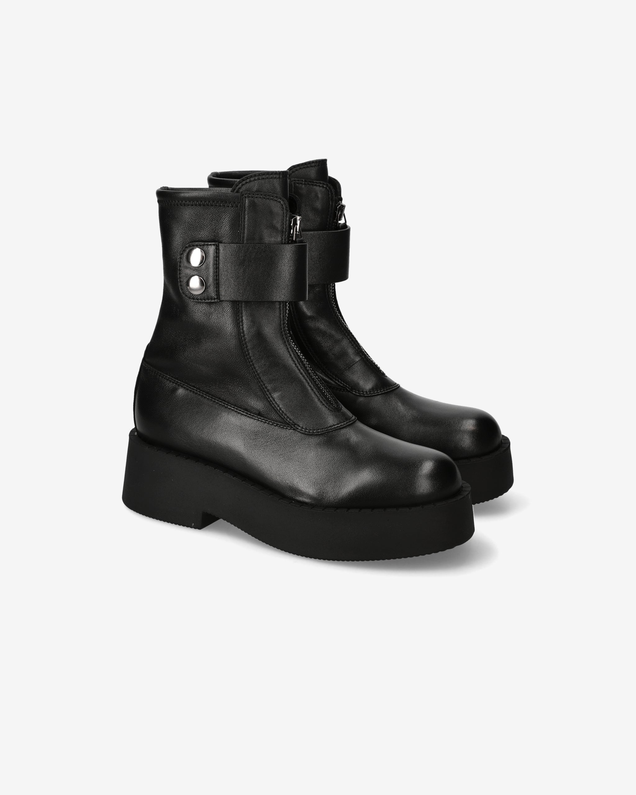 Lo stile Rock è da sempre fra i capisaldi del DNA Premiata. Perfettamente espresso in questi stivaletti in nappa, un materiale che caratterizza la collezione donna del brand e la contraddistingue. I dettagli in vitello, che impreziosiscono la creazione, fanno da trait d'union con il resto della collezione.