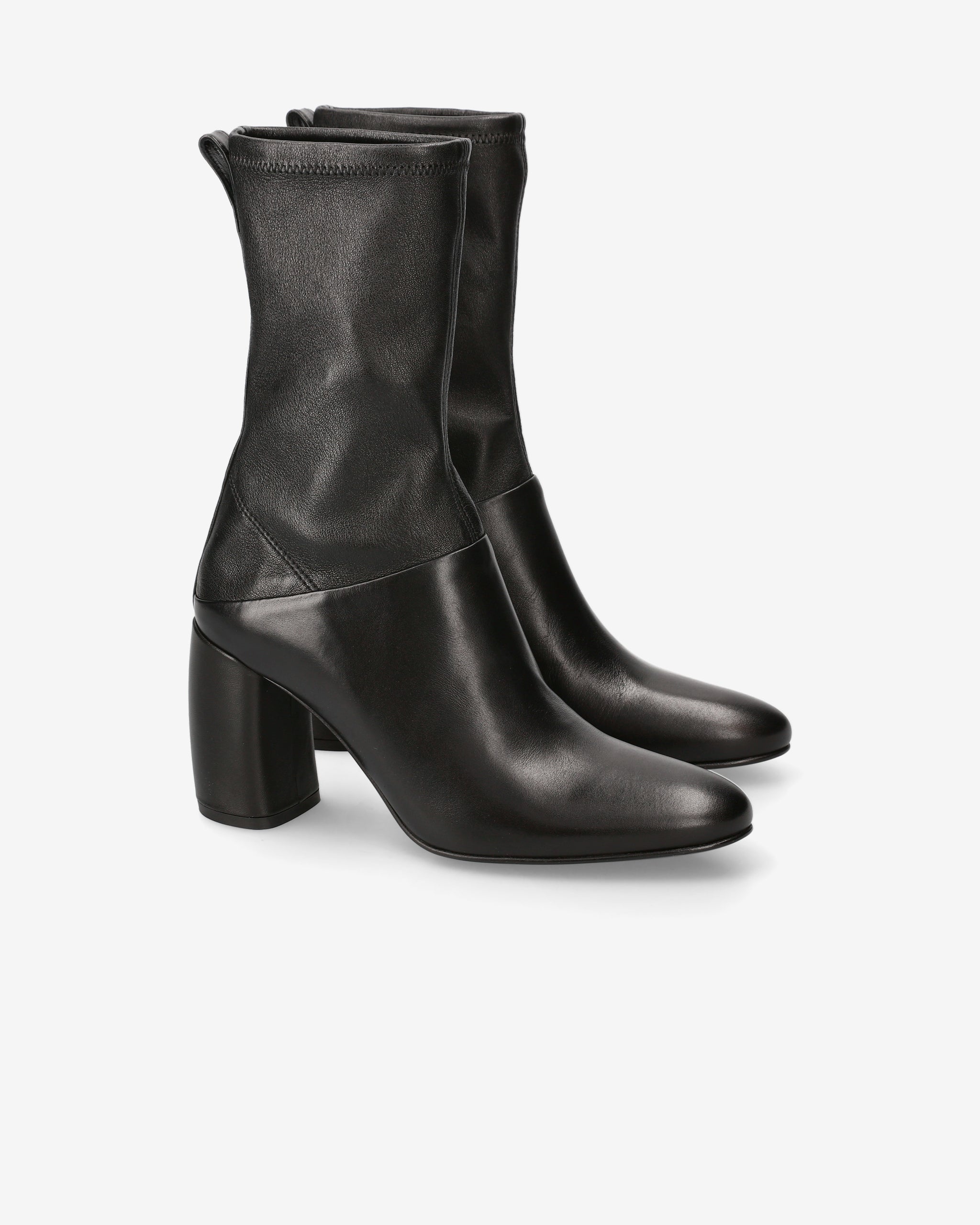 Stivaletti da donna dal design essenziale e moderno, ideali per un utilizzo quotidiano. Realizzati in pelle nera ed elasticizzata, offrono una calzata comoda e un aspetto pulito e versatile.