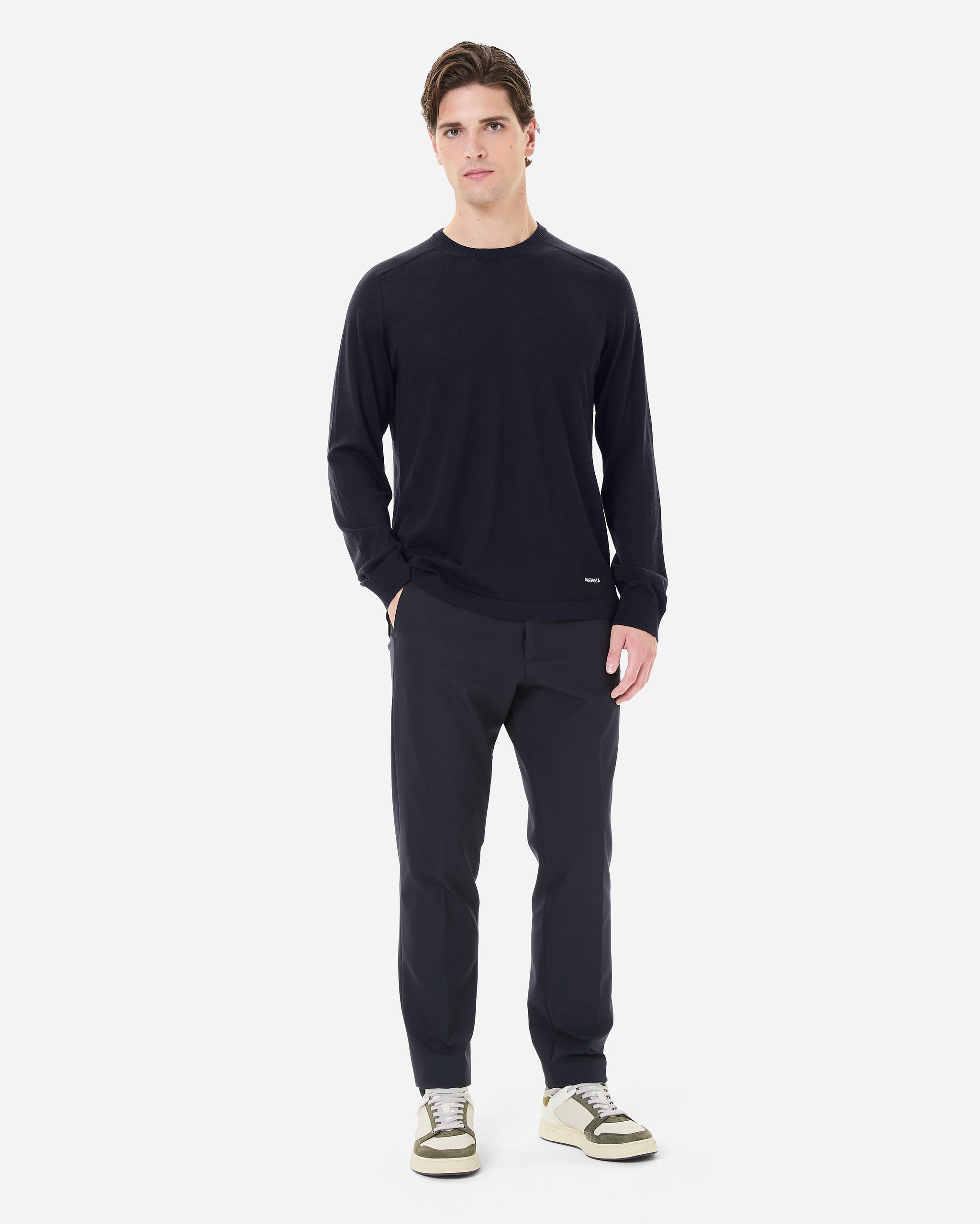 • Fondo tubolare sfalsato, polso con costa 2X1 e collo doppio 2X1