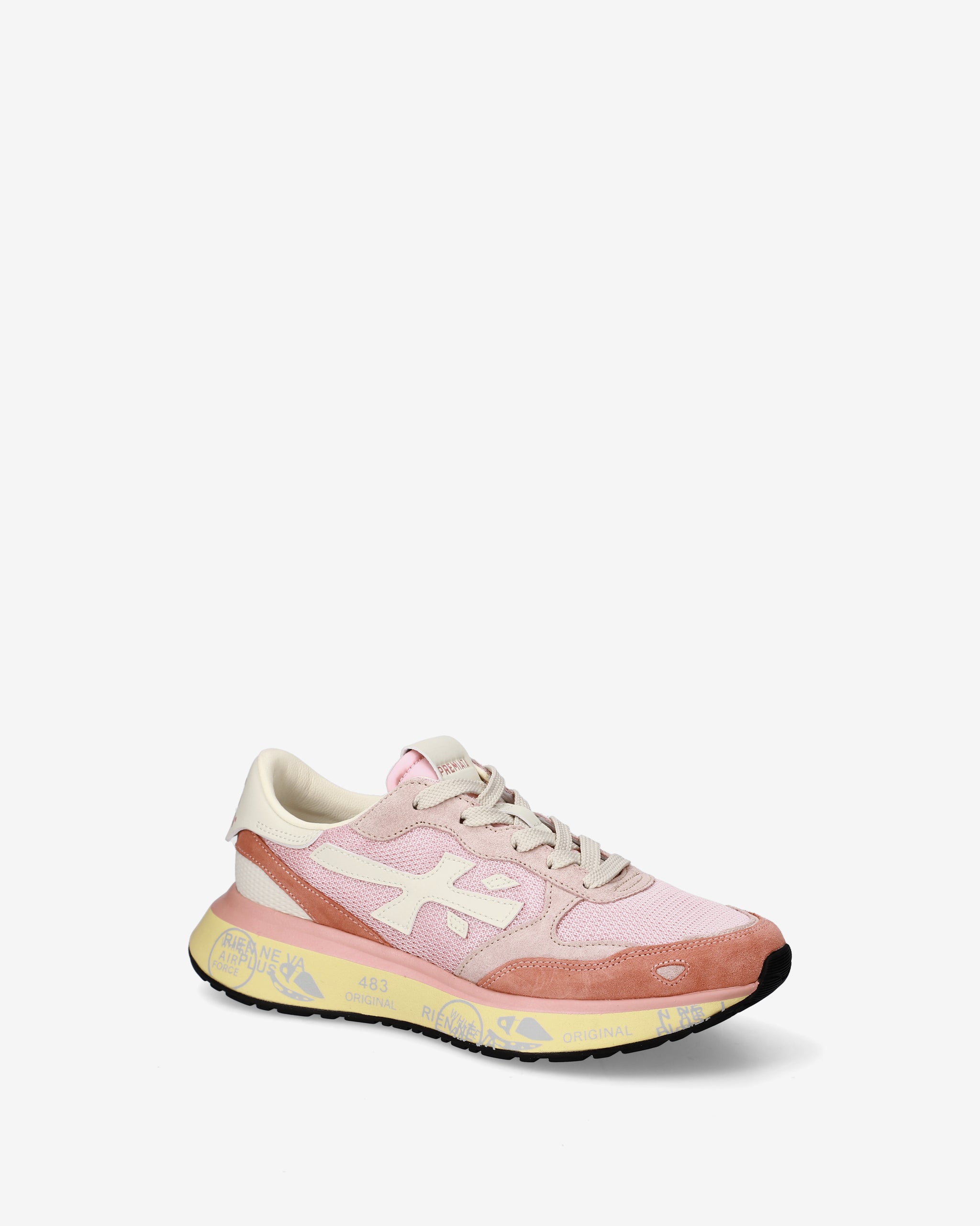 Stile e funzionalità si fondono in una sneaker rétro running rivisitata in chiave moderna. Realizzata con materiali di alta qualità, combina suede, pelle e tessuto per un look distintivo. La suola, arricchita dagli iconici dettagli stile Premiata, esalta l'identità urban e casual-chic.