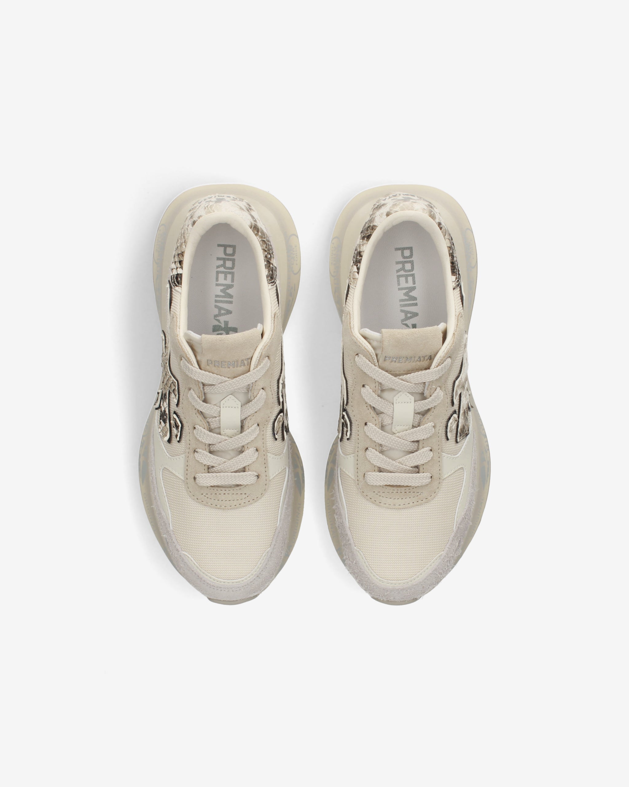 Stile e funzionalità si fondono in una sneaker rétro running rivisitata in chiave moderna. Realizzata con materiali di alta qualità, combina suede, pelle e tessuto per un look distintivo. La suola, arricchita dagli iconici dettagli stile Premiata, esalta l'identità urban e casual-chic.