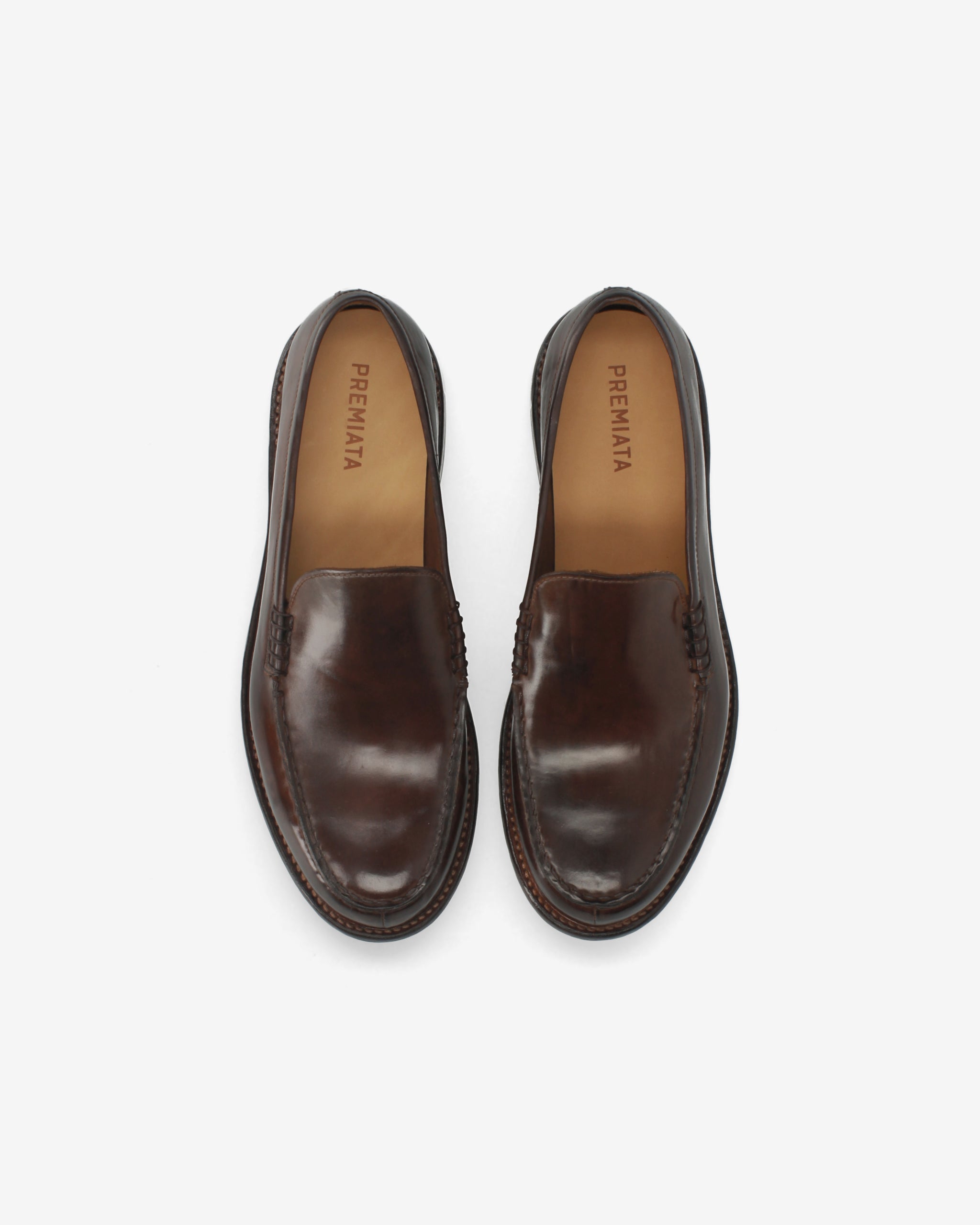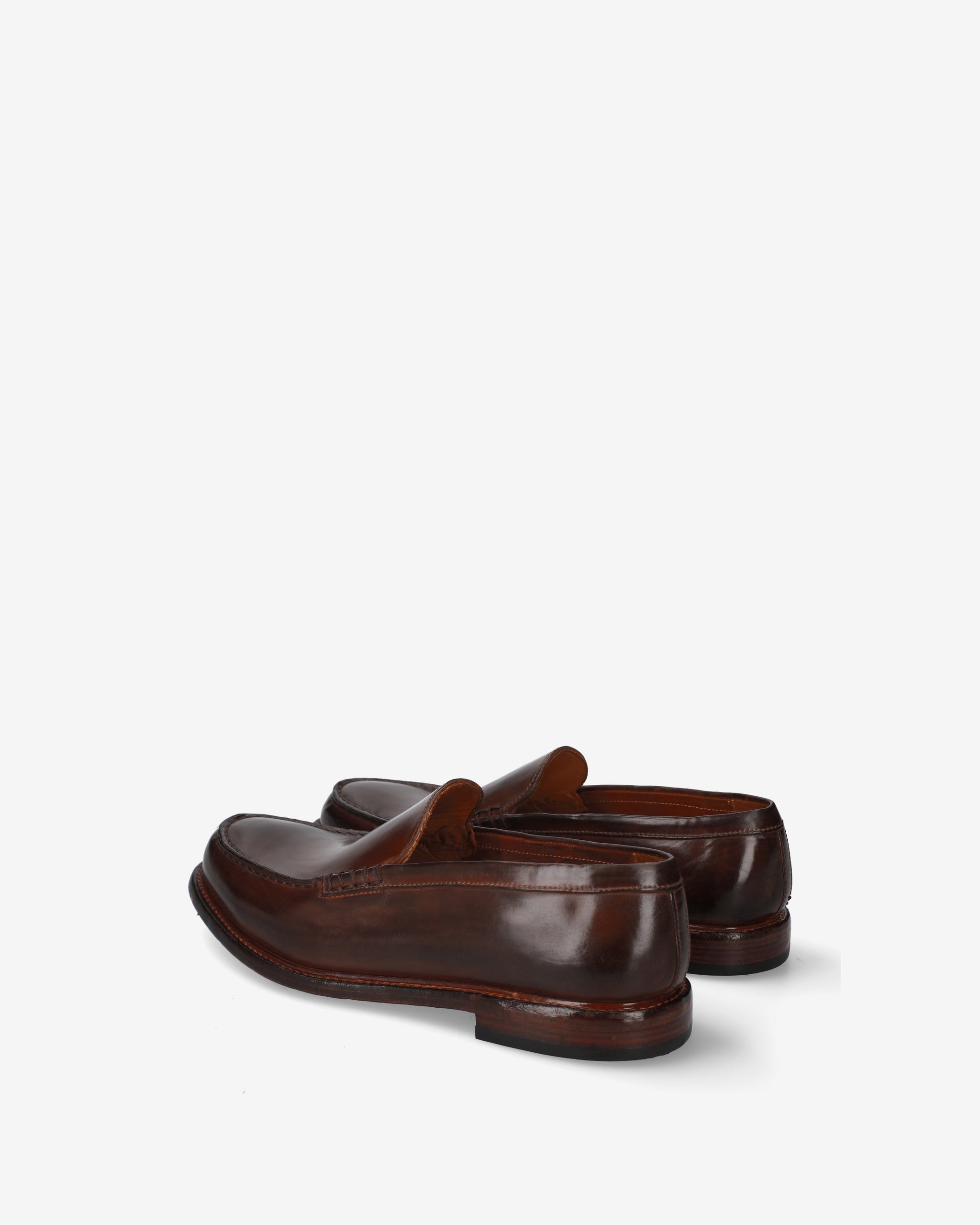 Un mocassino dal carattere deciso e dalla struttura importante, che reinterpreta il design classico attraverso una costruzione artigianale di alta gamma. La tonalità calda e le sfumature della pelle ne esaltano l'estetica vintage e sofisticata