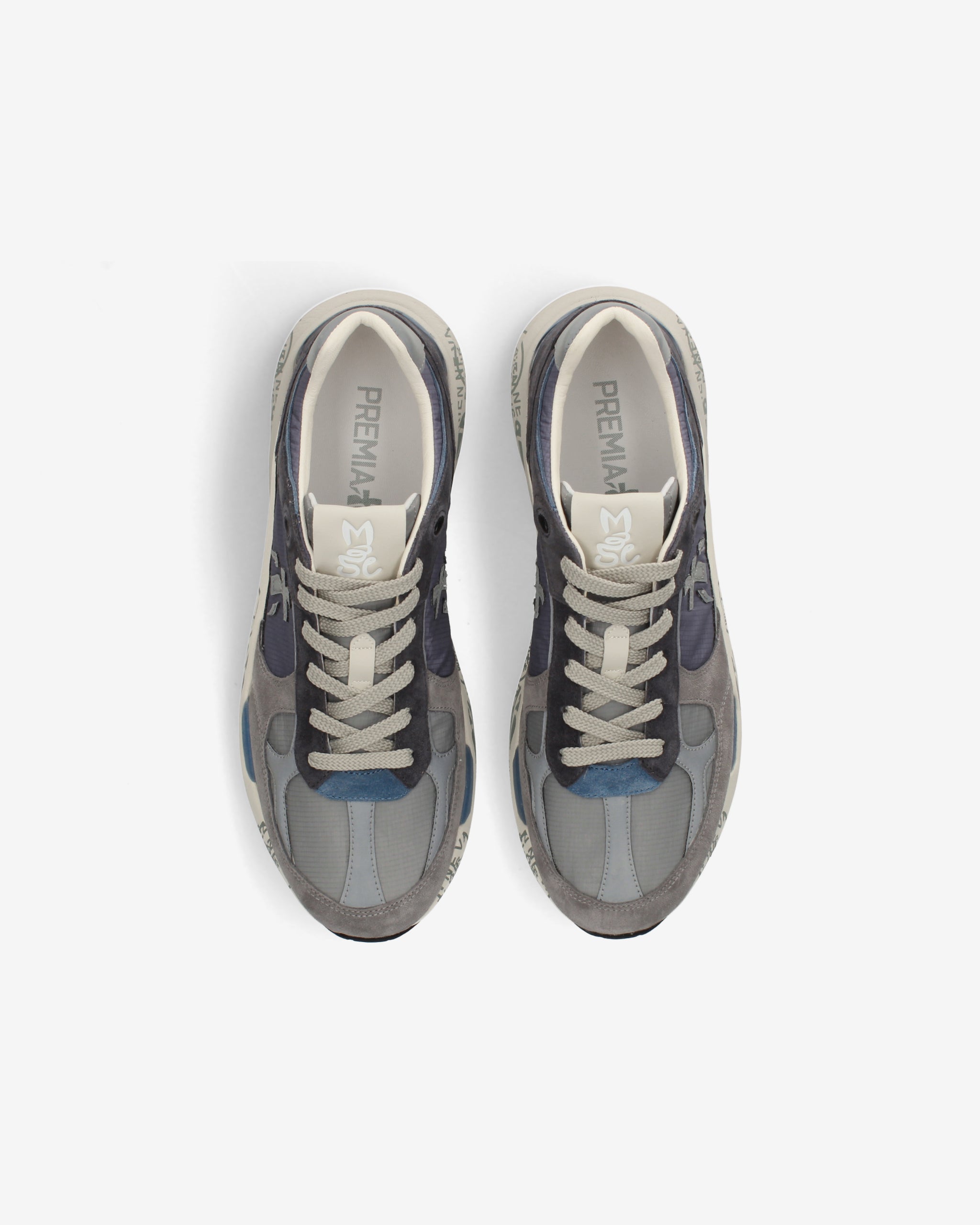 Risentono del mood nineties, combinano una silhouette moderna con materiali pregiati e dettagli vivaci. Fedeli al design Premiata, ne conservano tutti gli elementi chiave: il logo che decora i laterali, la scritta MASE che si evince sull’etichetta, trattamenti e dettagli a contrasto che ne risaltano la visibilità.