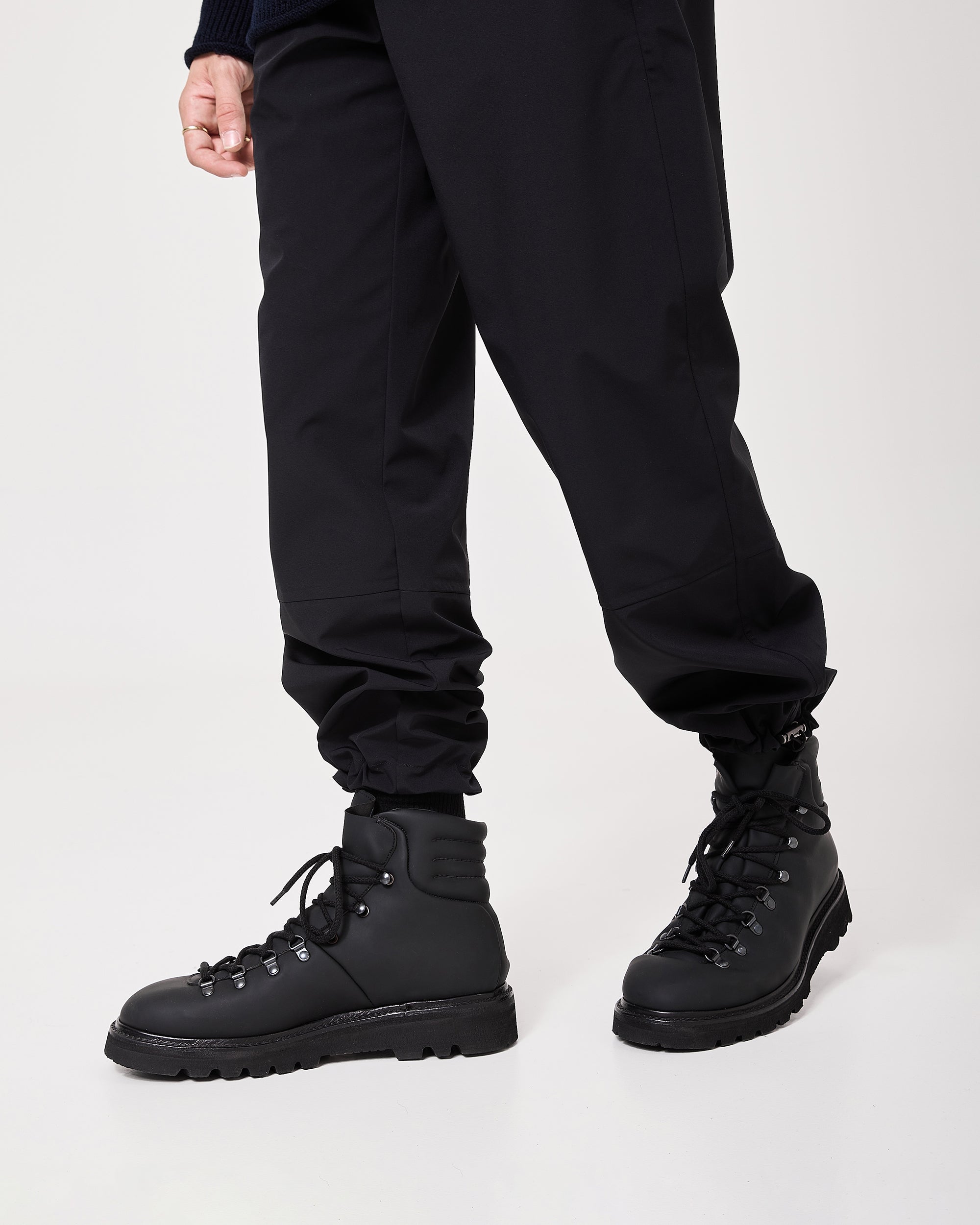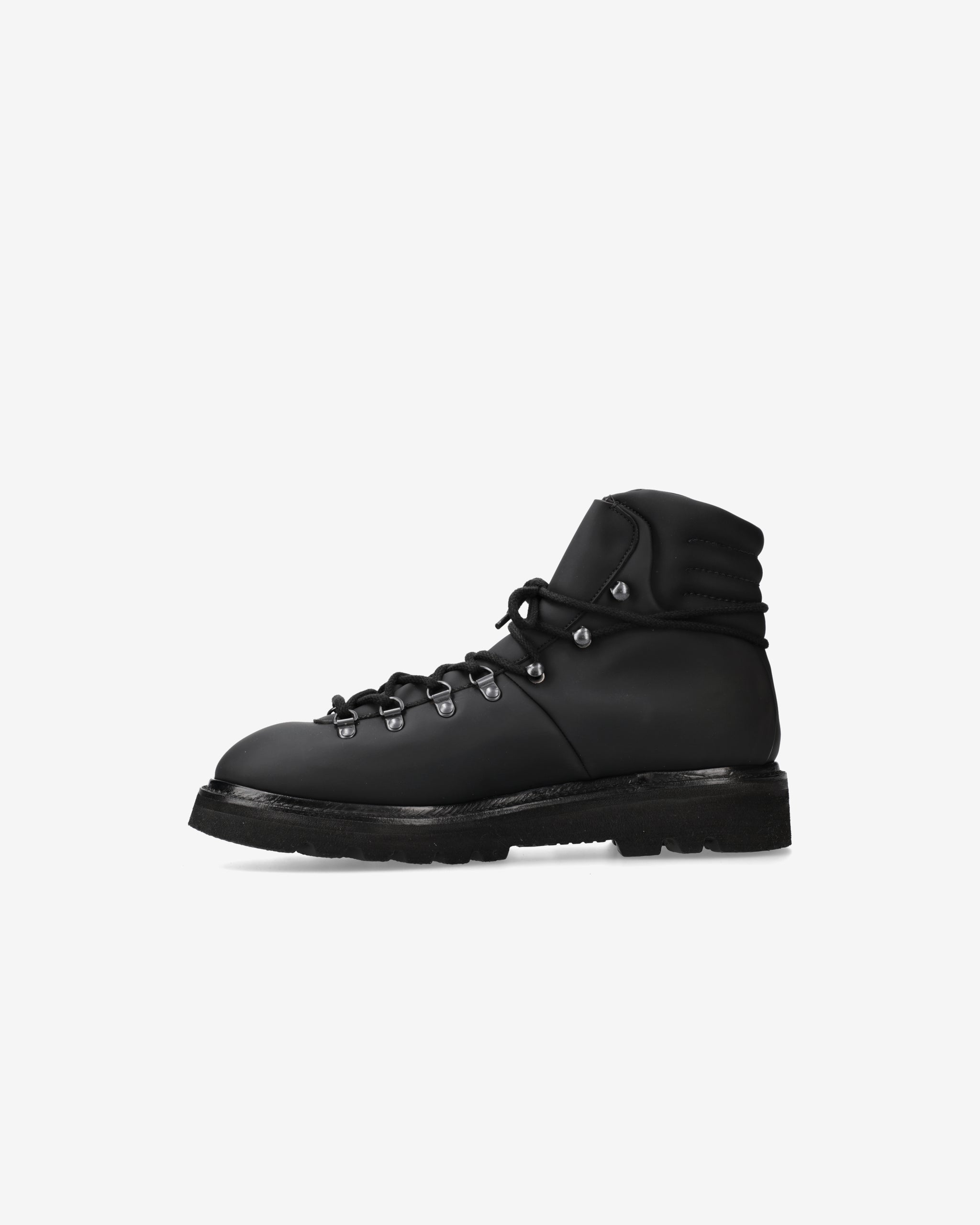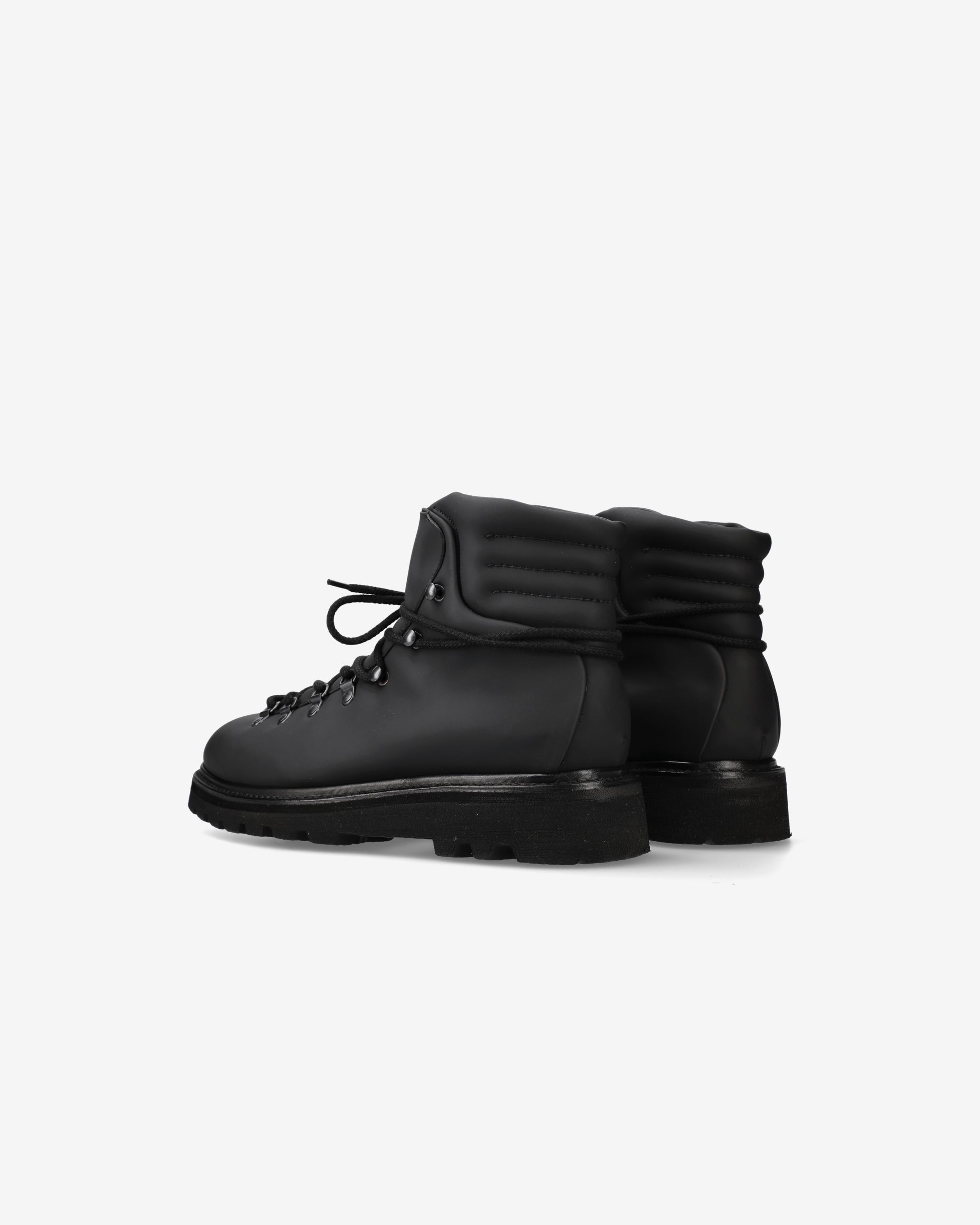 Questi stivaletti incarnano l'anima ibrida di Premiata. Realizzati in custo, un tessuto industriale da tempo legato al marchio, si caratterizzano per il mix di materiali, lo stile e per il design che ricorda quello di una pedula da montagna con fondo in Vibram.