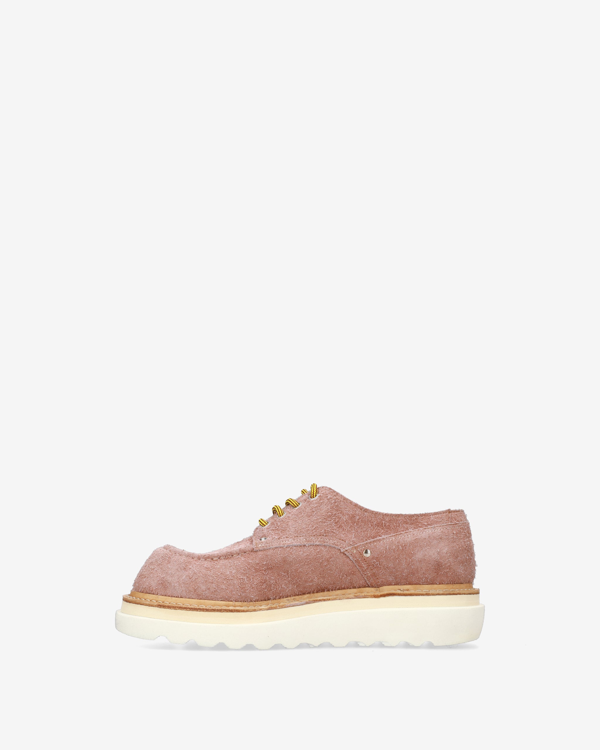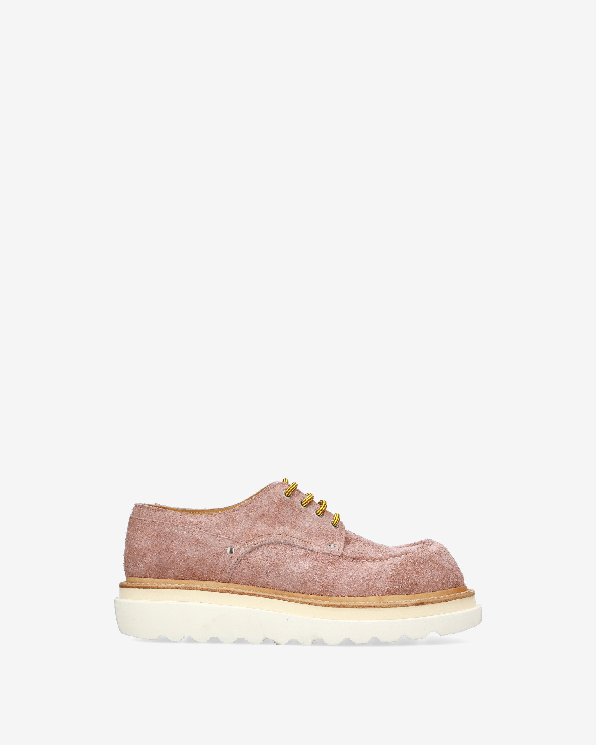 Una calzatura stringata dal design audace e materico, che reinterpreta la classica Derby attraverso volumi generosi e un contrasto cromatico di ispirazione contemporanea. La texture shaggy del materiale ne sottolinea l'estetica artigianale e non convenzionale