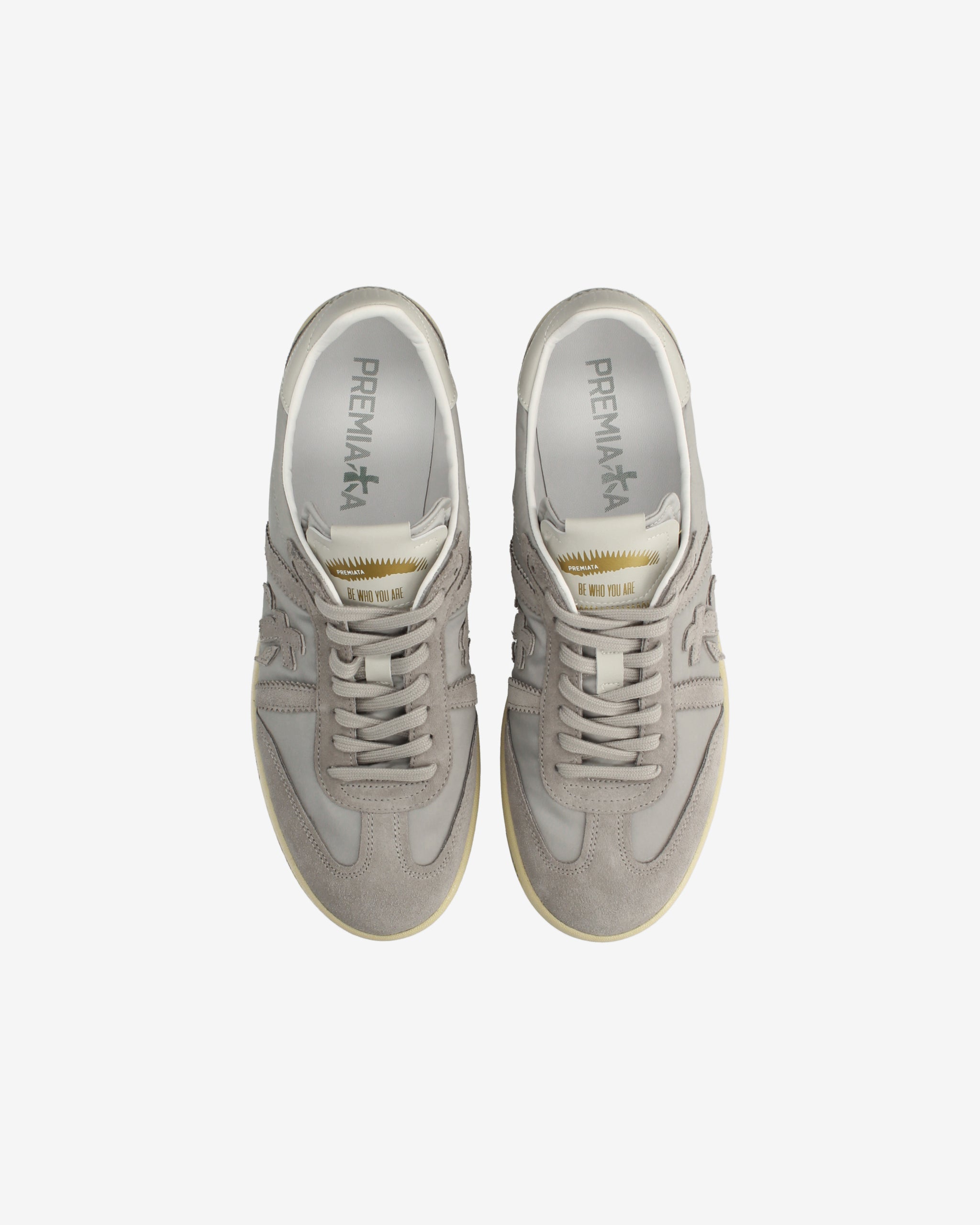 Bonnie con tomaia grigia in pelle, dallo stile sobrio e contemporaneo. Una tonalità neutra che esalta la versatilità del design.