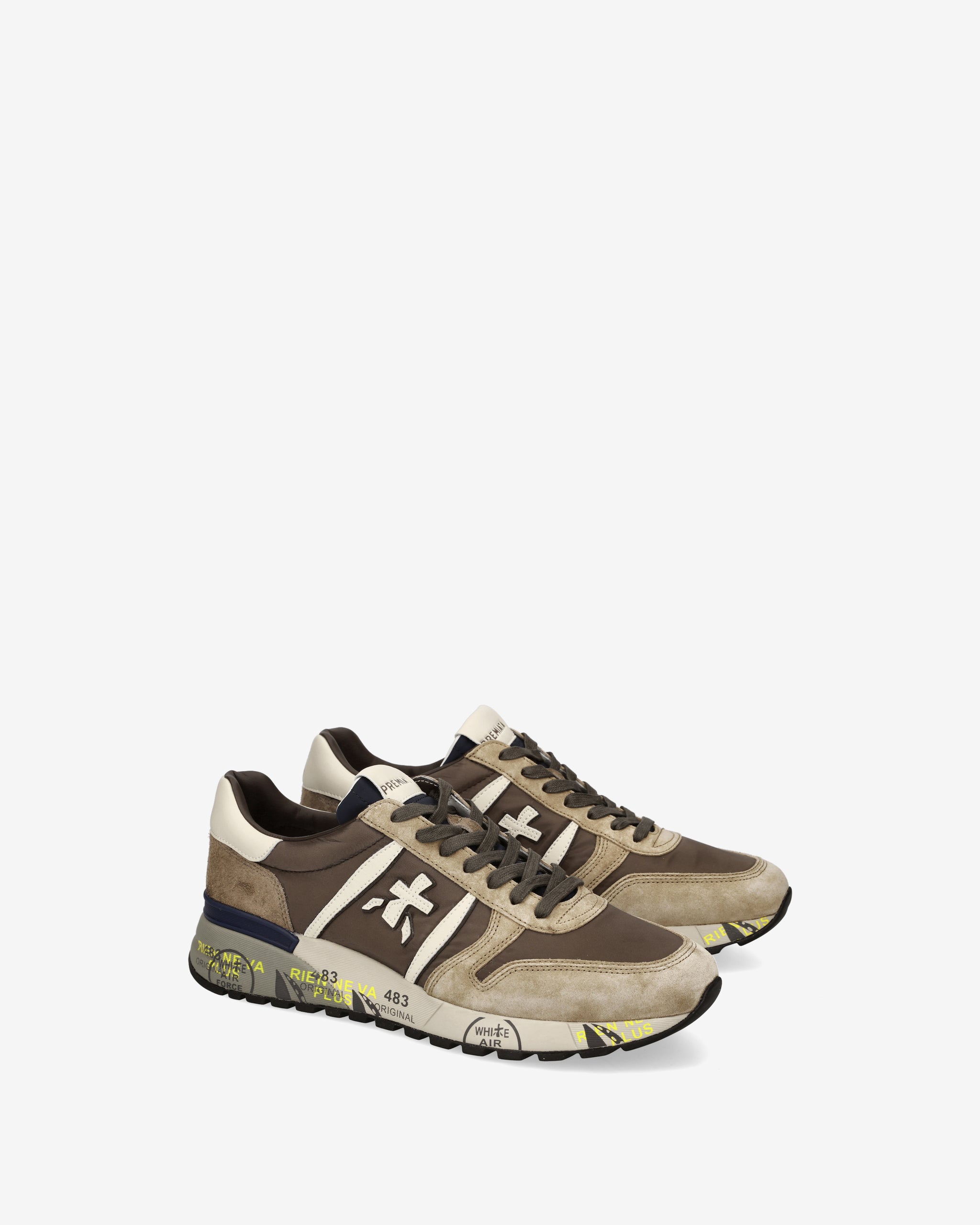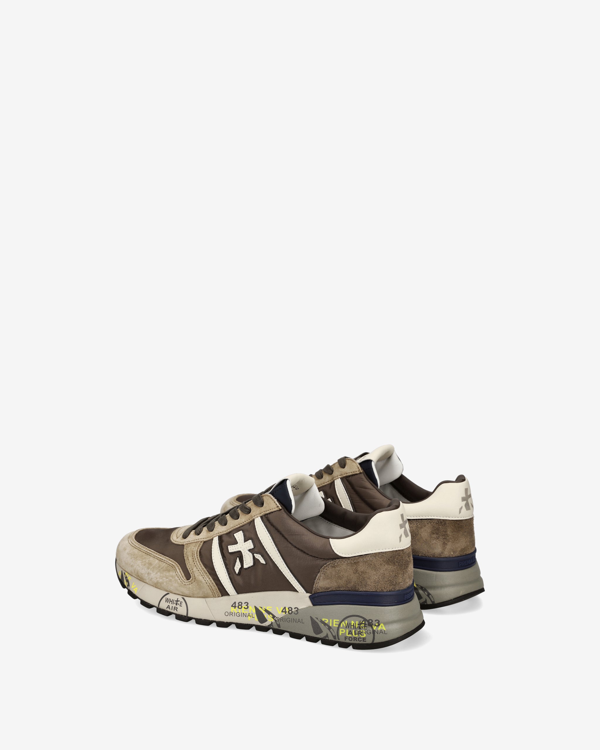 Sneakers Lander in pellame morbido scamosciato e nylon. Il look è arricchito dall’inconfondibile logo Premiata. Suola ergonomica e super leggera.