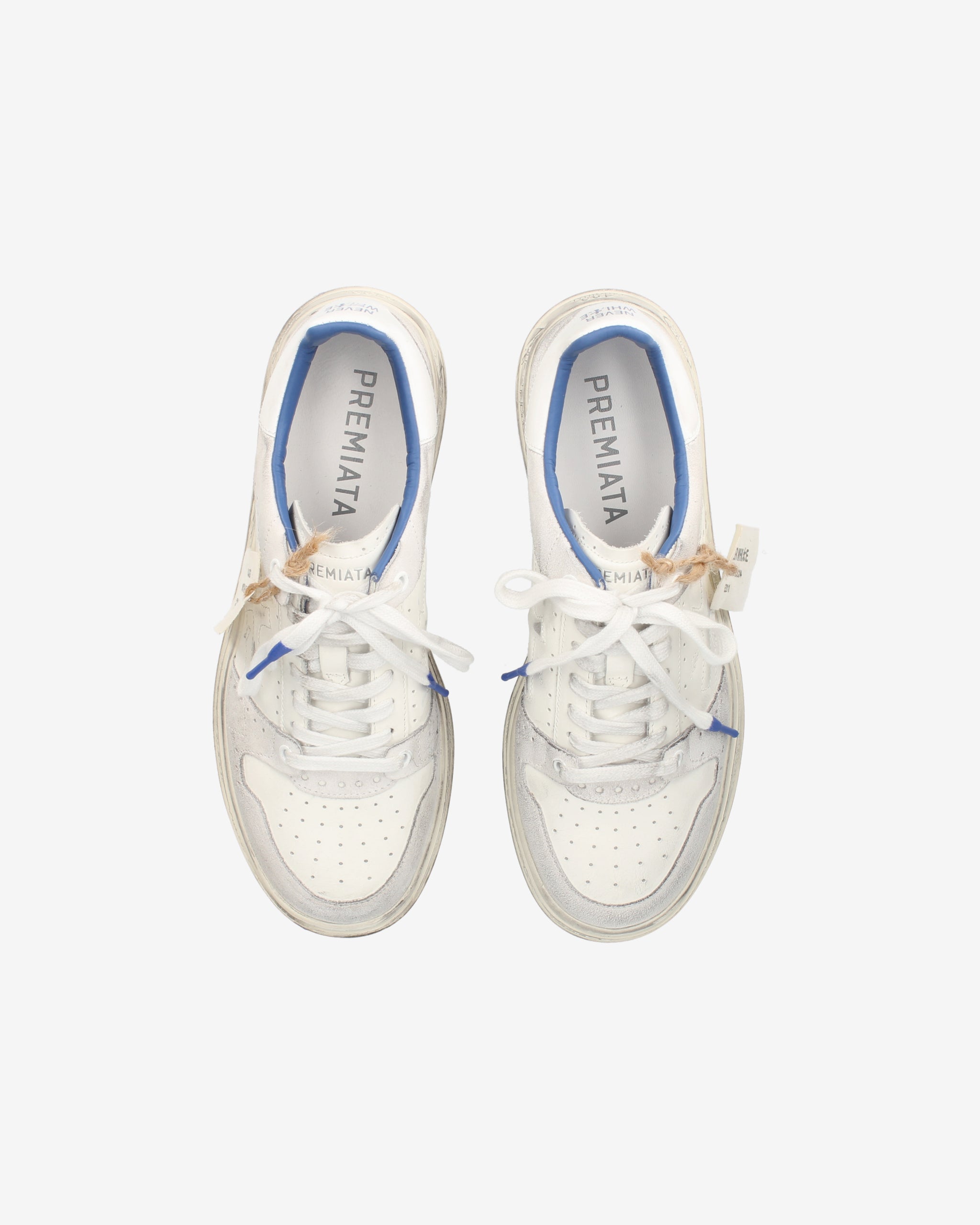 Creata per reinterpretare il mondo Sport in chiave couture, ricca di dettagli come, per esempio, i numerosi fori che ne caratterizzano il design. Fori che si ispirano alle lavorazioni “Brogue” del mondo classico in cui Premiata affonda le proprie radici.