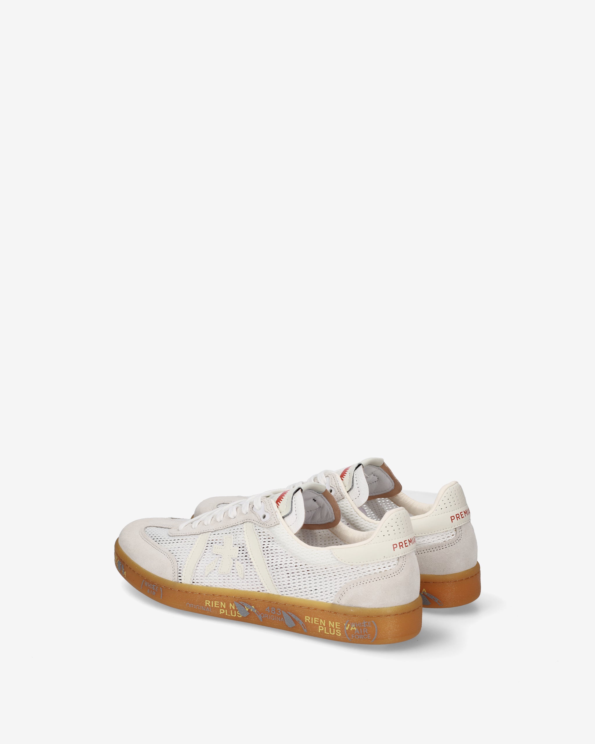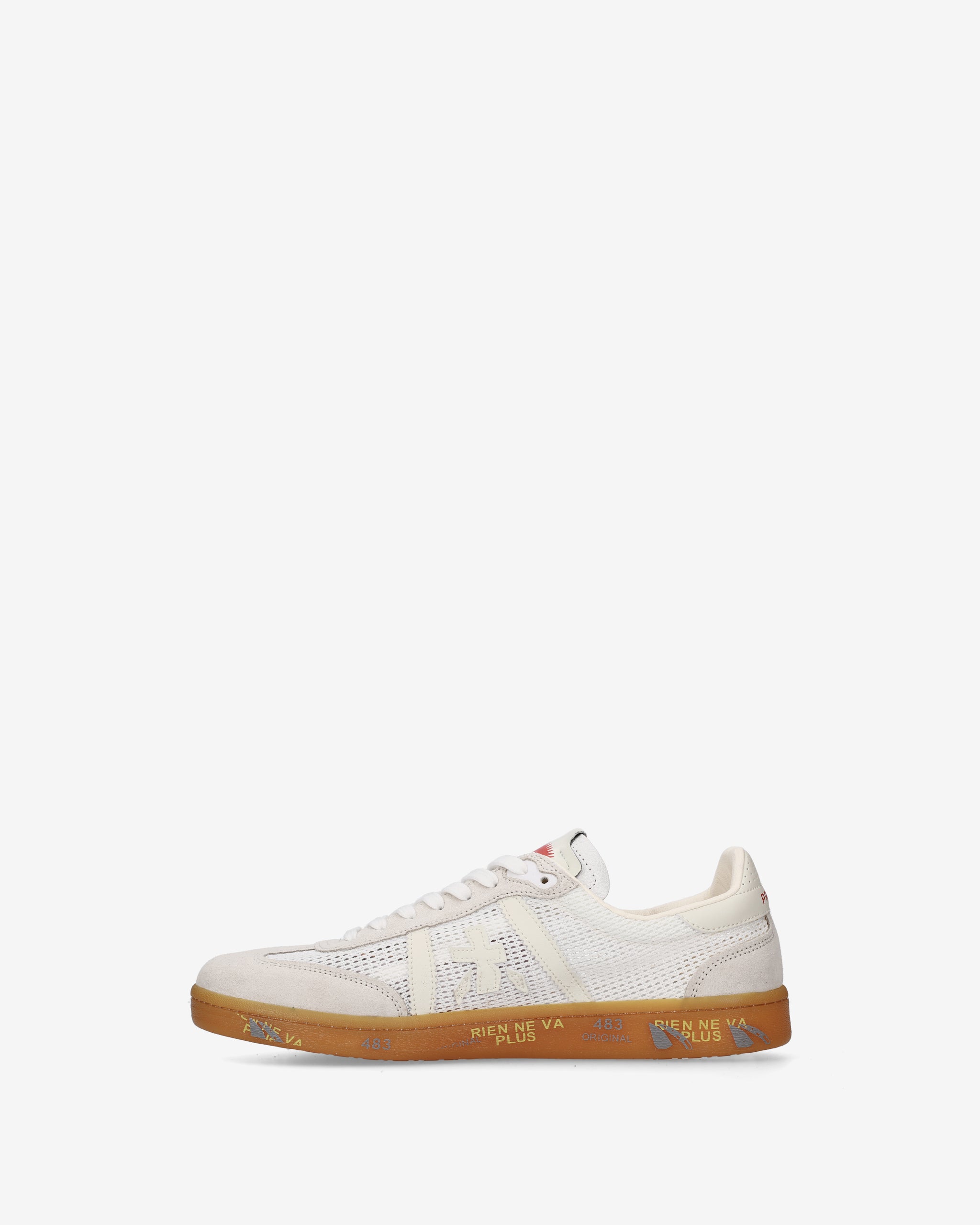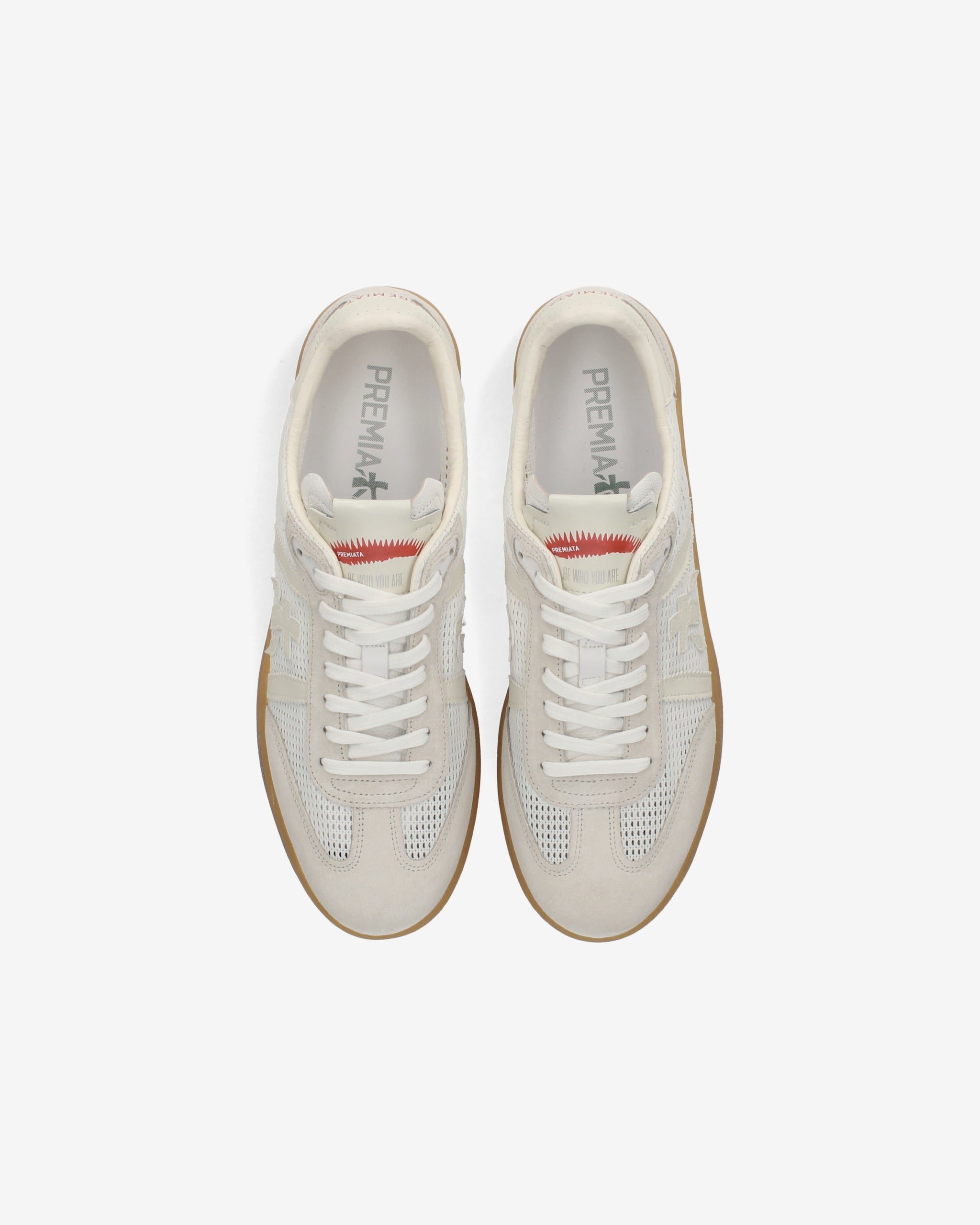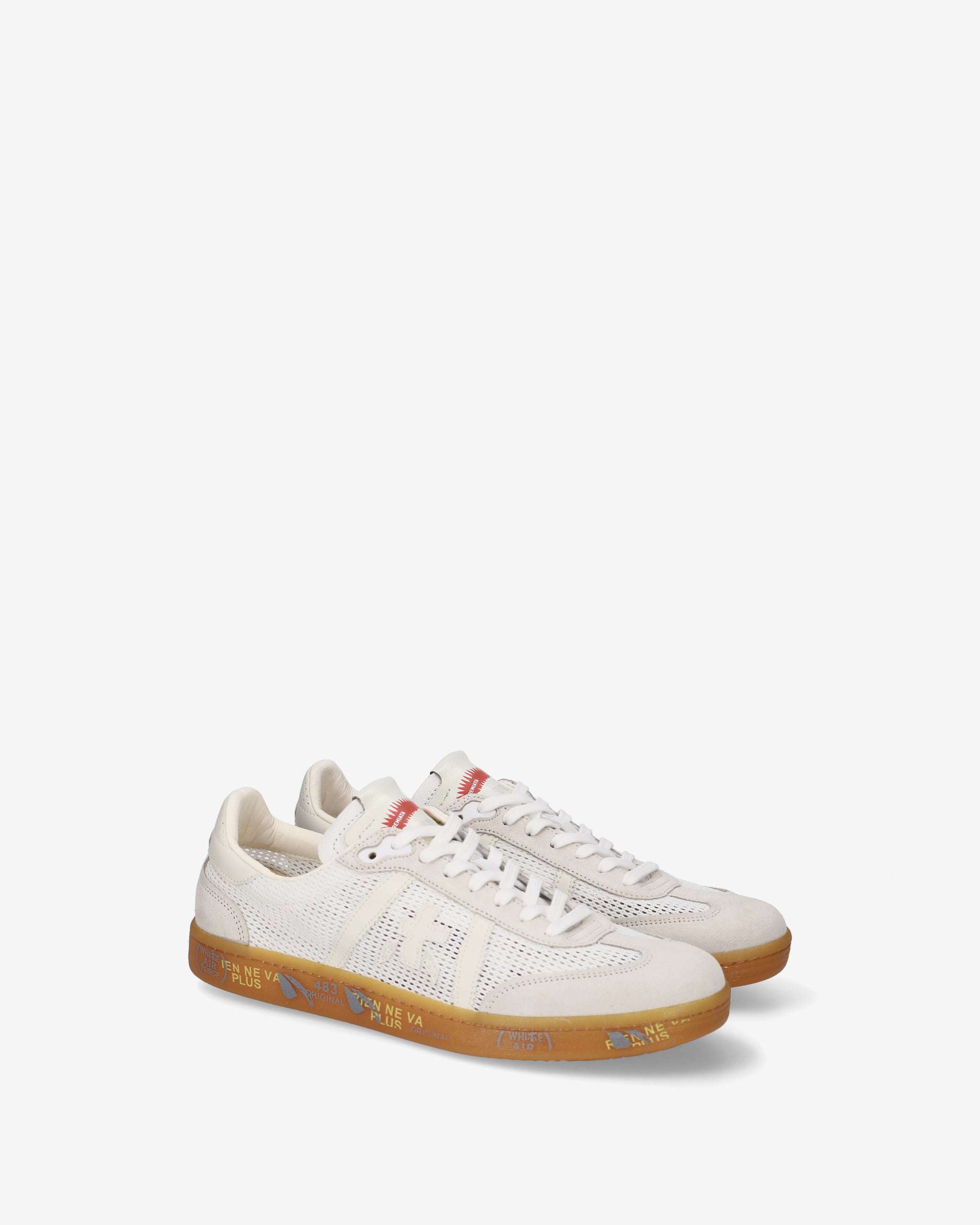 Bonnie con tomaia in traforato bianco, dettagli bianchi ton sur ton e suola gum. Un basic color per un’estetica pulita e sofisticata.