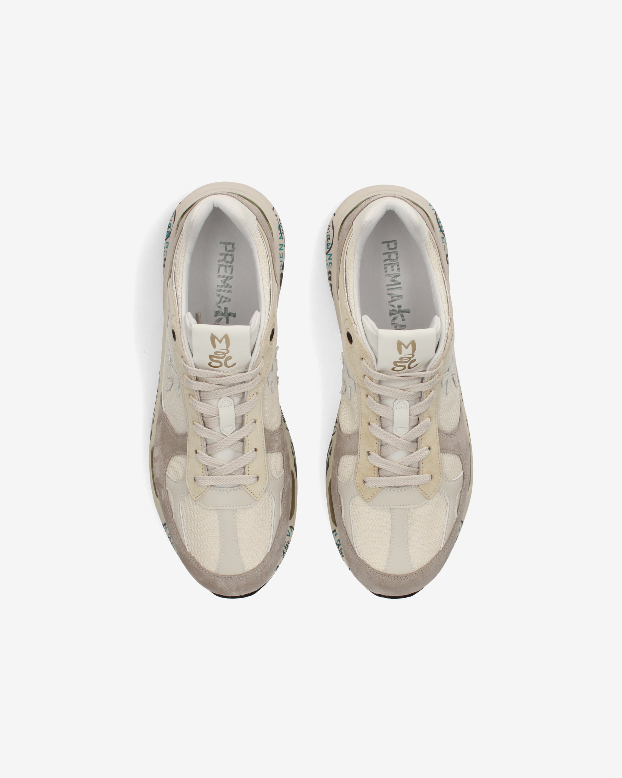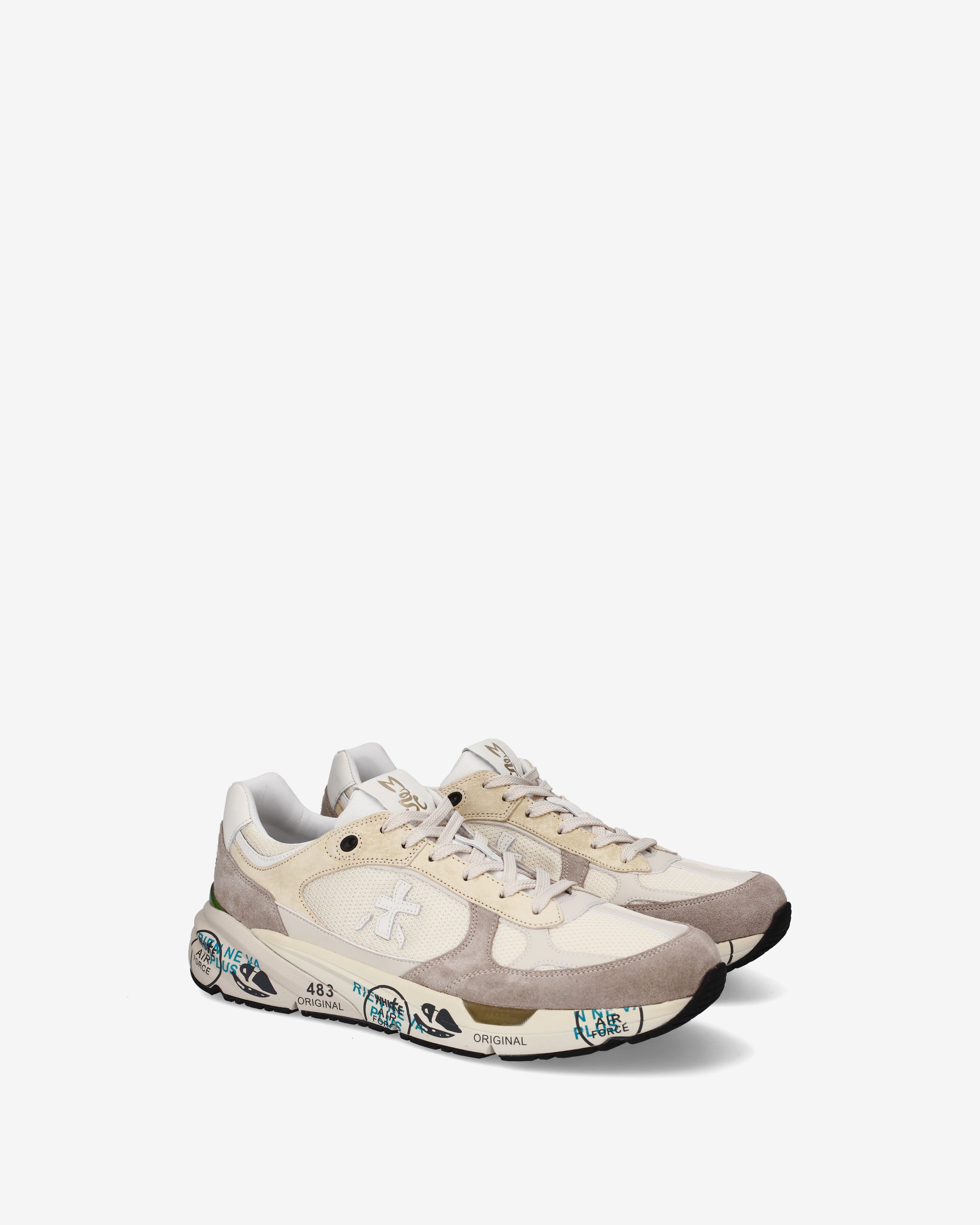 Risentono del mood nineties, combinano una silhouette moderna con materiali pregiati e dettagli vivaci. Fedeli al design Premiata, ne conservano tutti gli elementi chiave: il logo che decora i laterali, la scritta MASE che si evince sull’etichetta, trattamenti e dettagli a contrasto che ne risaltano la visibilità.