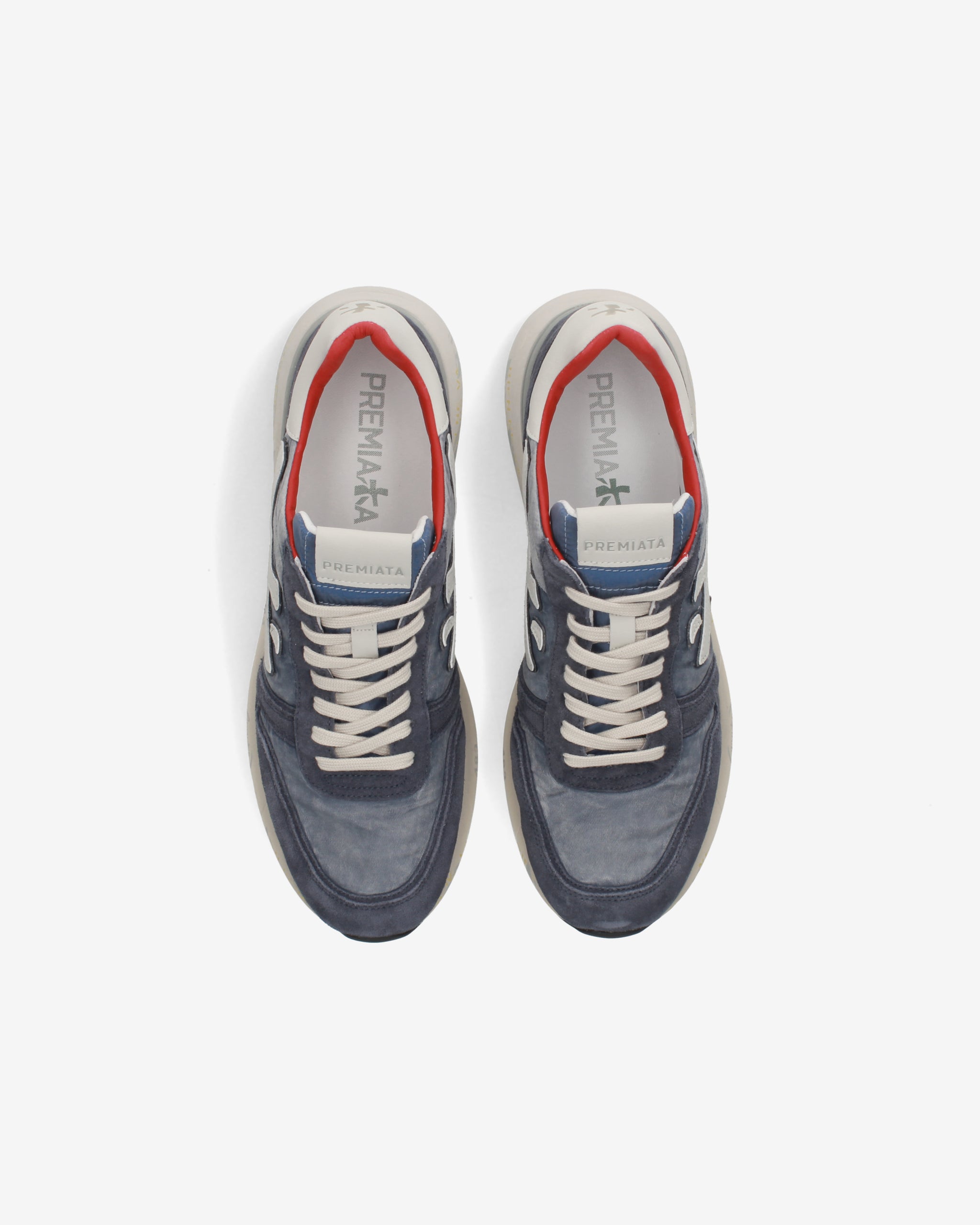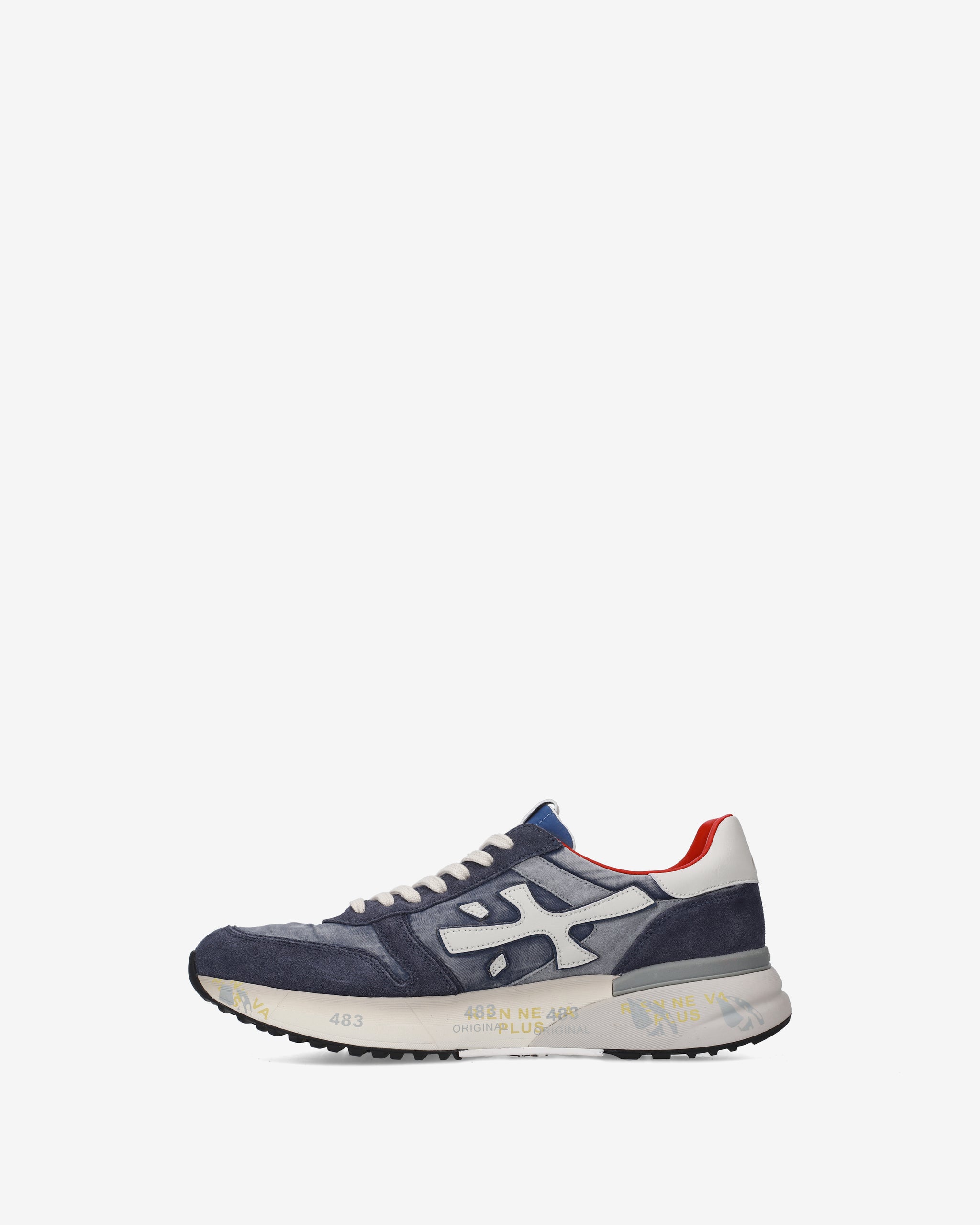Un mix di materiali e pellami di qualità. La scarpa è realizzata nella tonalità del blu per uno stile casual. L'iconica silhouette è arrichita dal logo Premiata.